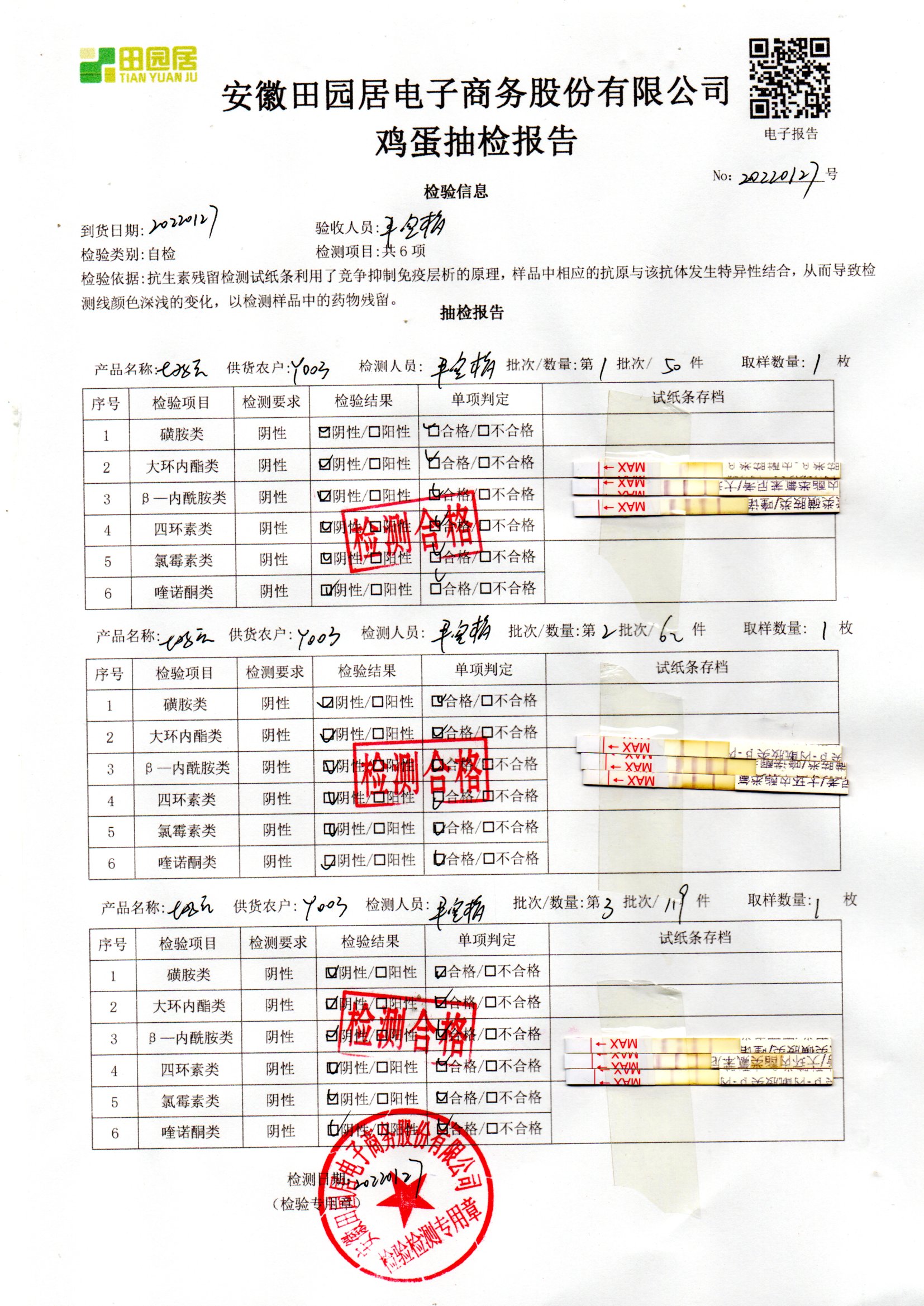 2022年01月27號鮮雞蛋檢測報告