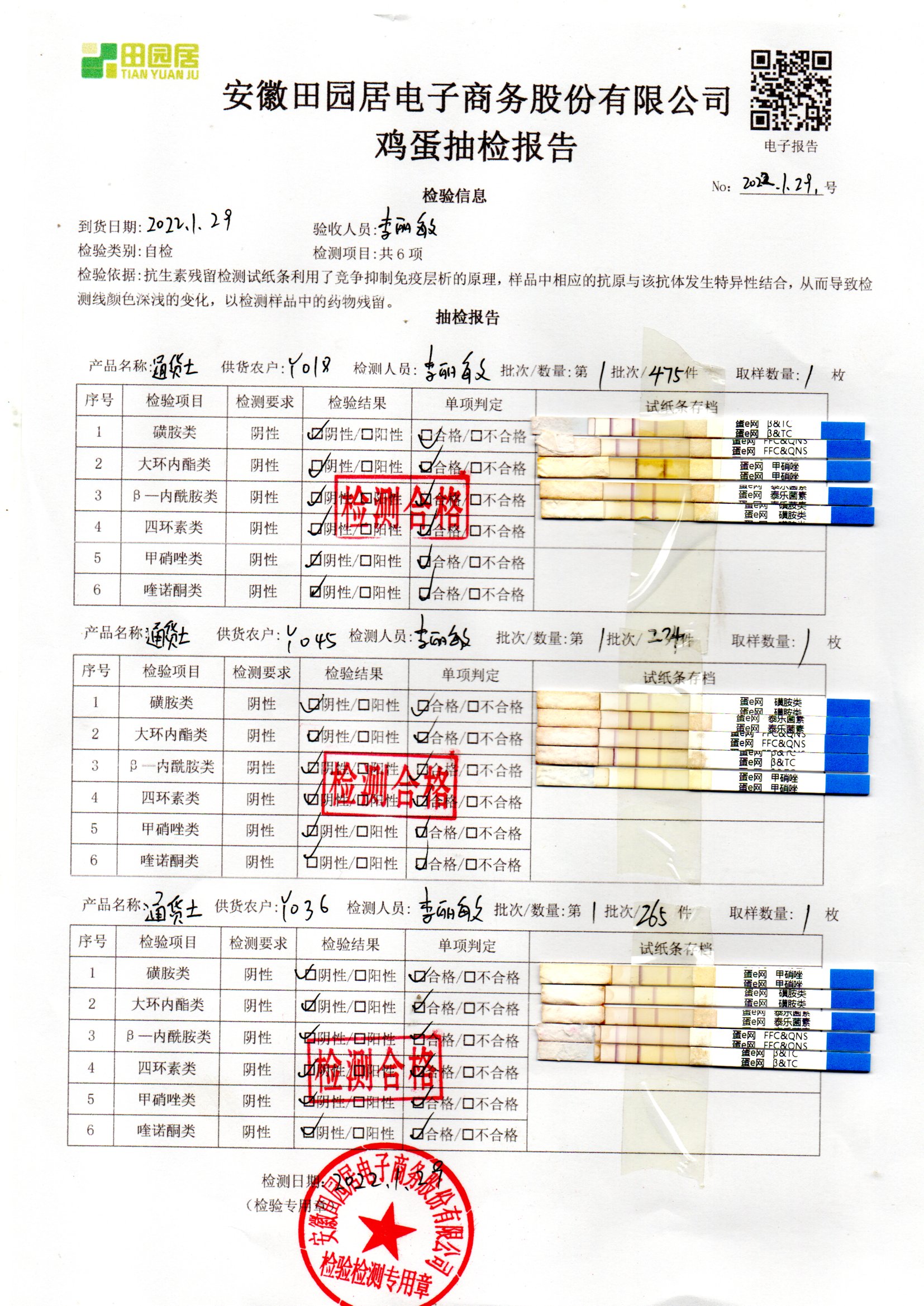 2022年01月29號鮮雞蛋檢測報告