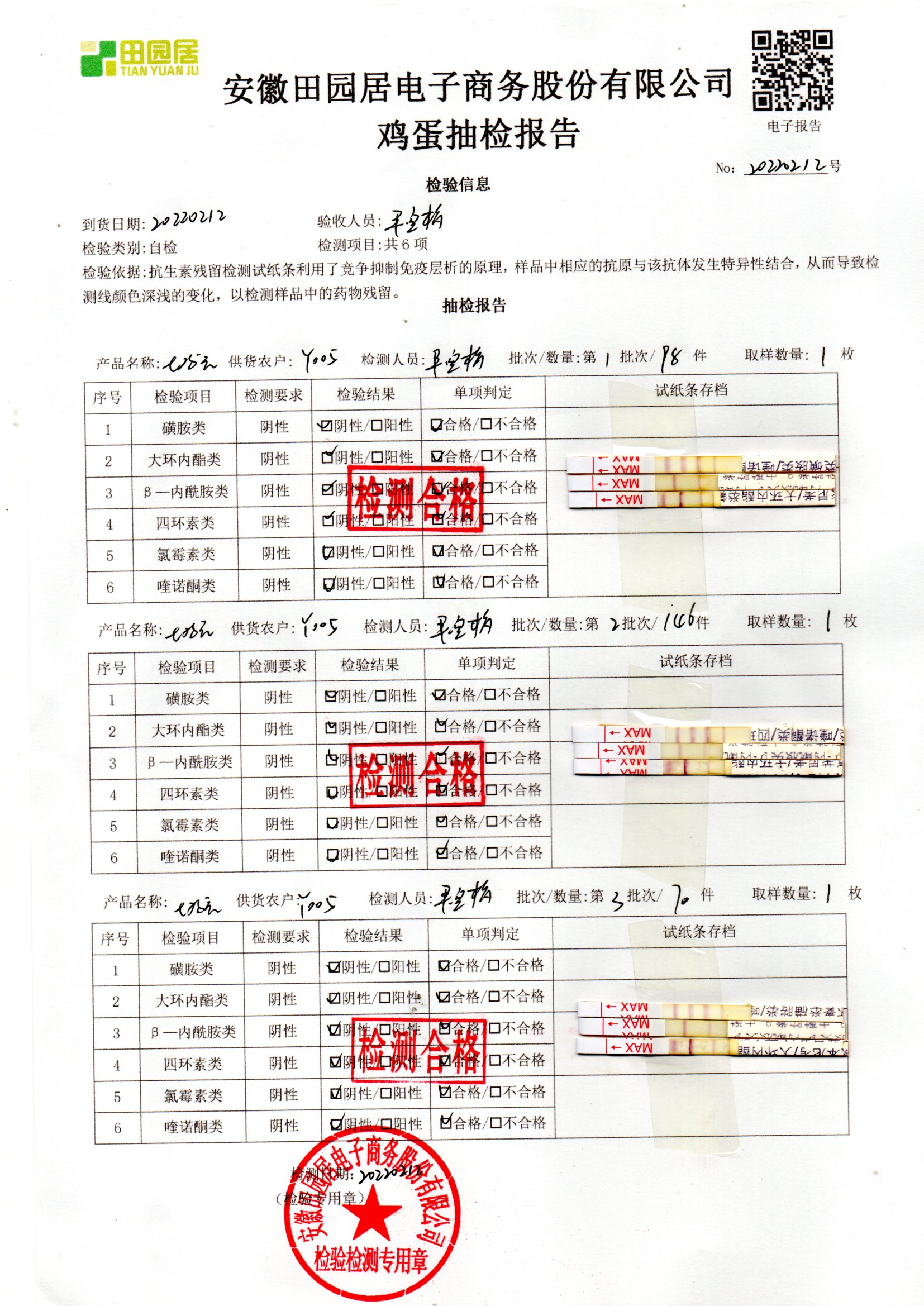 2022年02月12號鮮雞蛋檢測報告