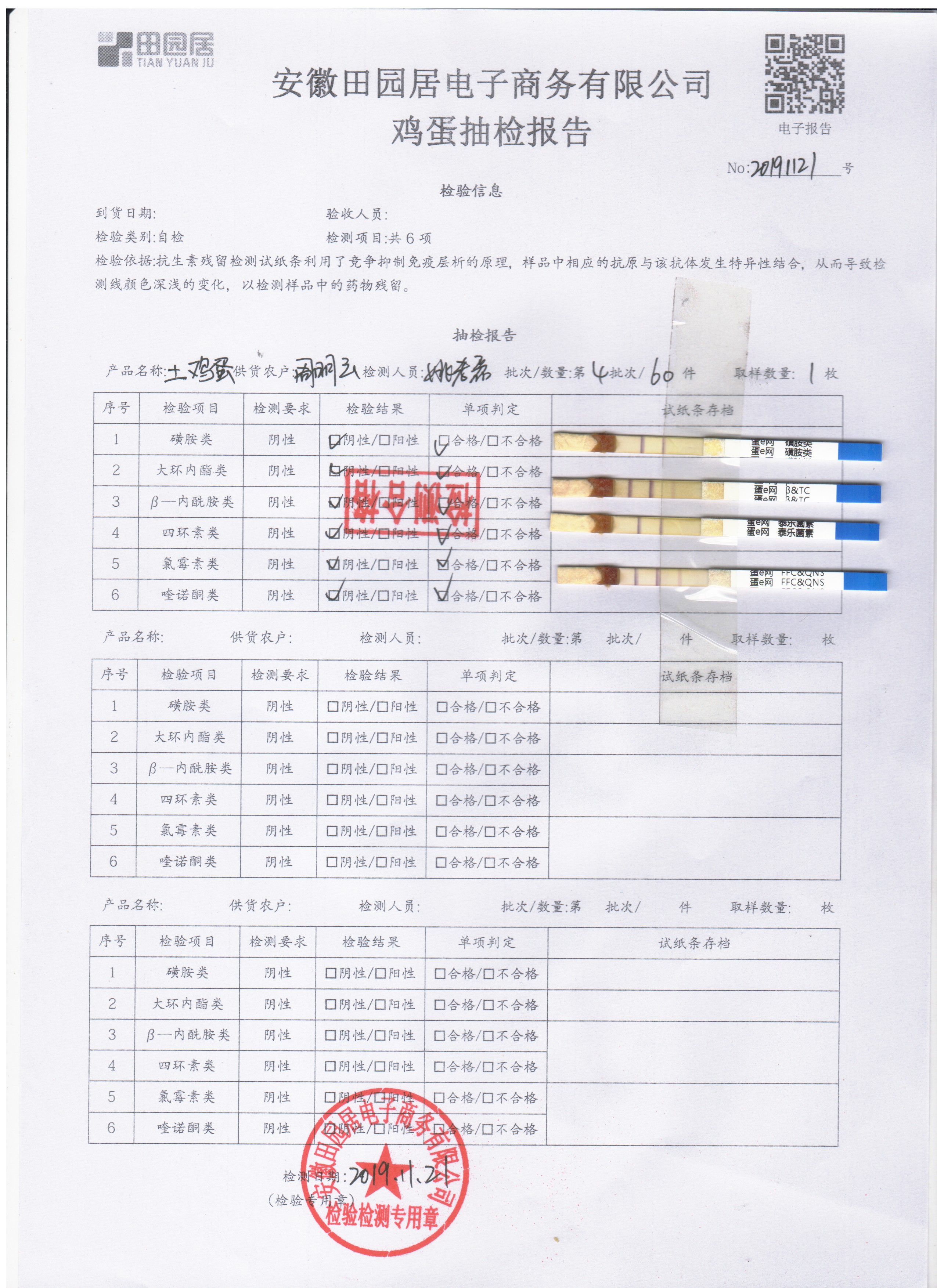 2019年11月21日鮮雞蛋檢測報告