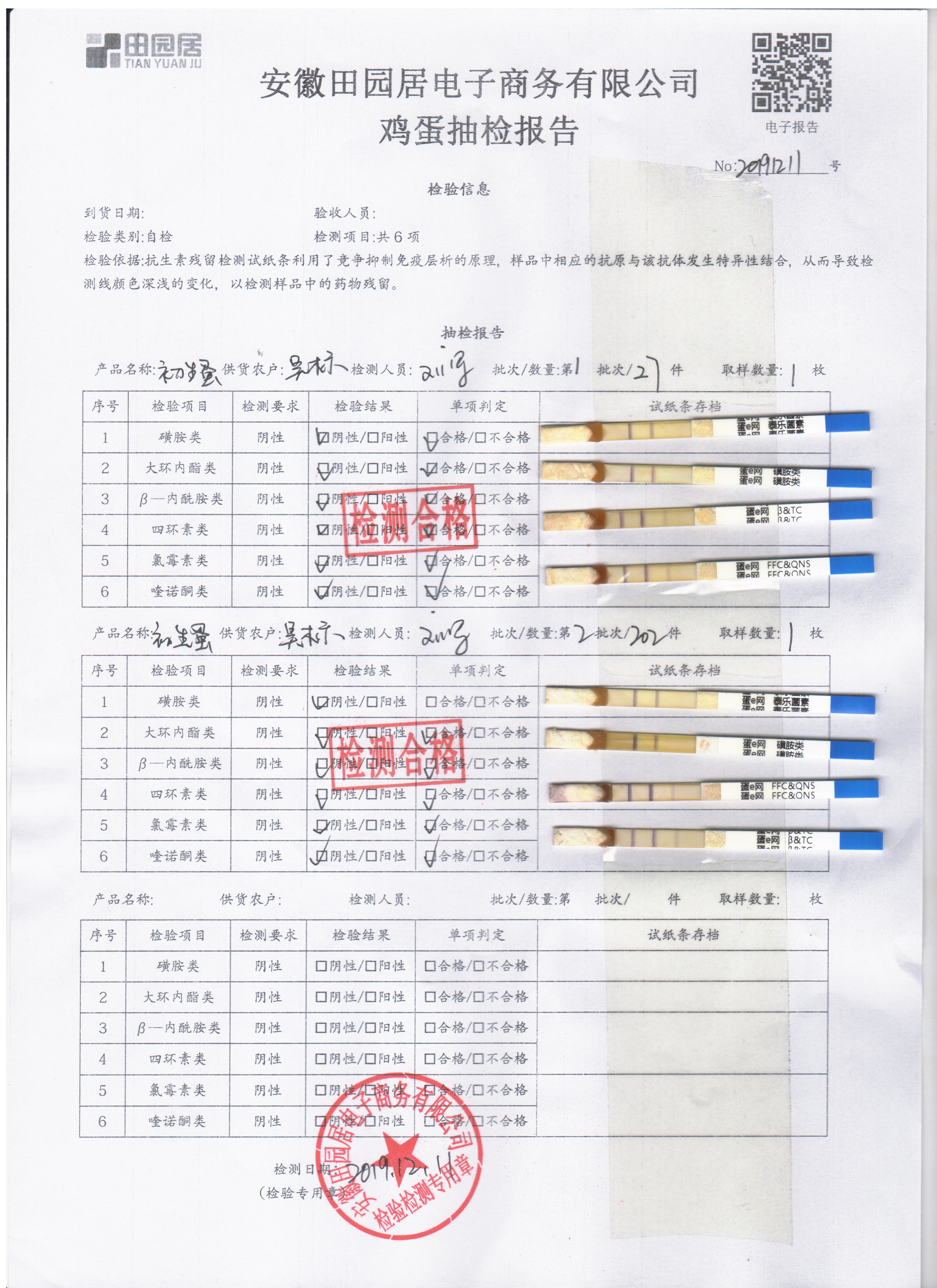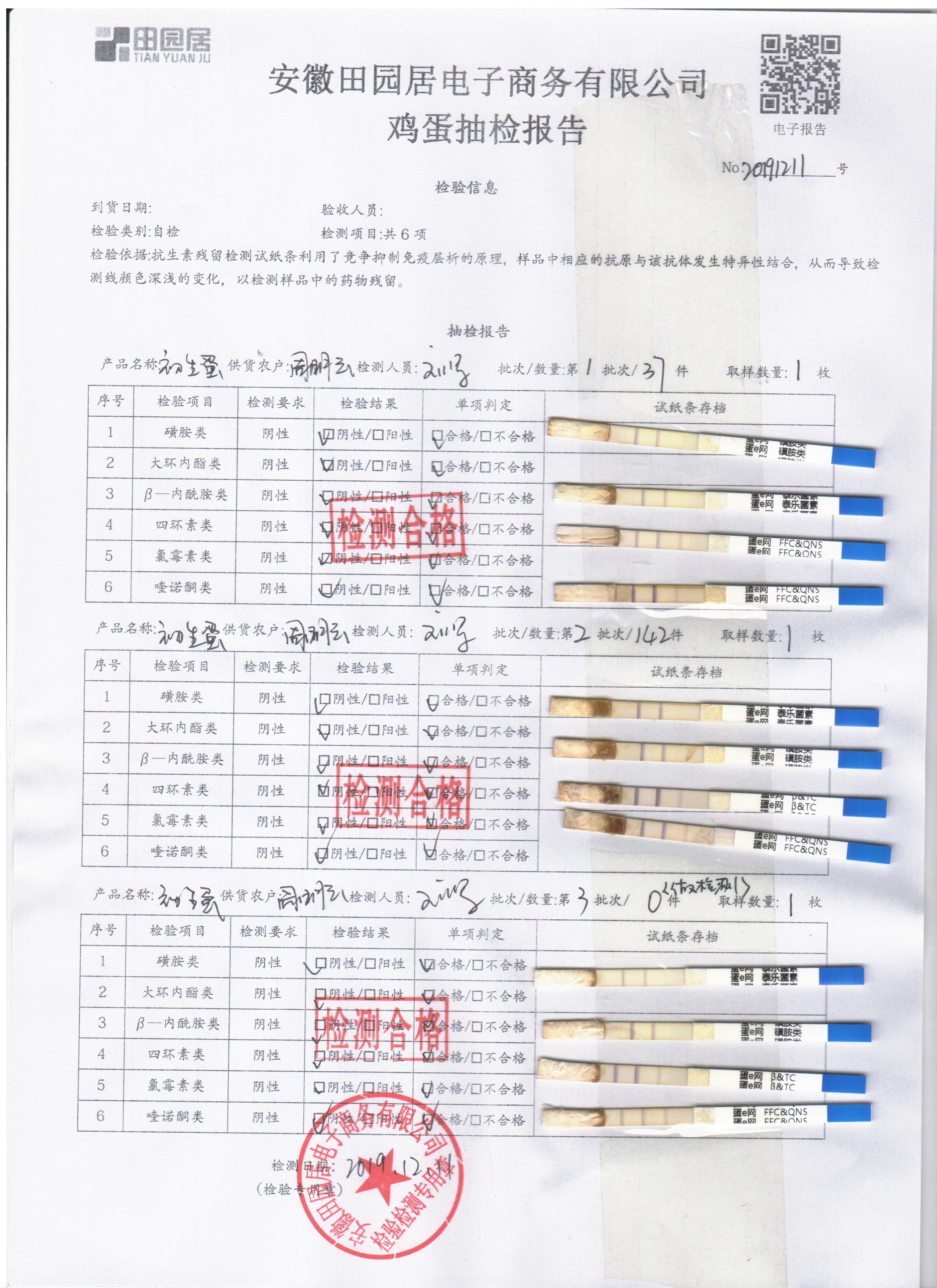 2019年12月11日鮮雞蛋檢測報告