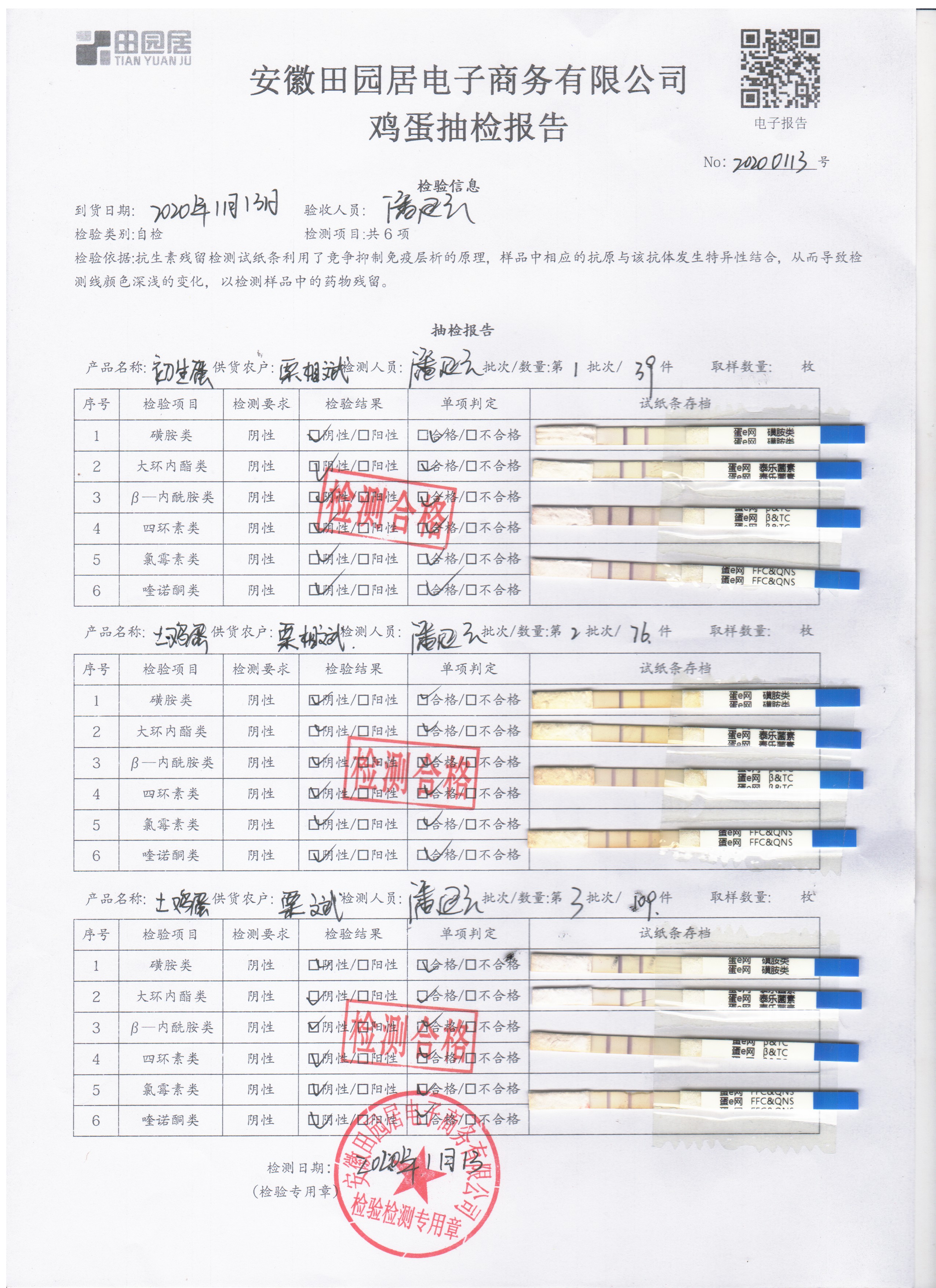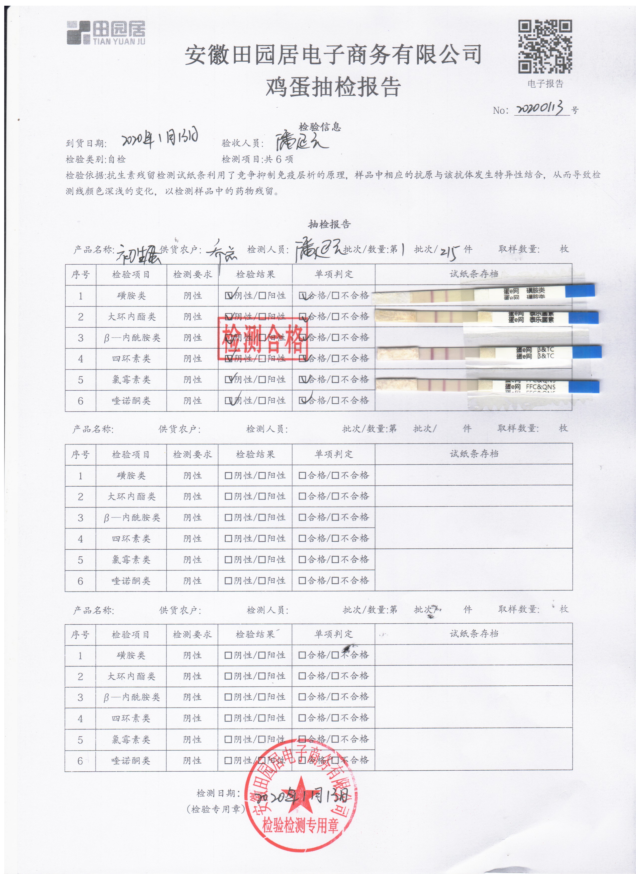 2020年01月15日鮮雞蛋檢測報告
