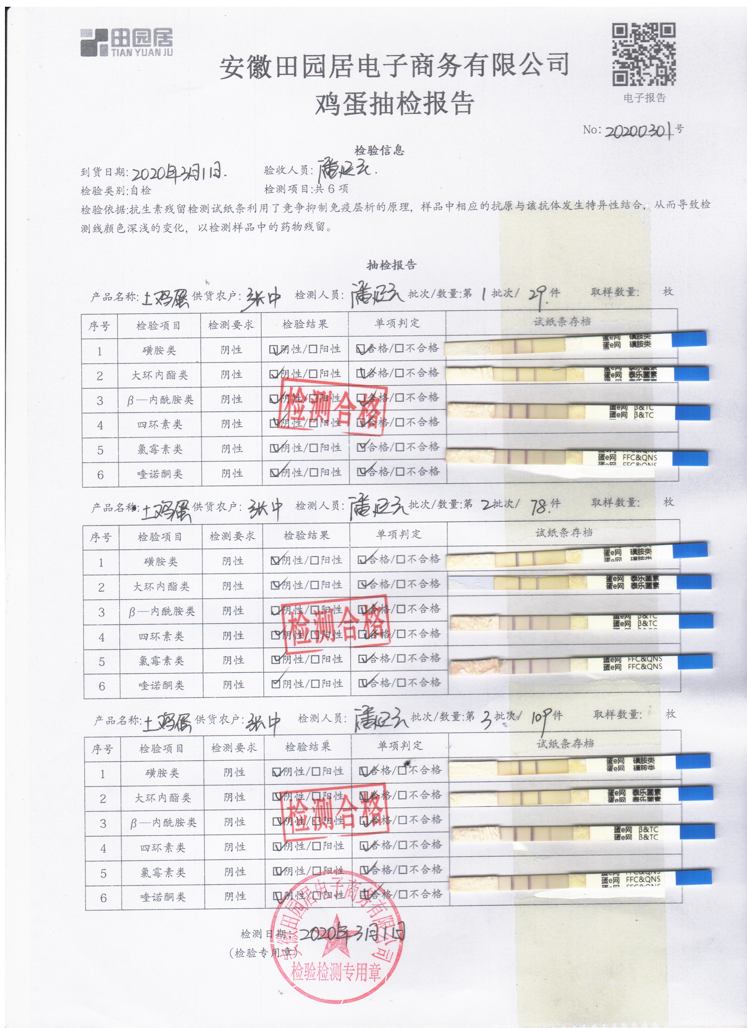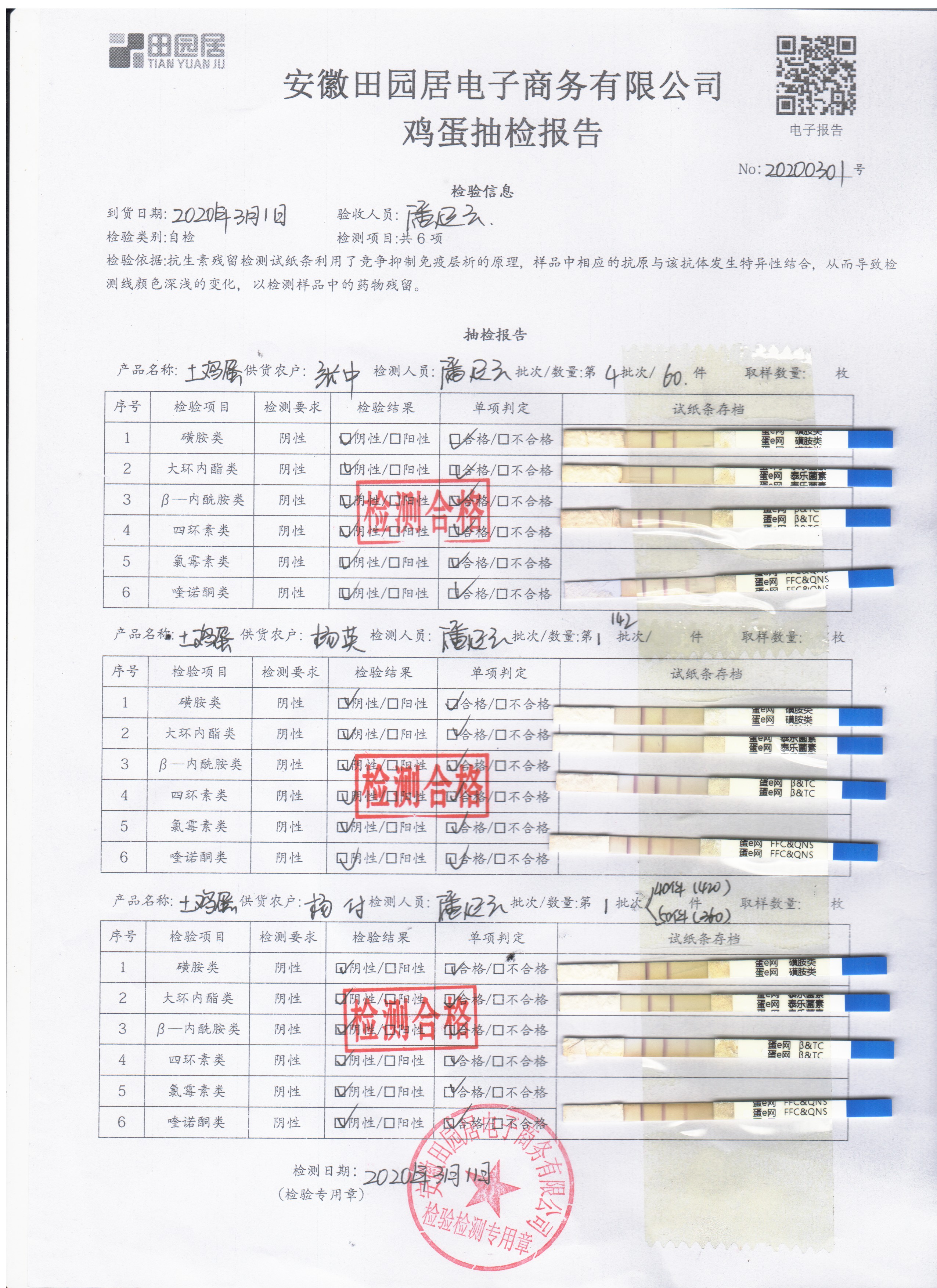 2020年3月1日鮮雞蛋檢測報告