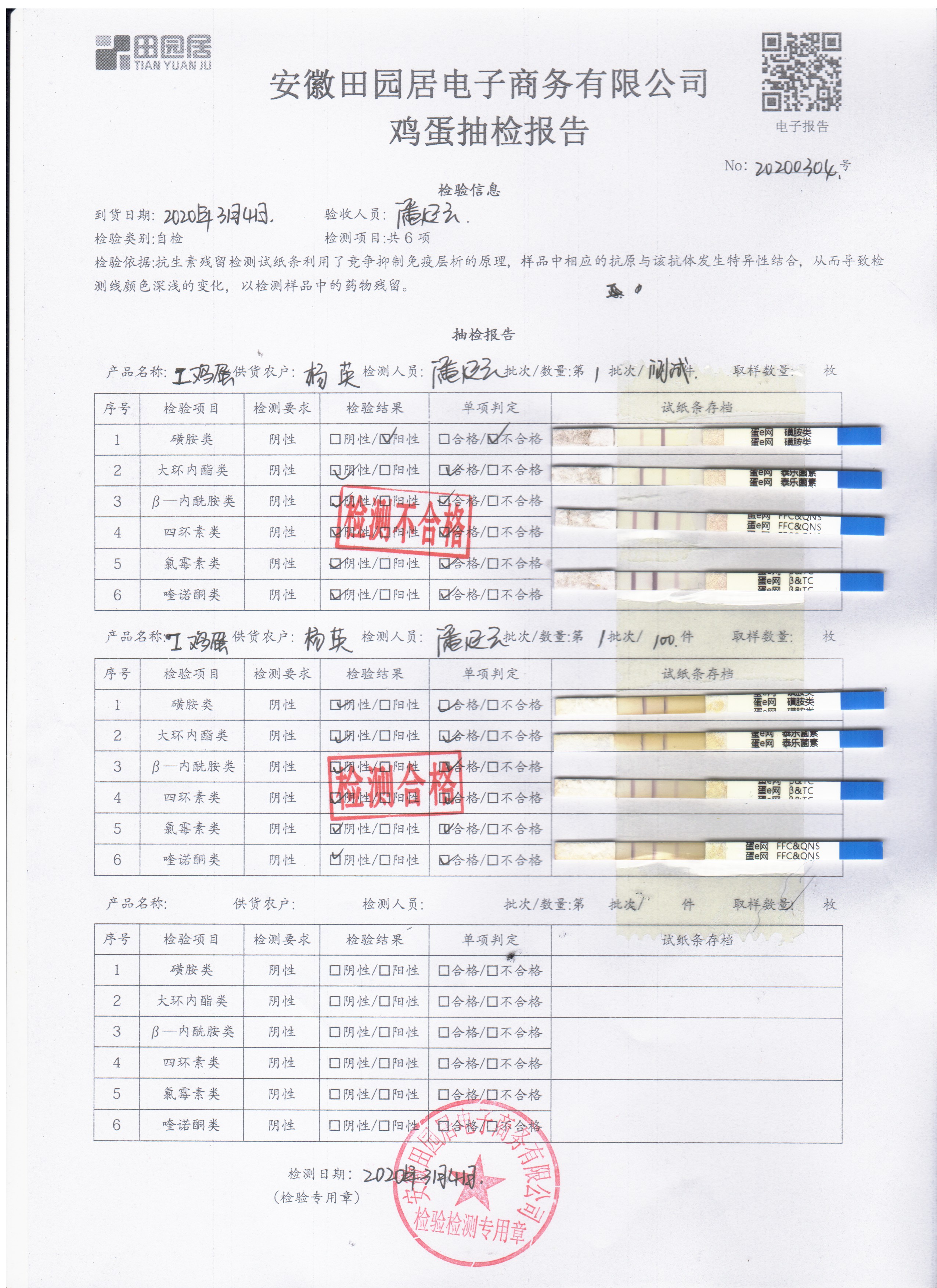2020年3月4日鮮雞蛋檢測報告