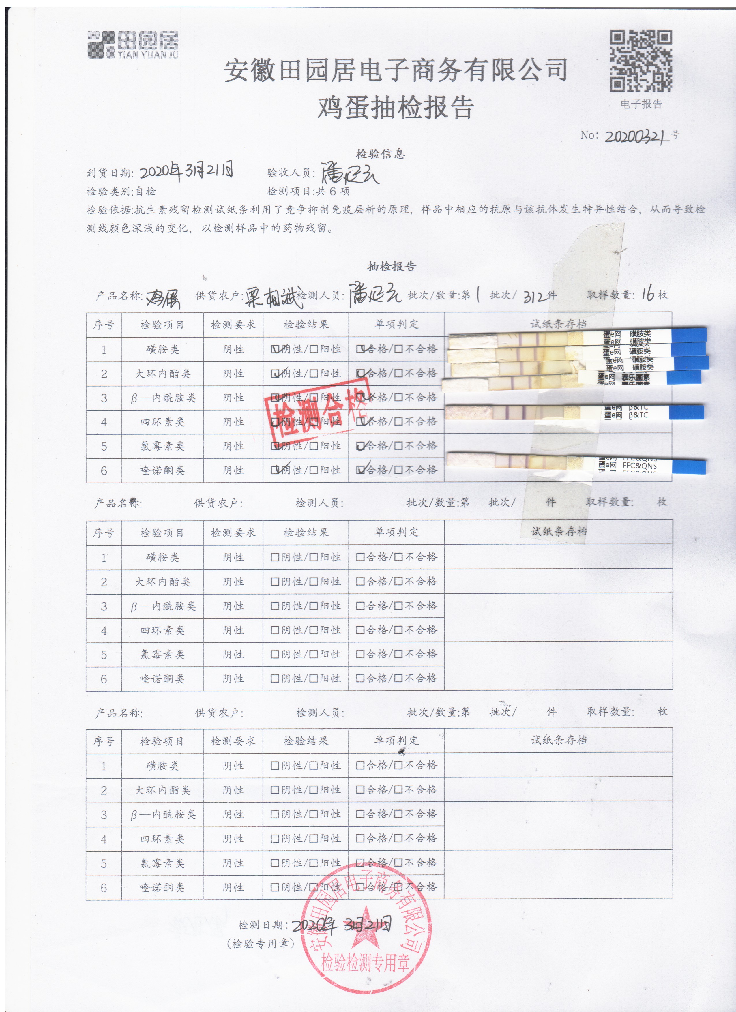 2020年3月21日鮮雞蛋檢測報告