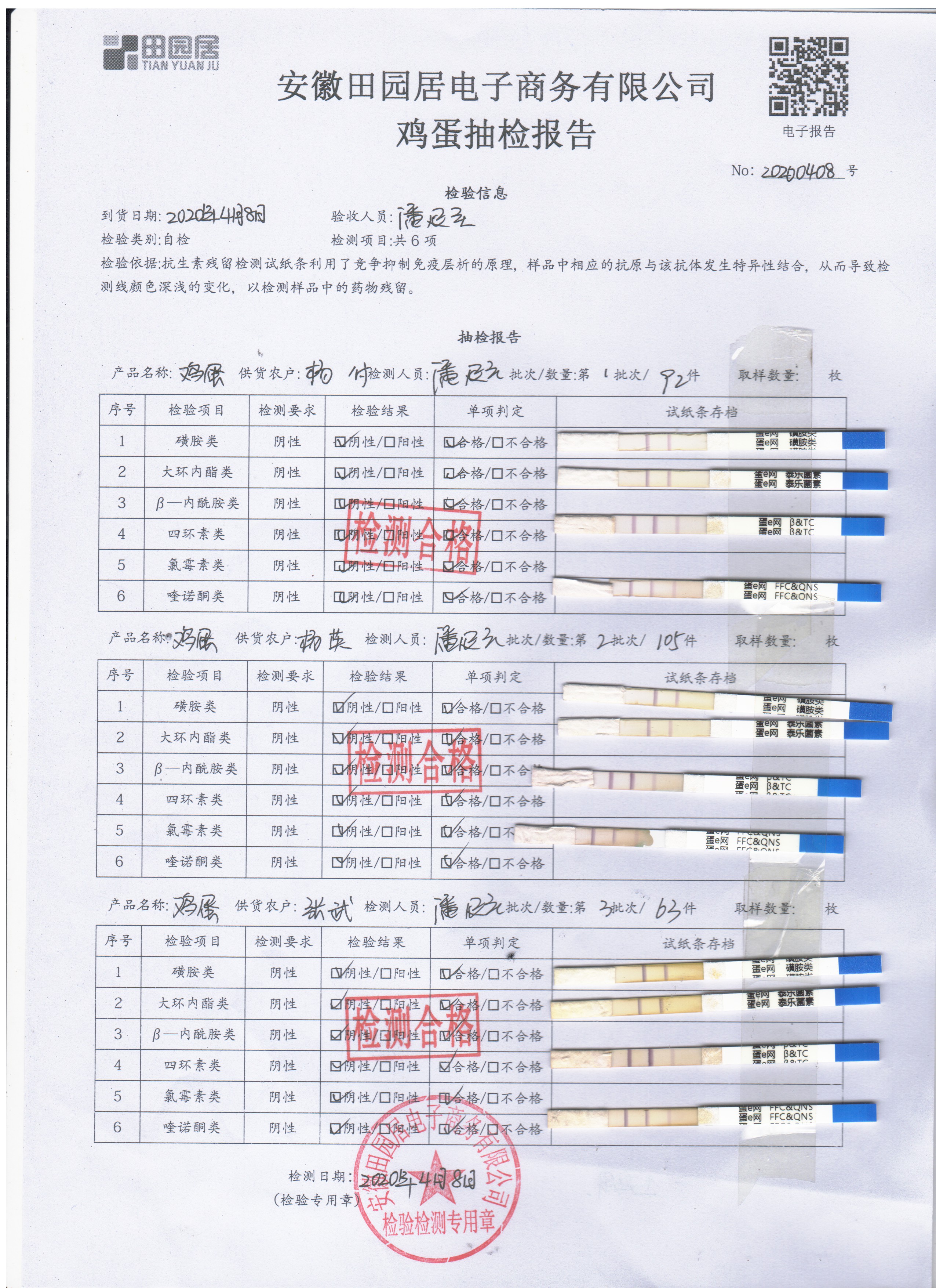 2020年4月8日鮮雞蛋檢測報告