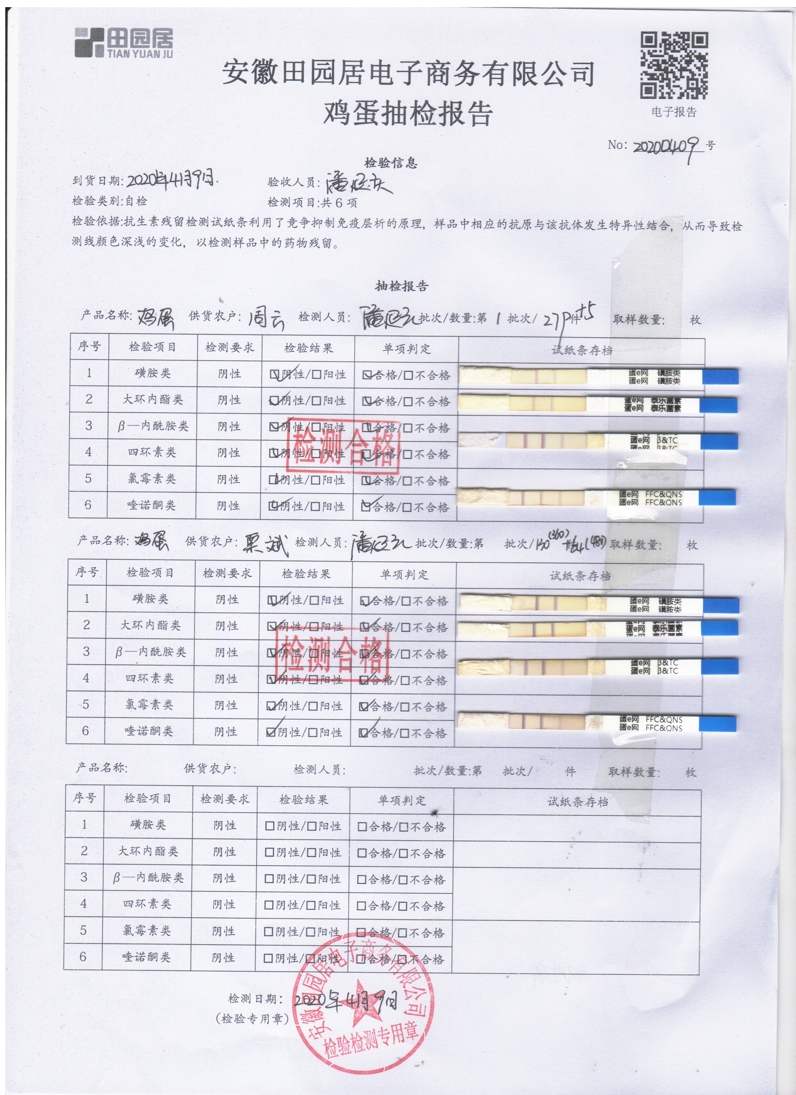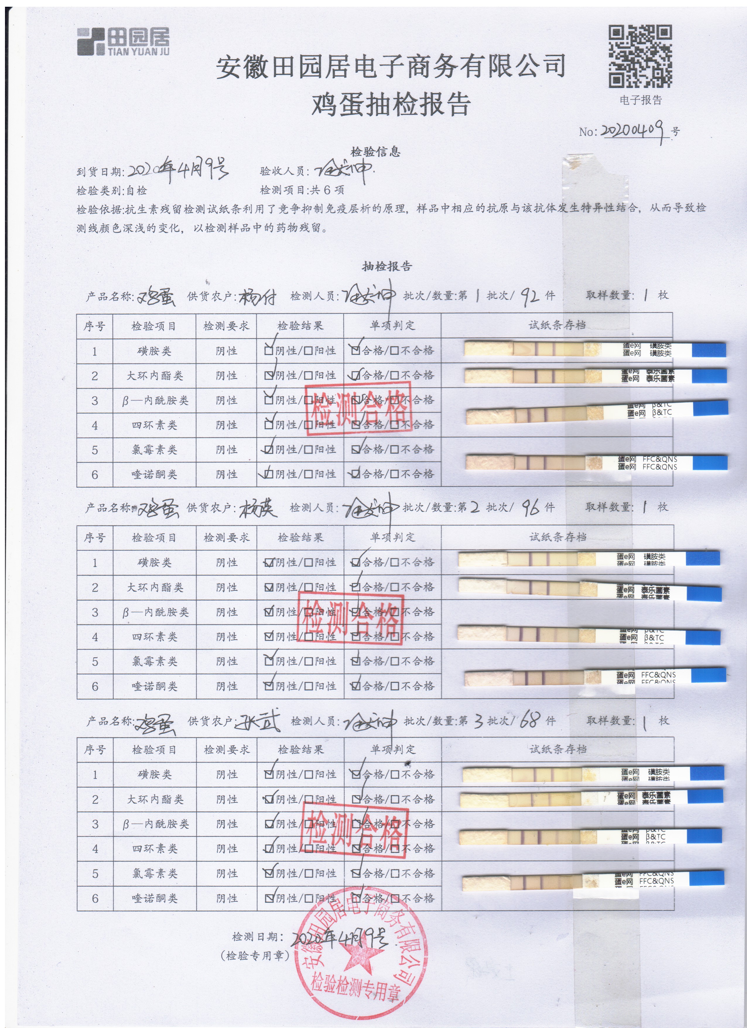 2020年4月9日鮮雞蛋檢測報告