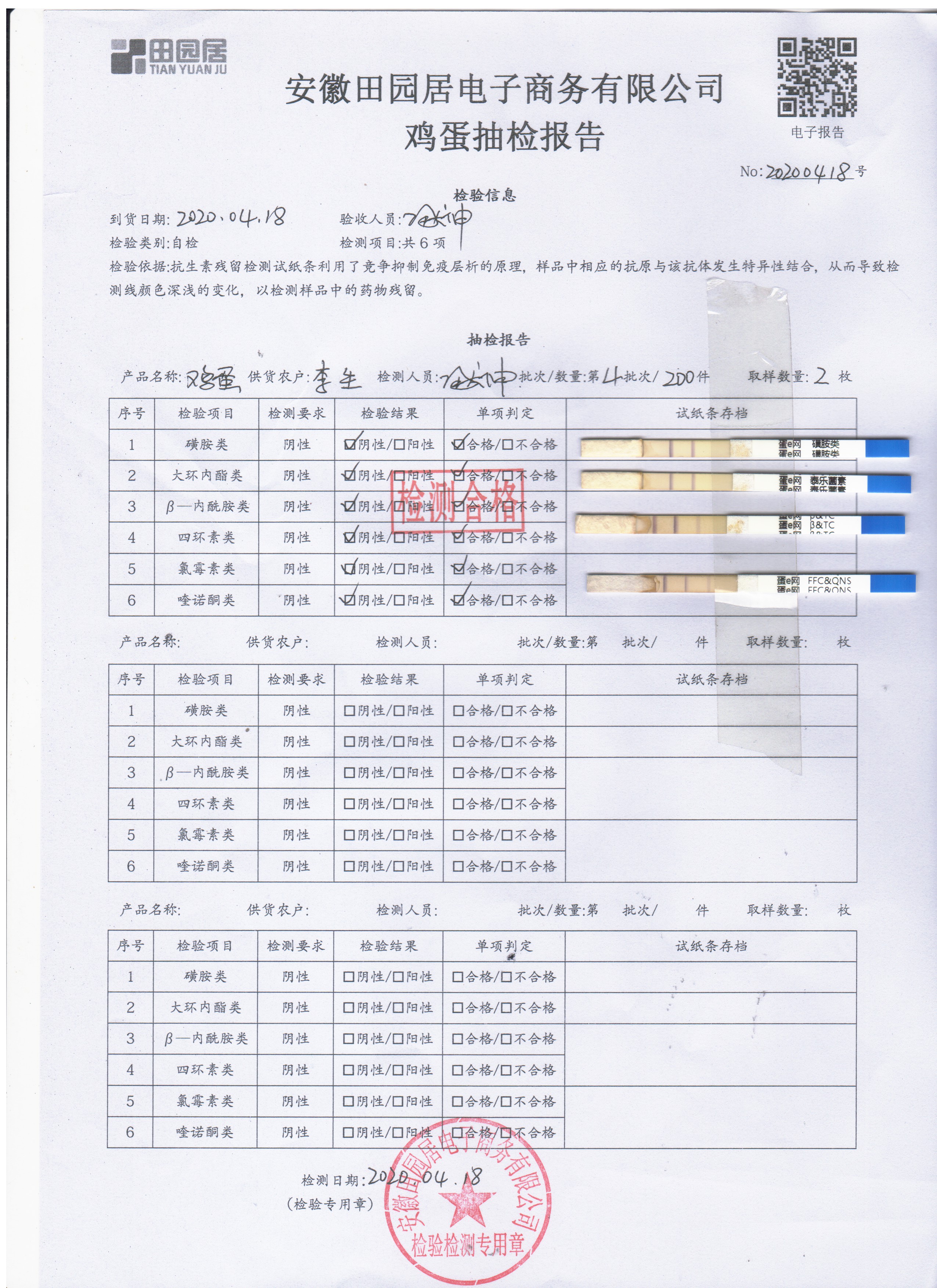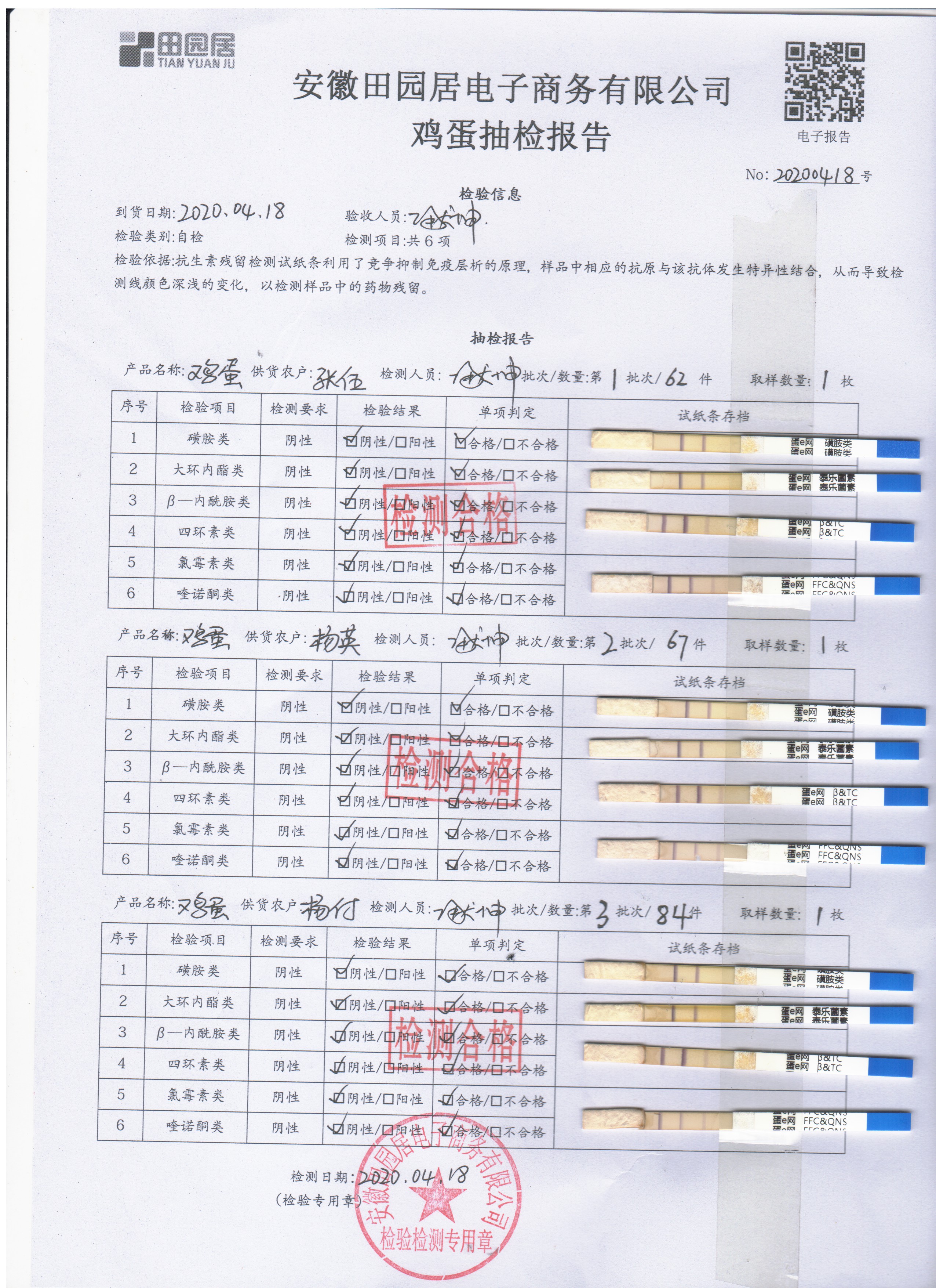 2020年4月18日鮮雞蛋檢測報告