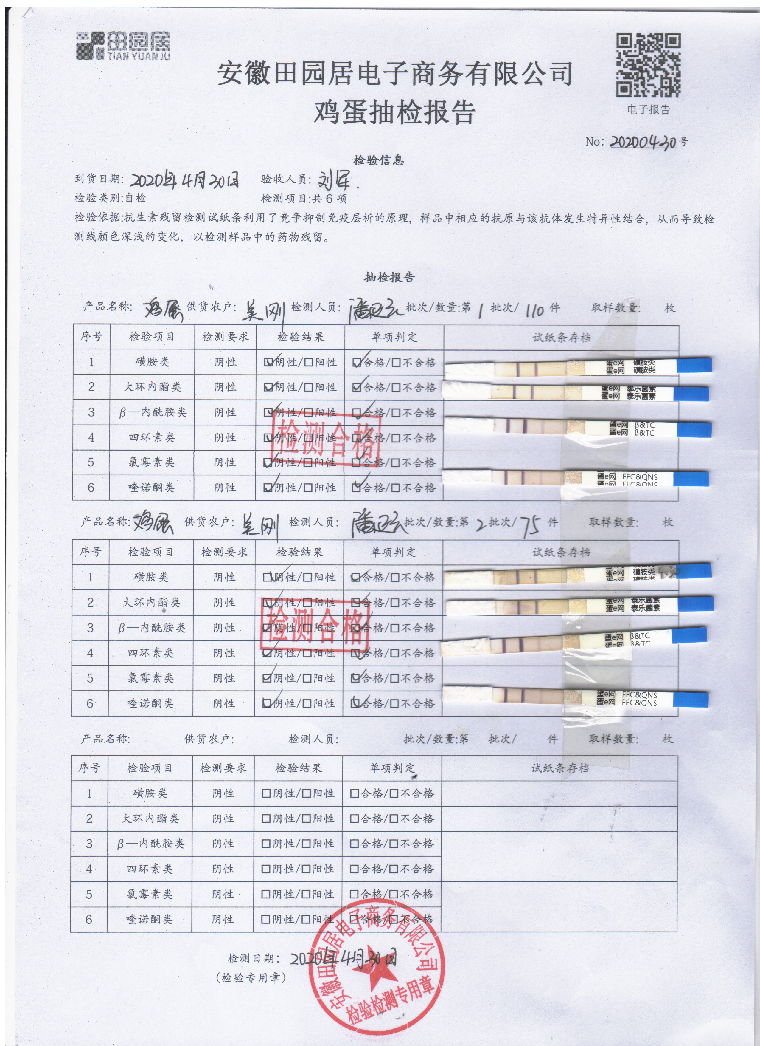 2020年4月30日鮮雞蛋檢測報告