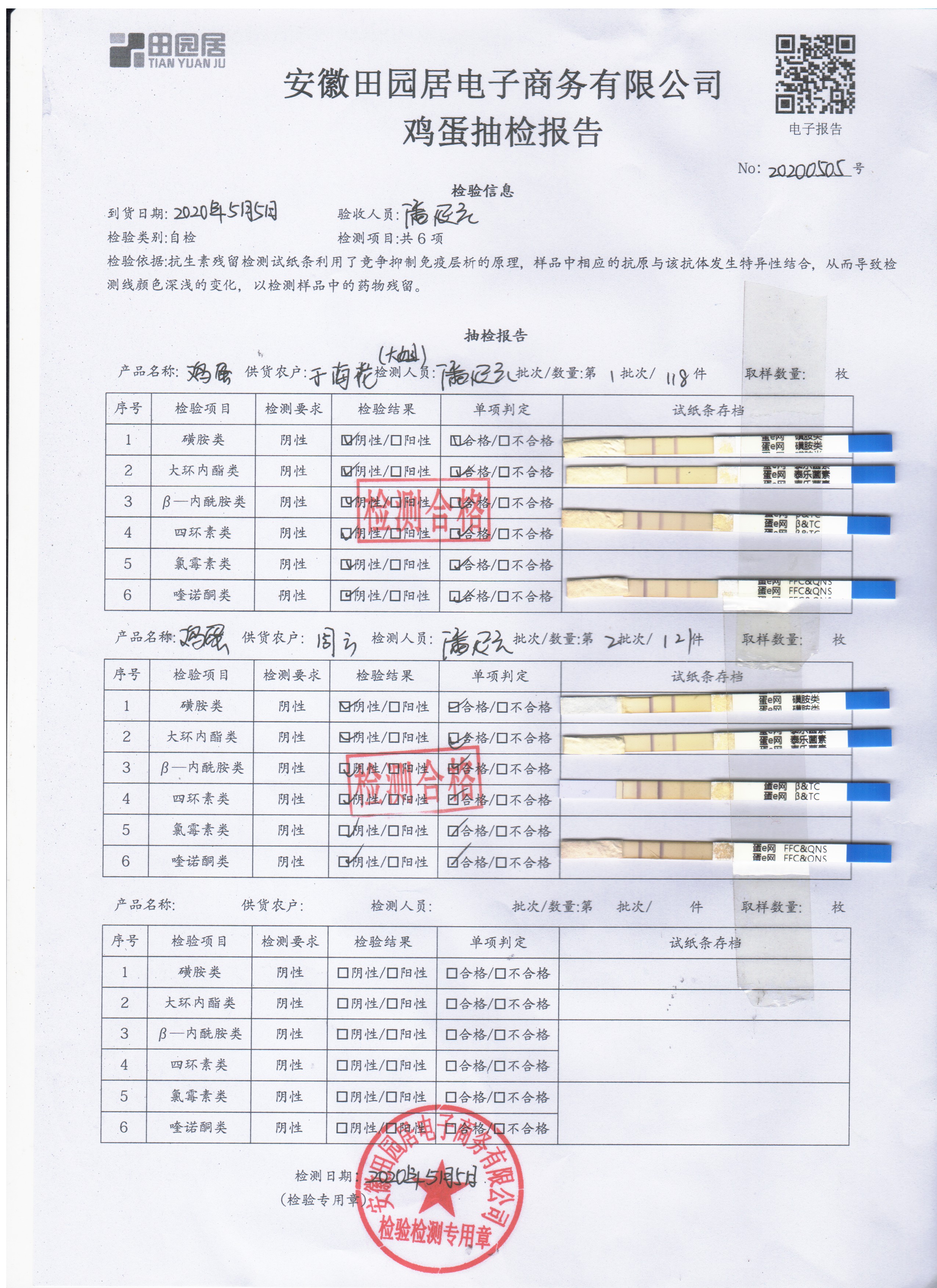 2020年5月3日鮮雞蛋檢測報告