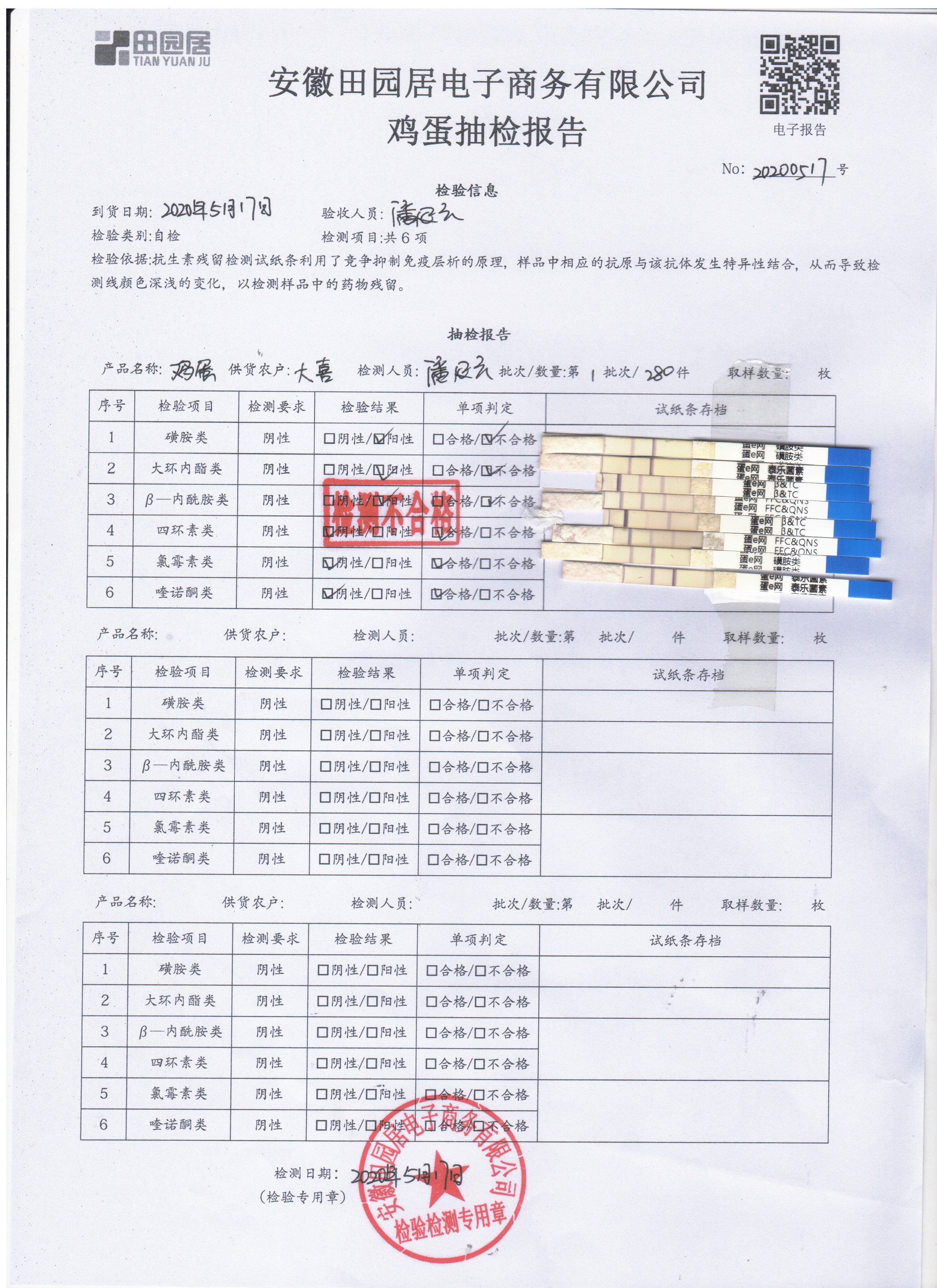 2020年5月17日鮮雞蛋檢測報告