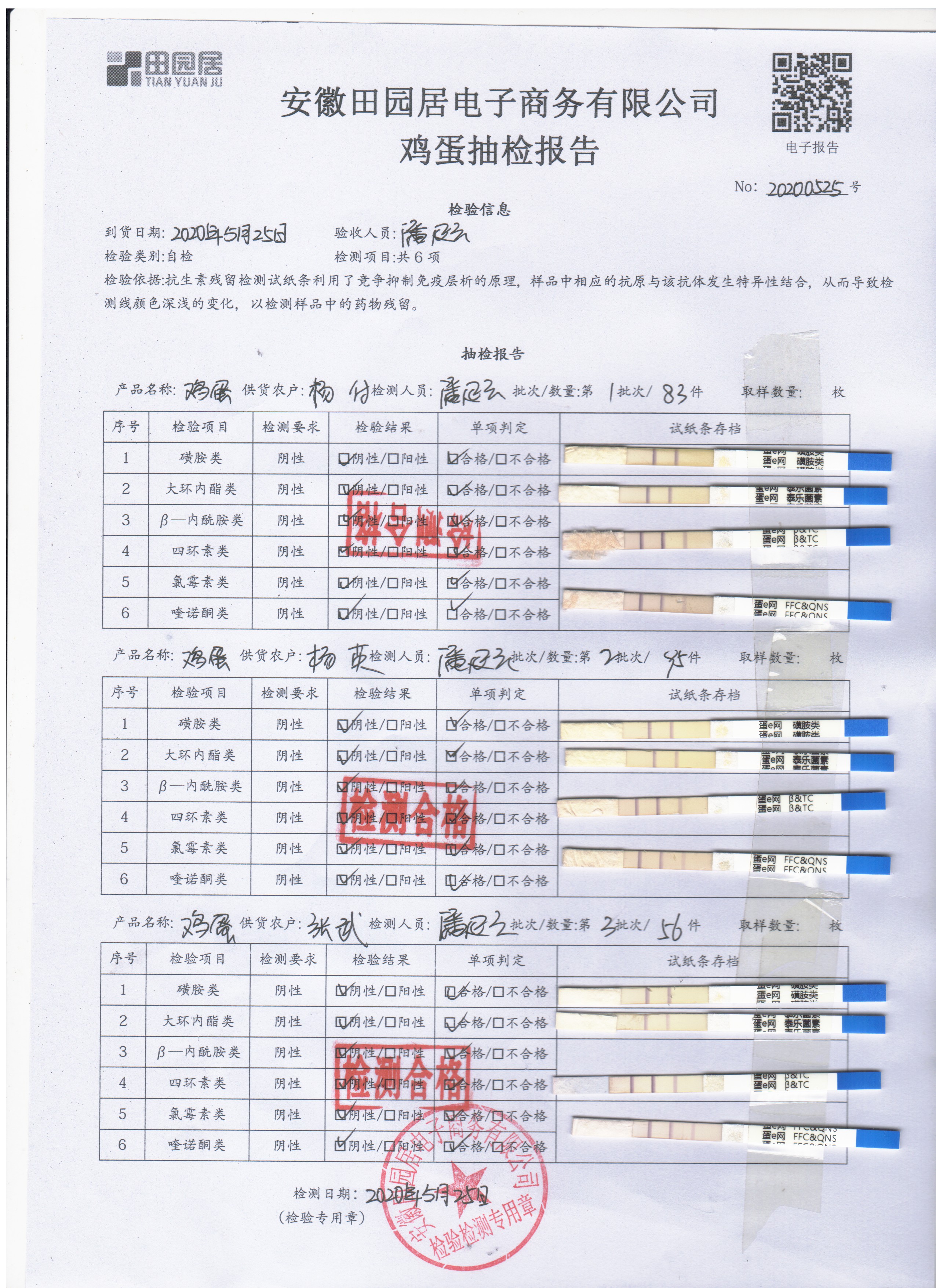 2020年5月25日鮮雞蛋檢測報告
