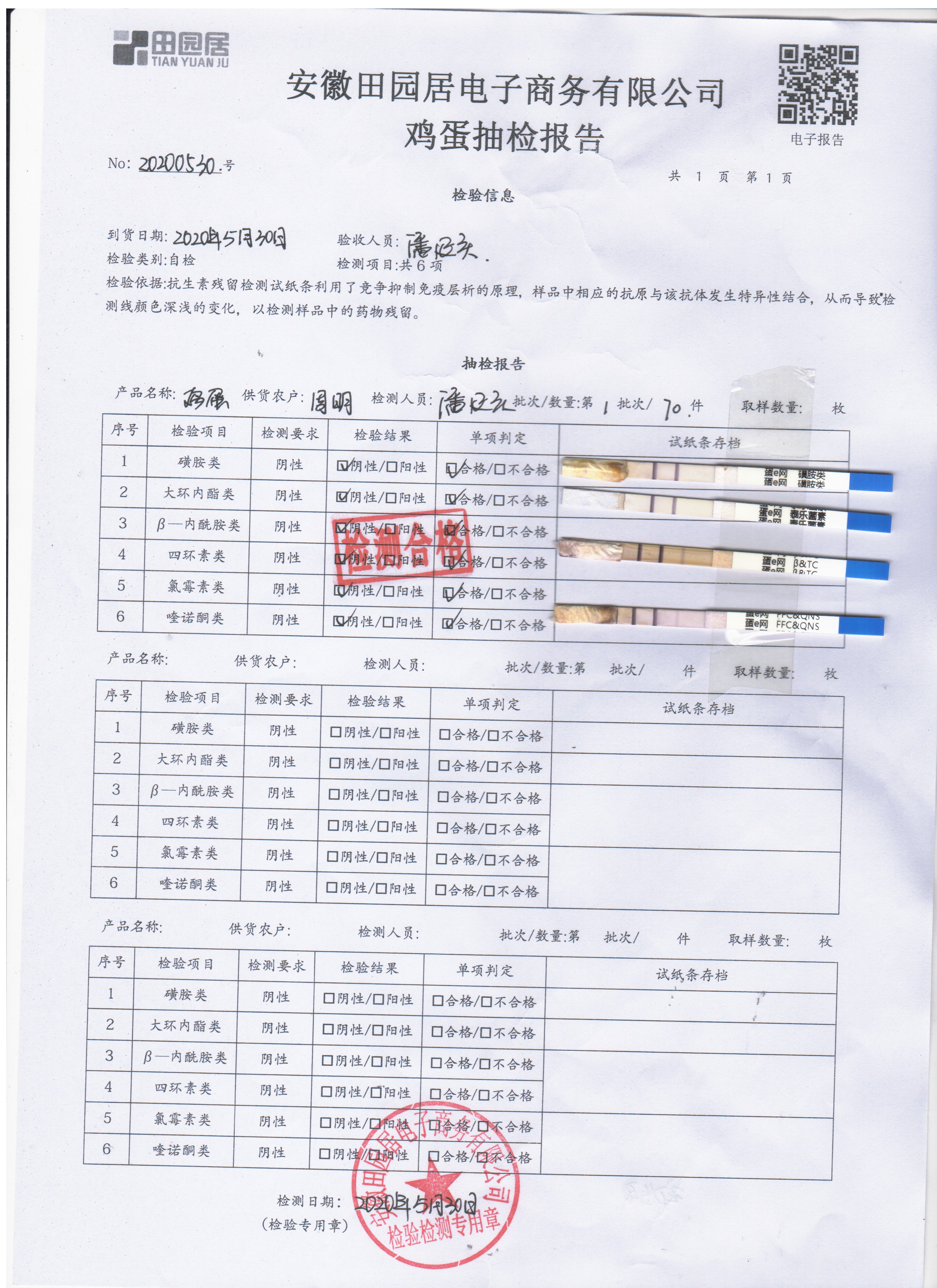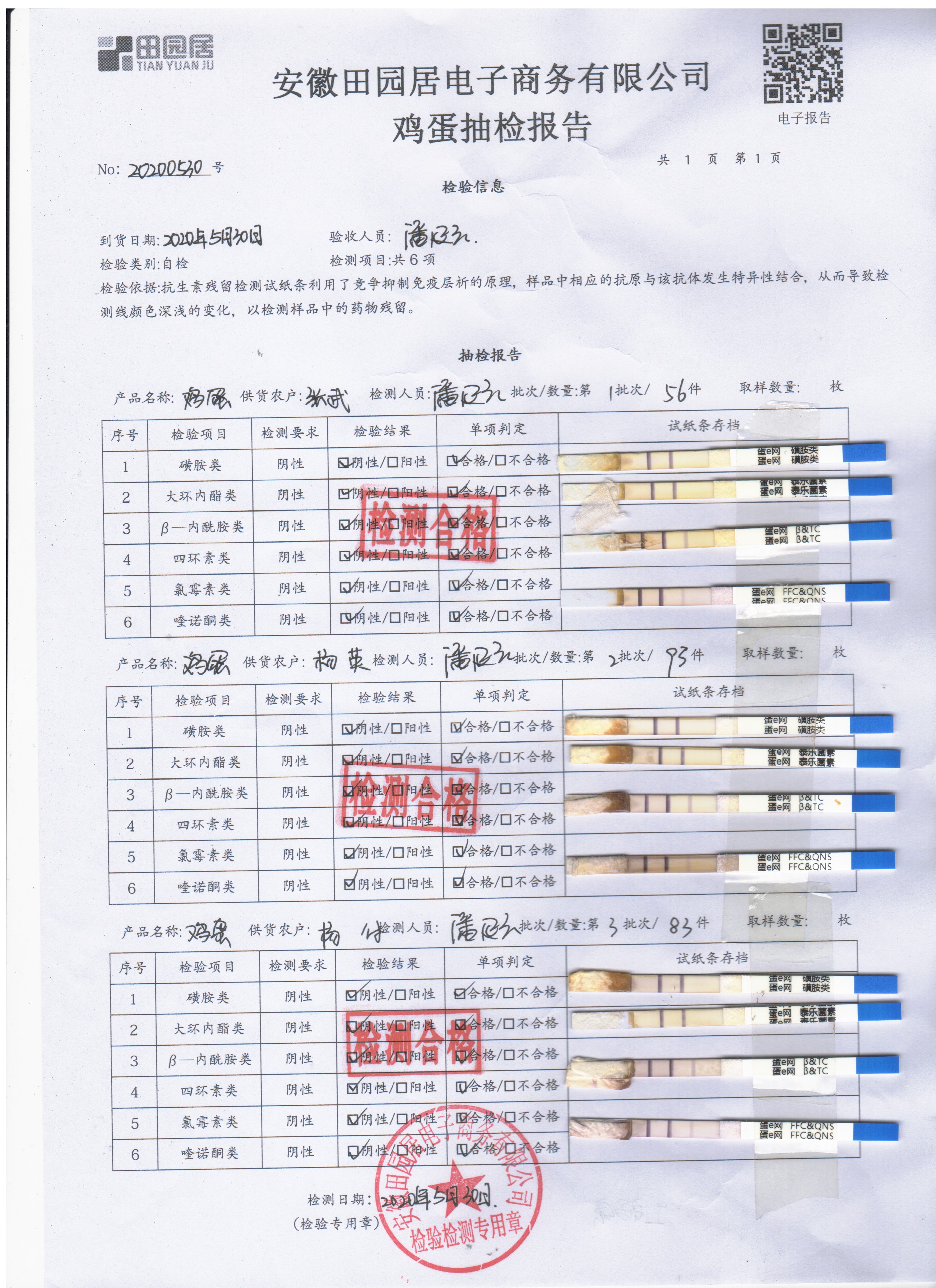 2020年5月30日鮮雞蛋無抗檢測