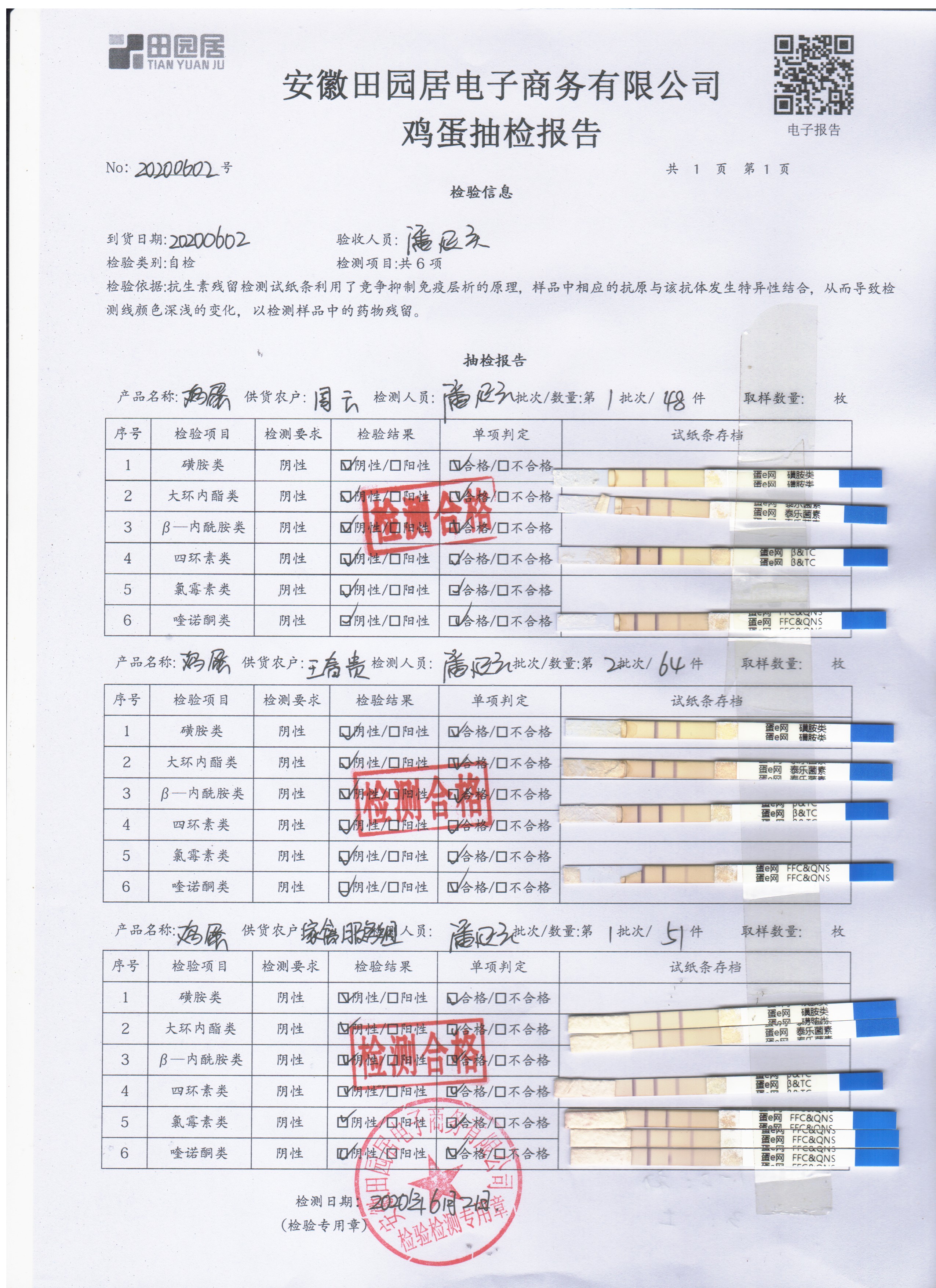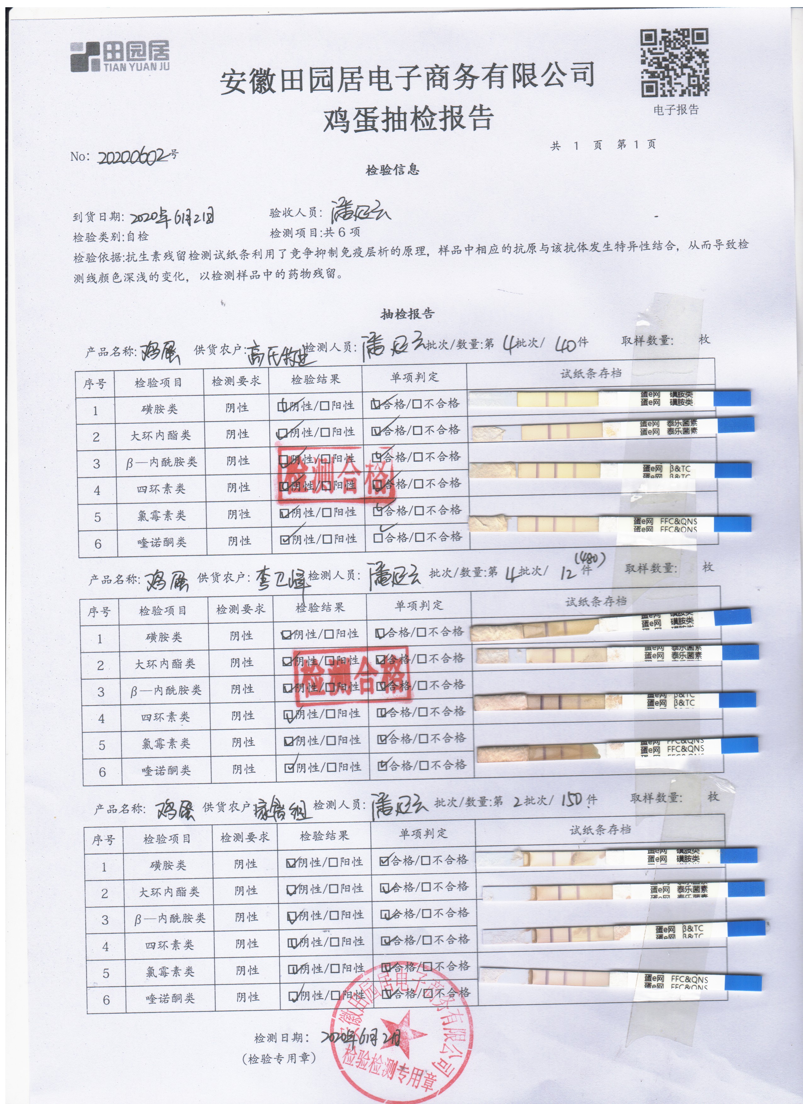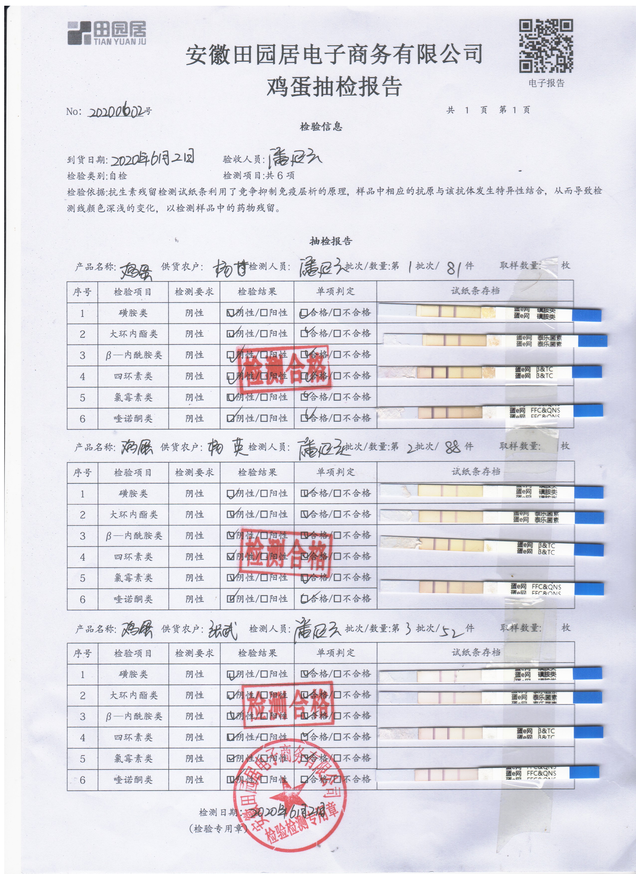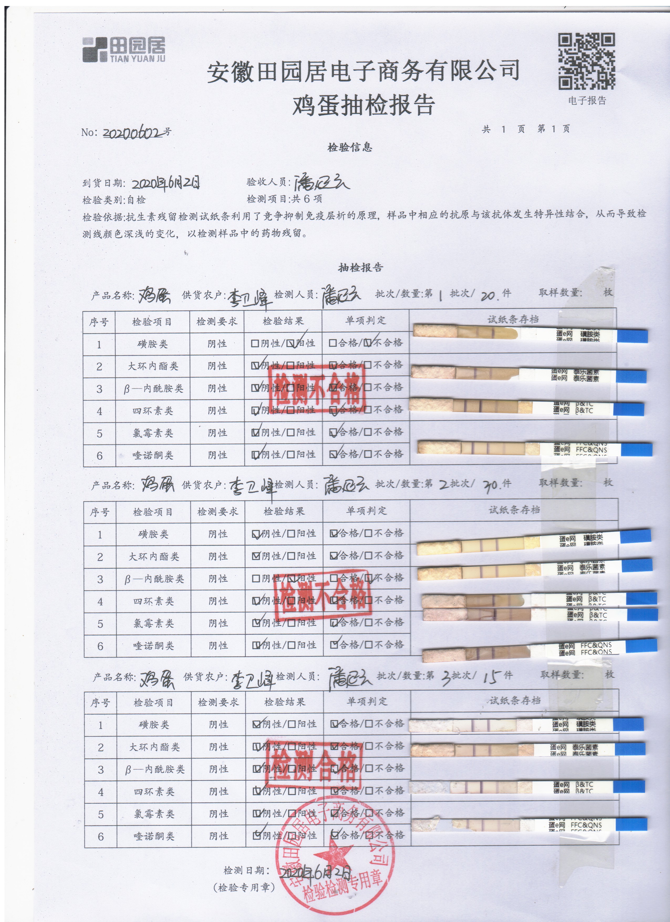 2020年6月2日鮮雞蛋無抗檢測