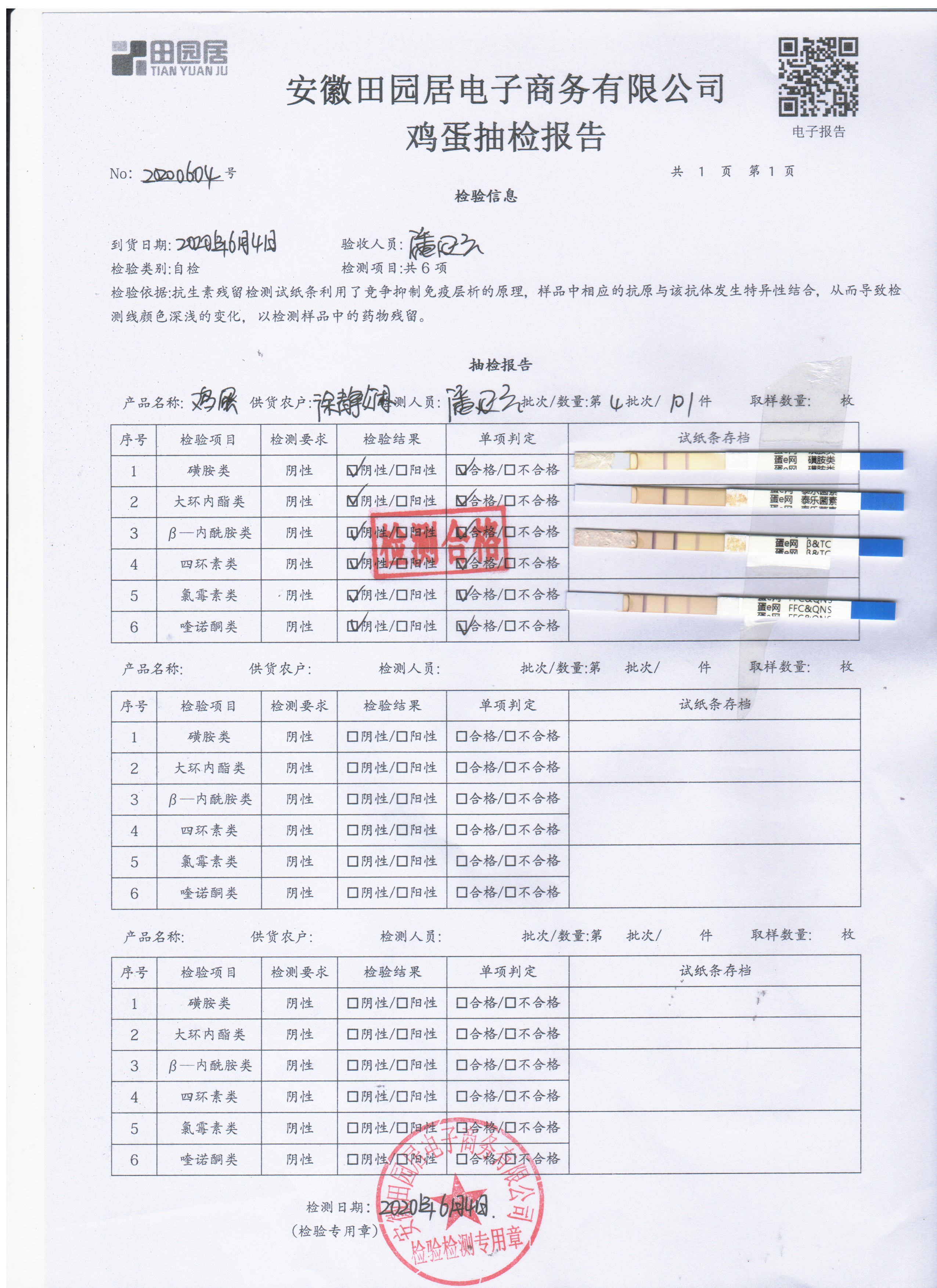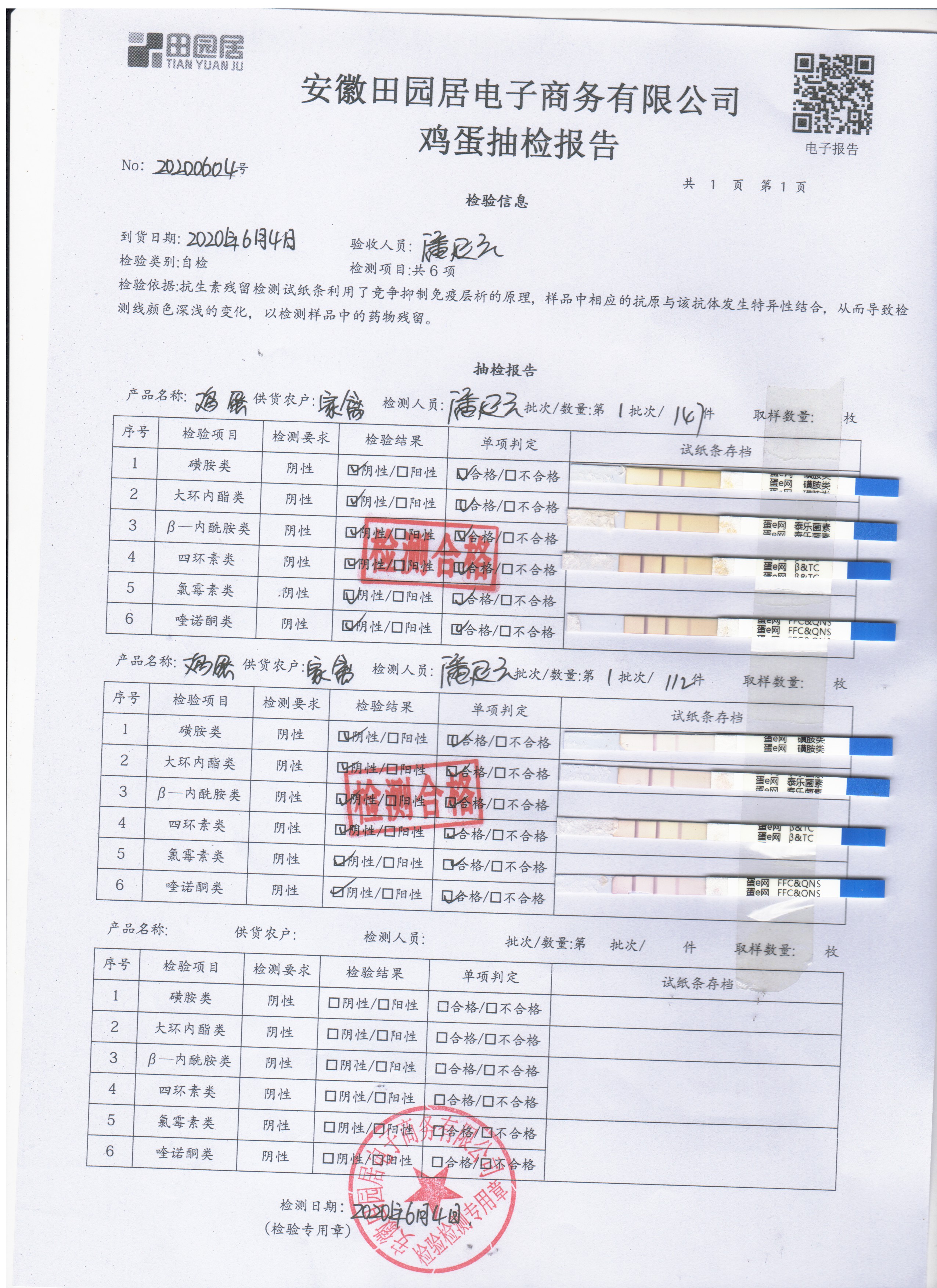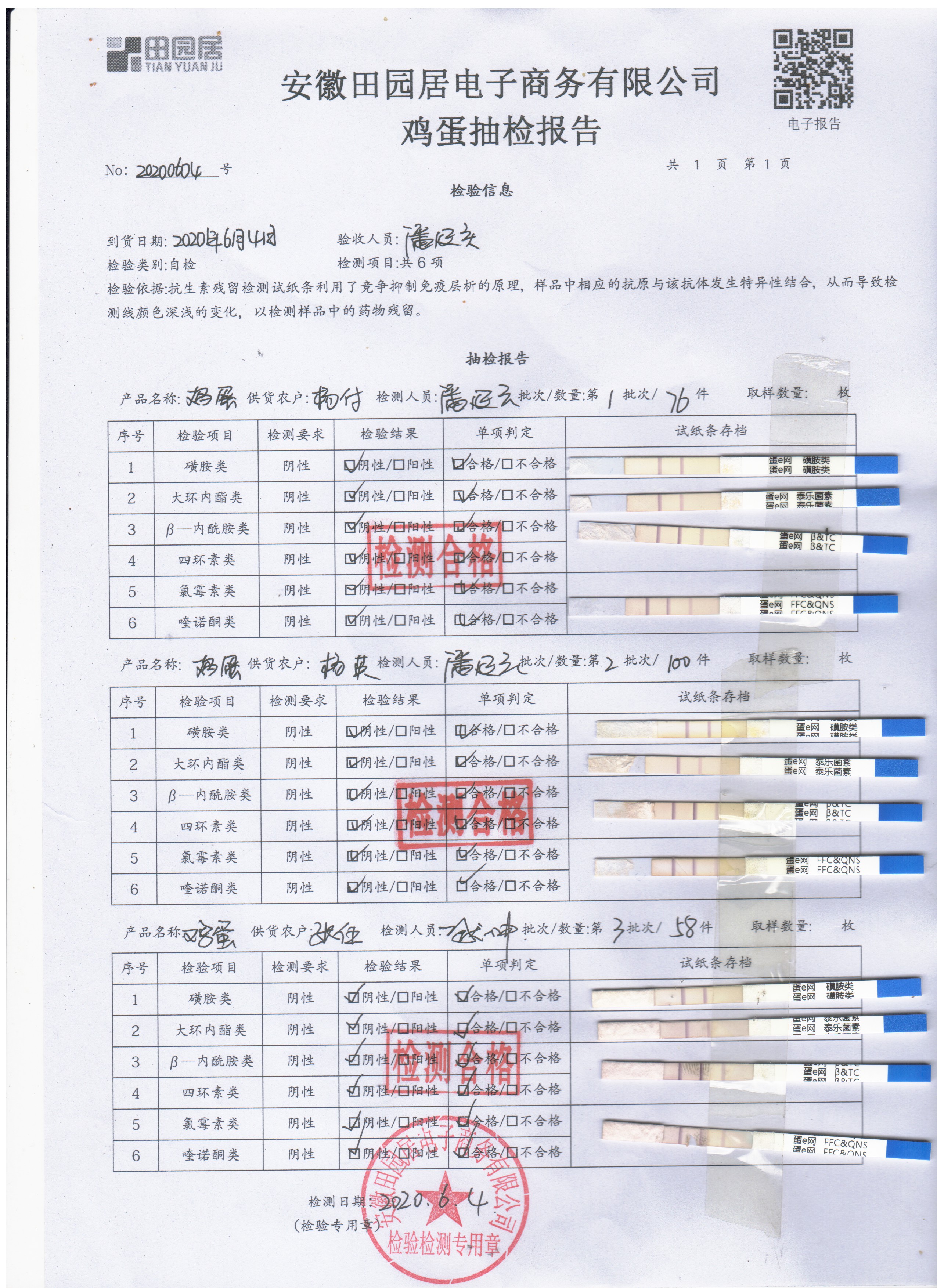 2020年6月4日鮮雞蛋無抗檢測