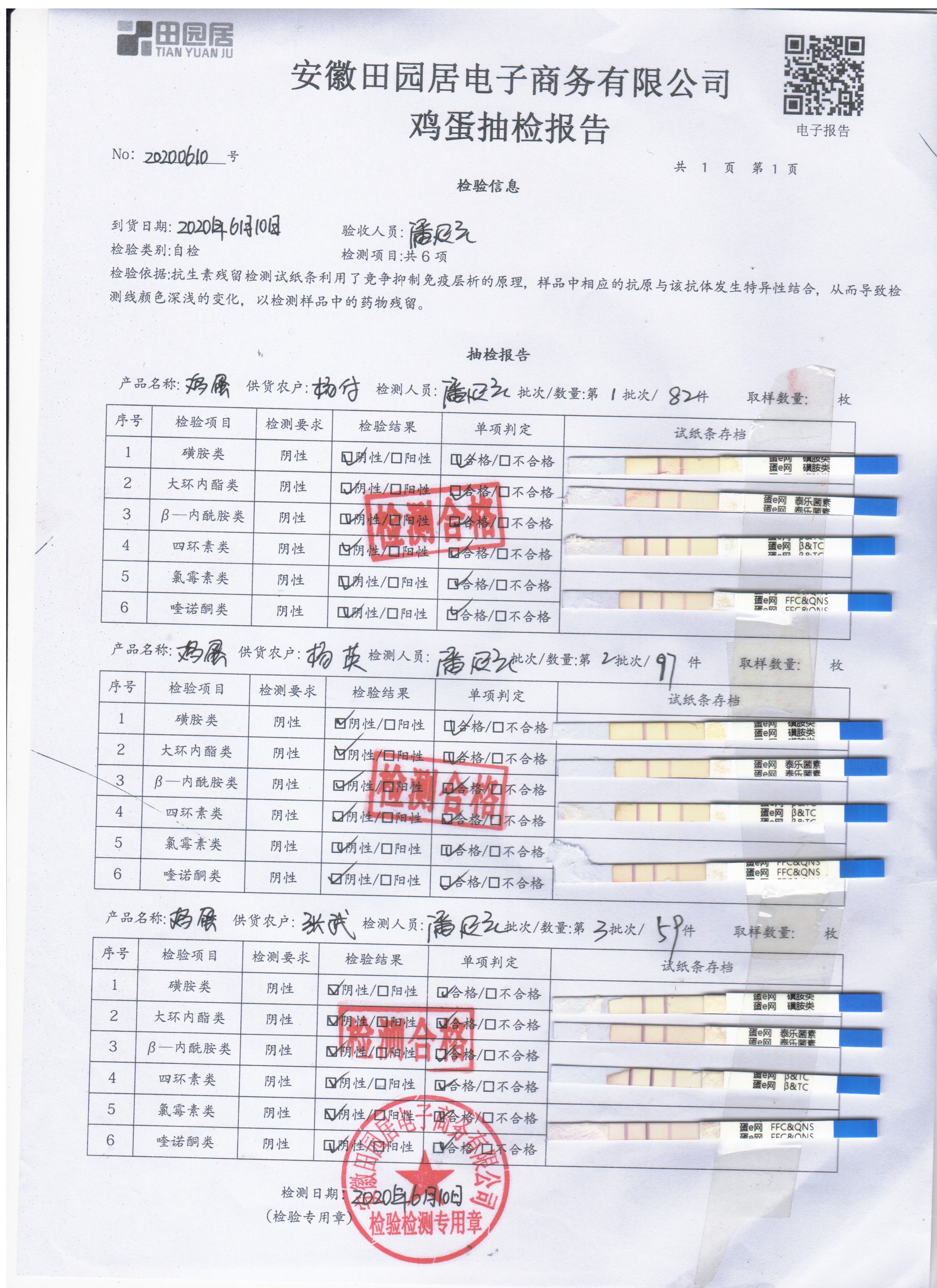 2020年6月10日鮮雞蛋無抗檢測
