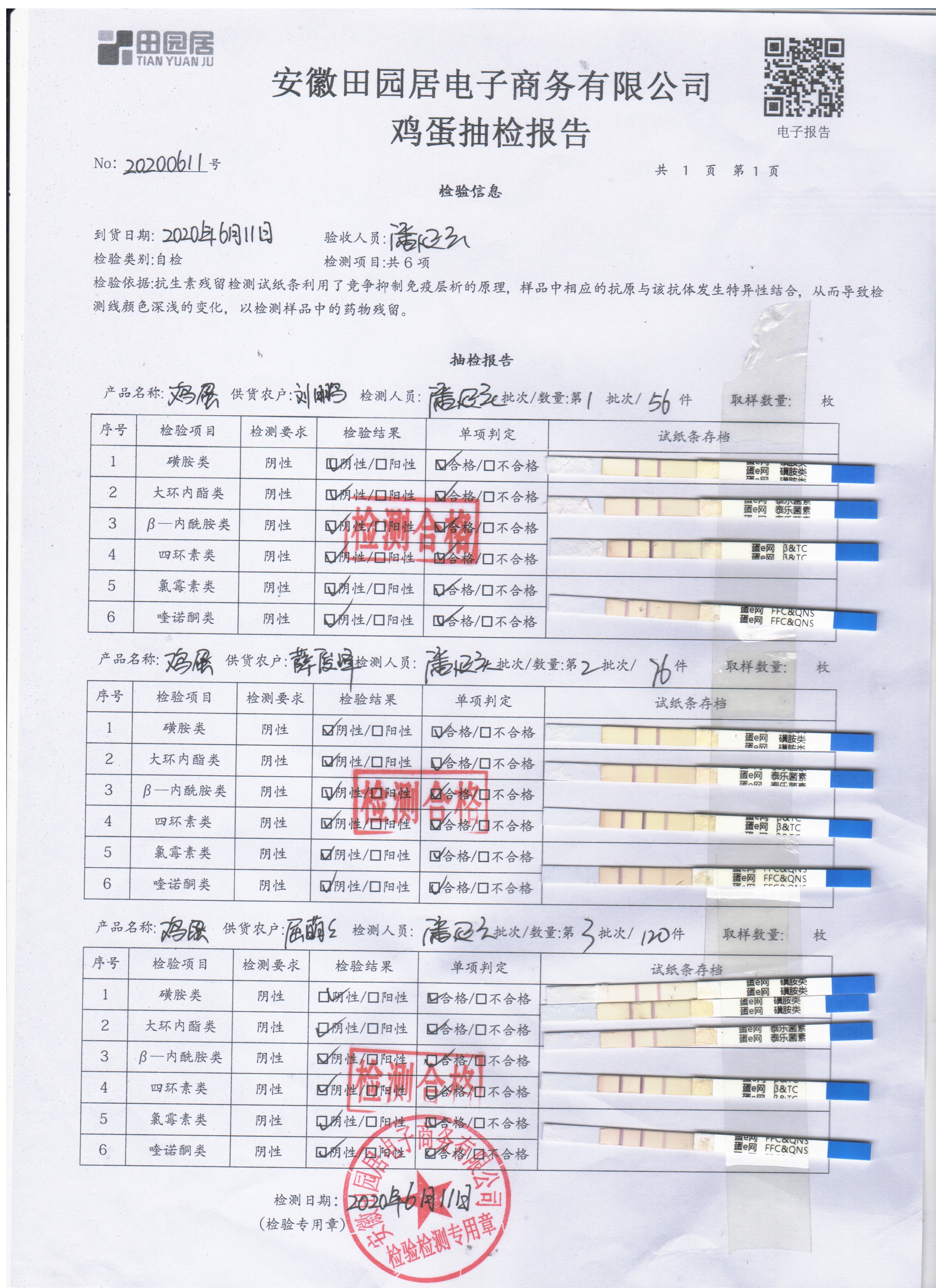 2020年6月11日鮮雞蛋無抗檢測
