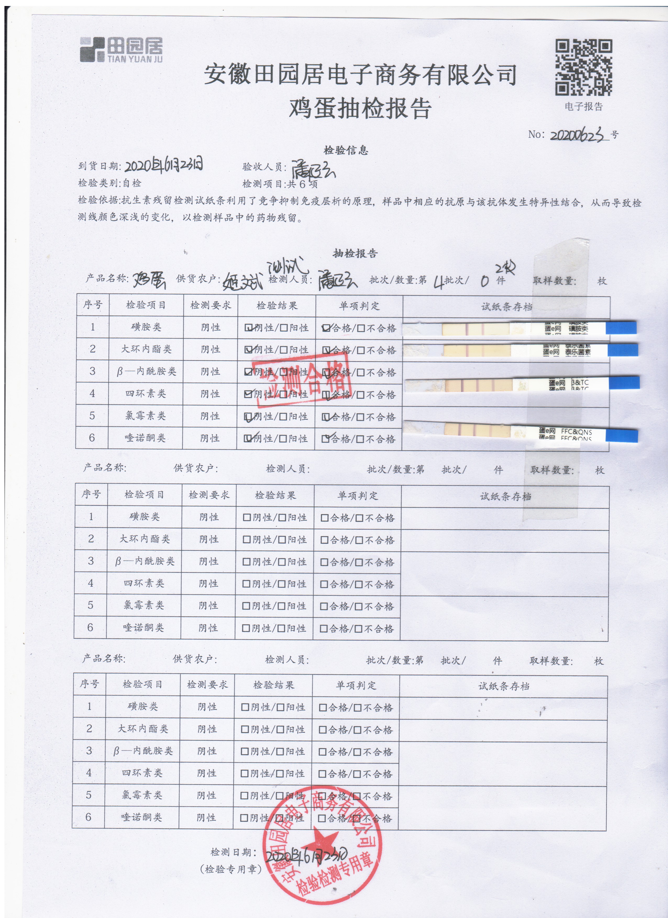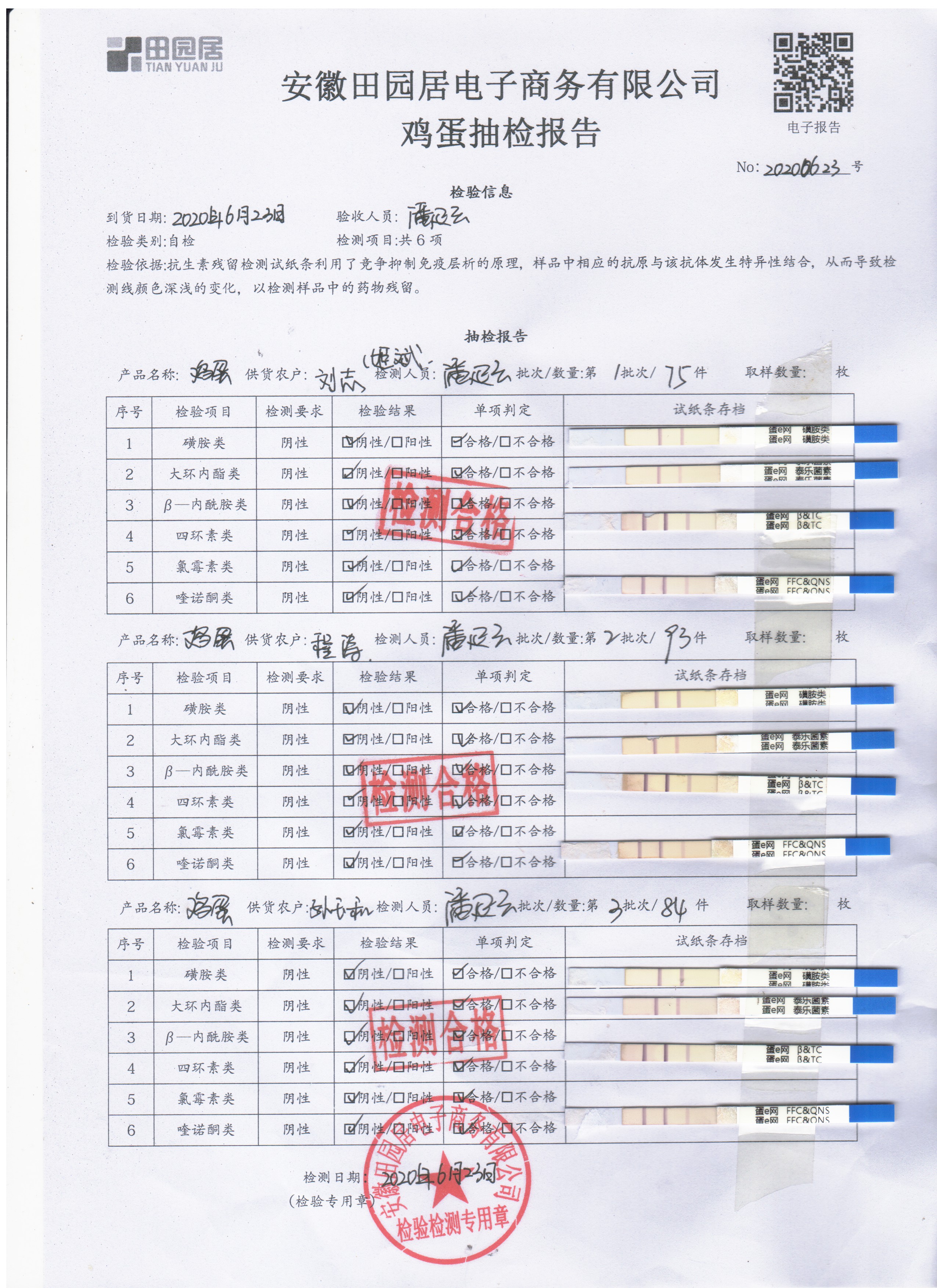 2020年6月23日鮮雞蛋無抗檢測