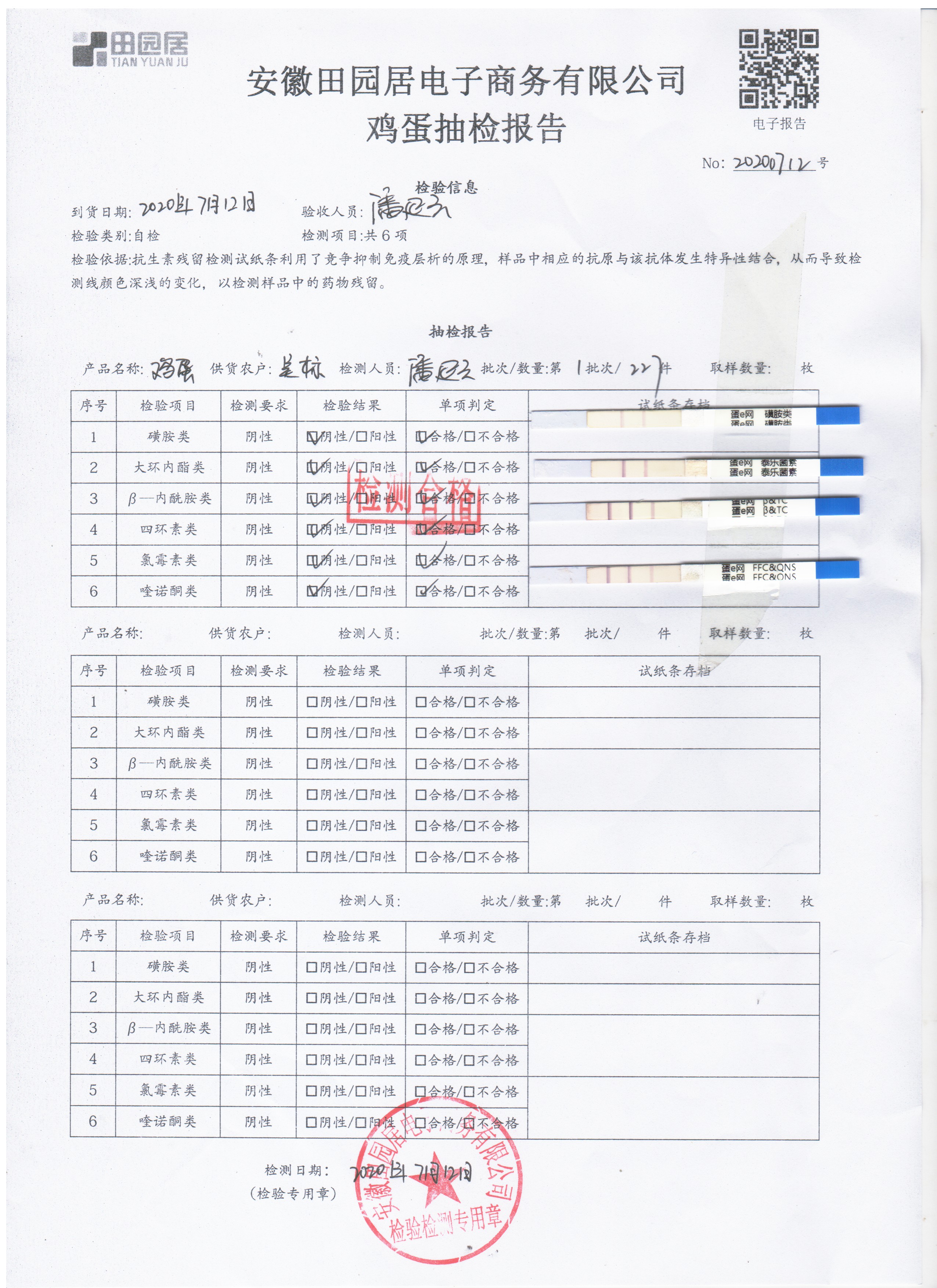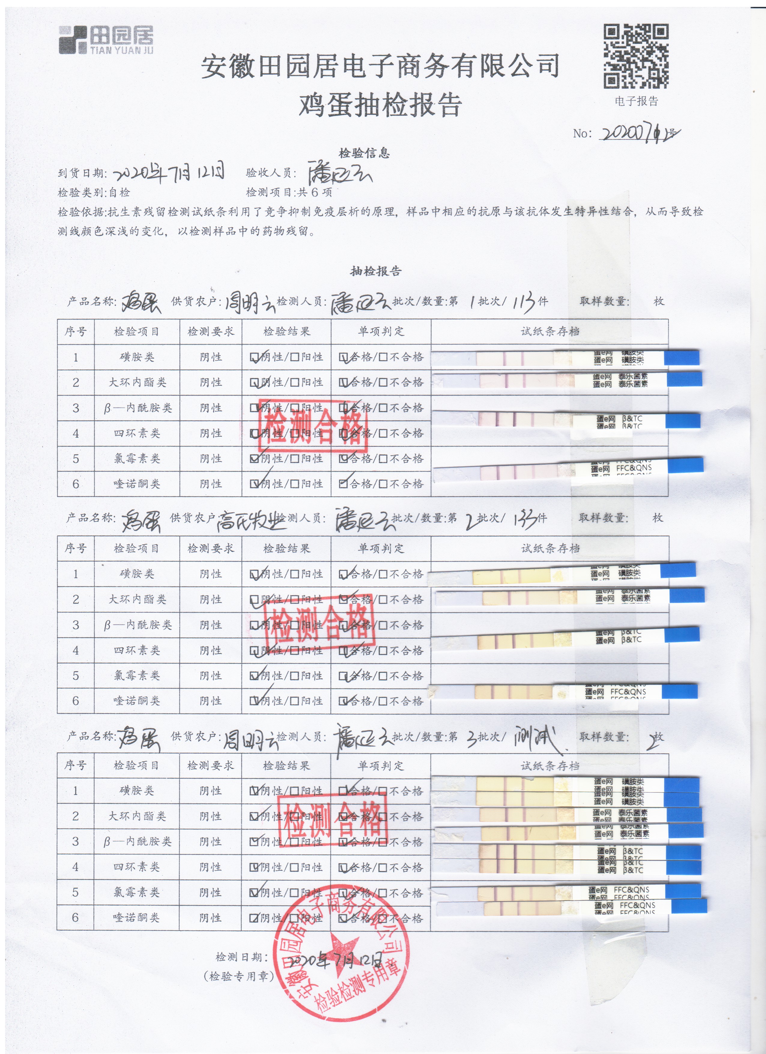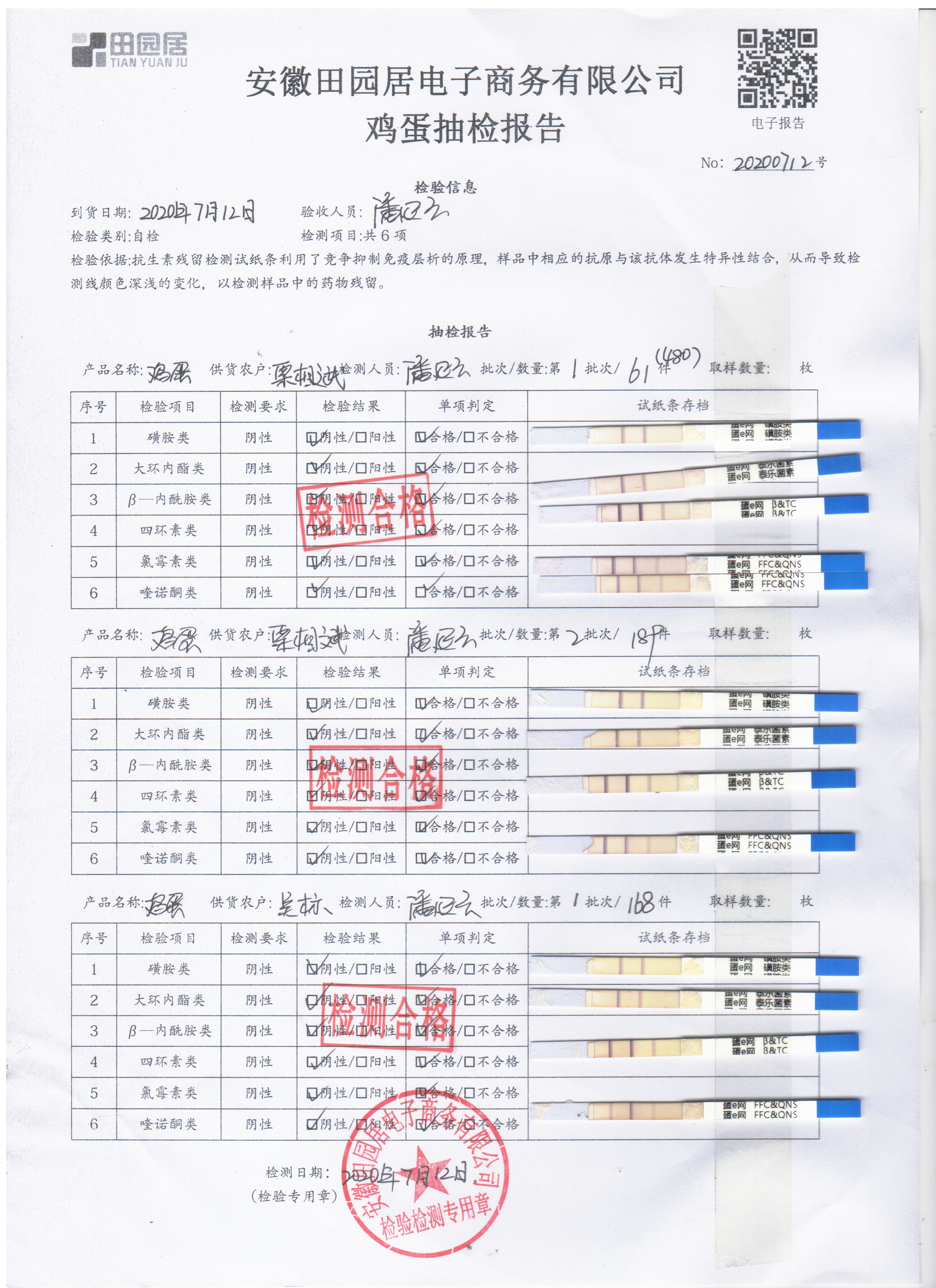 2020年7月12日鮮雞蛋無抗檢測