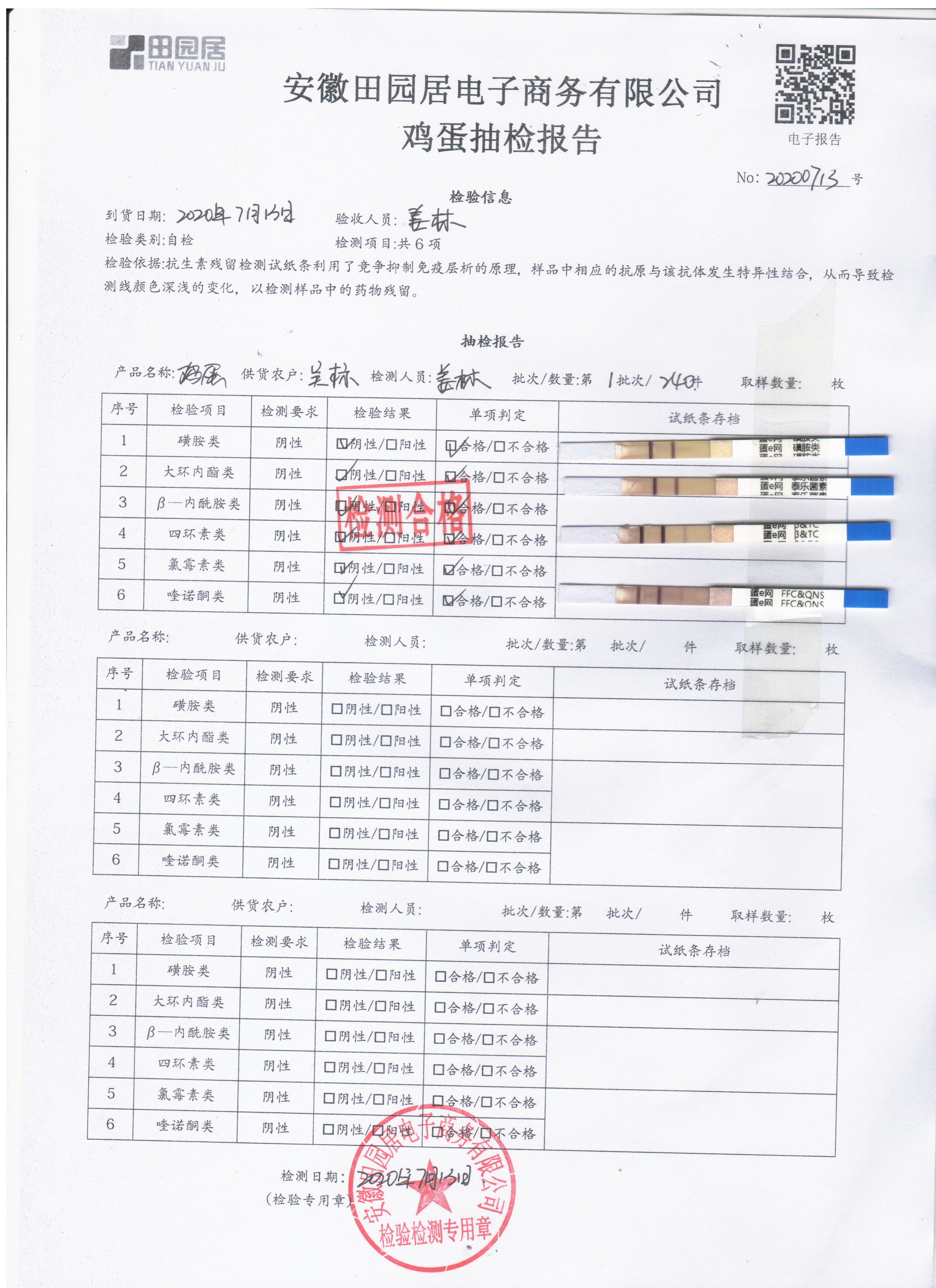 2020年7月12日鮮雞蛋無抗檢測