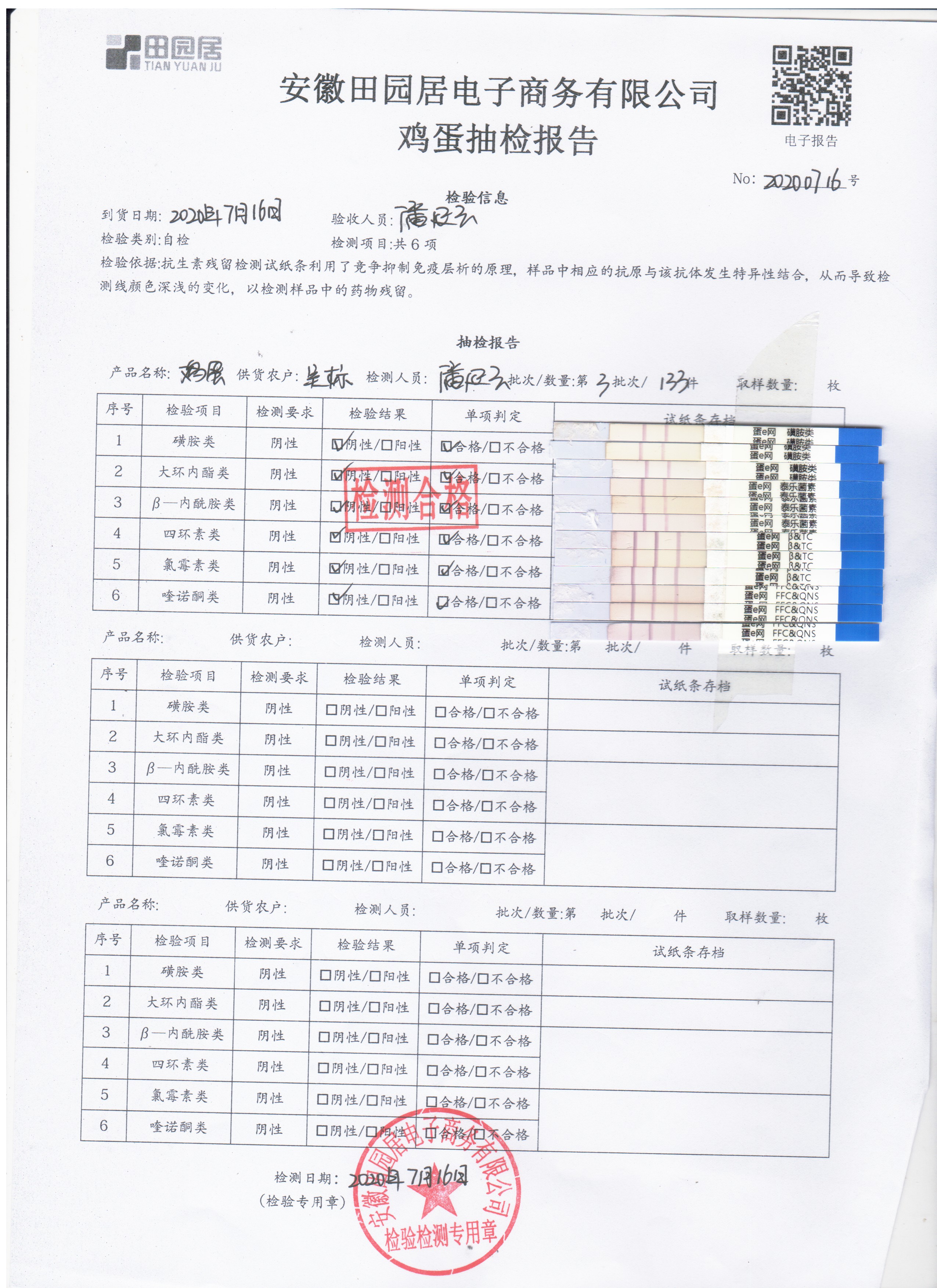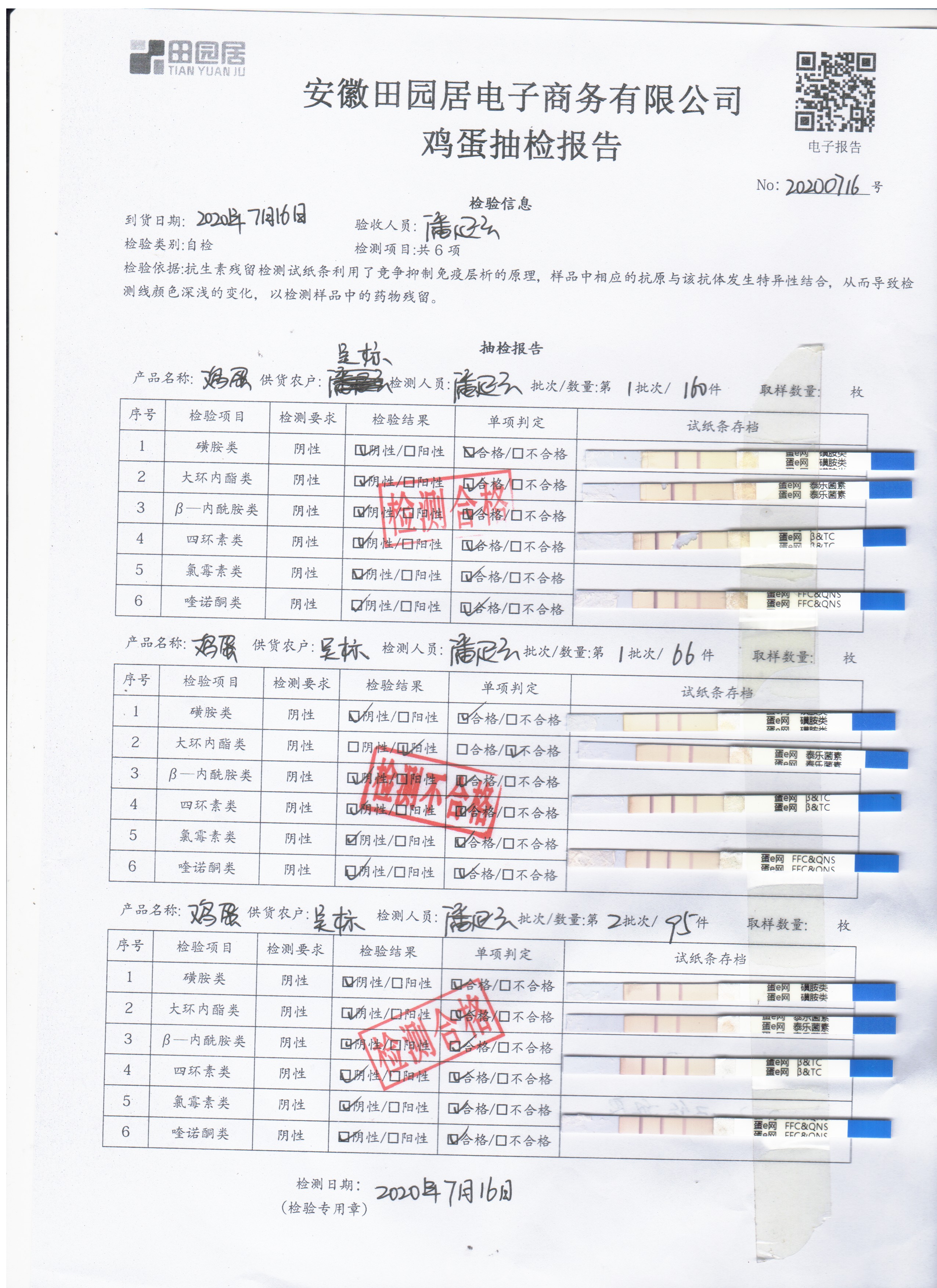 2020年7月16日鮮雞蛋無抗檢測