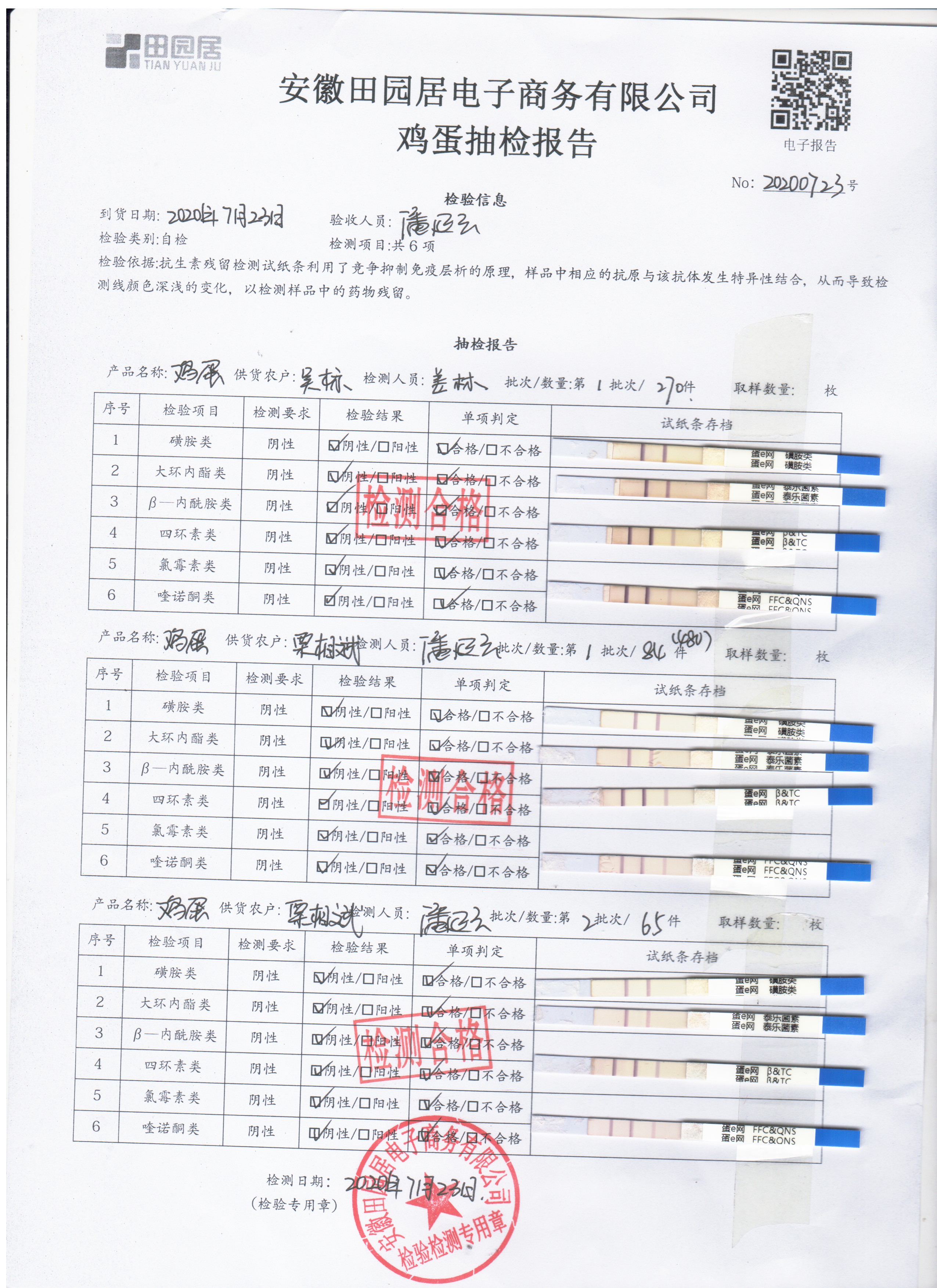 2020年7月24日鮮雞蛋無抗檢測