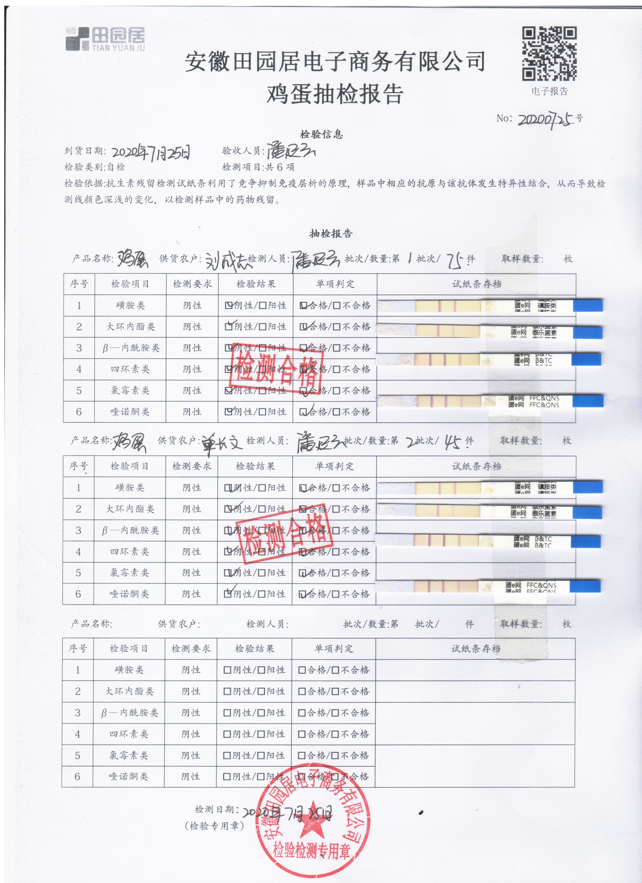 2020年7月25日鮮雞蛋無抗檢測