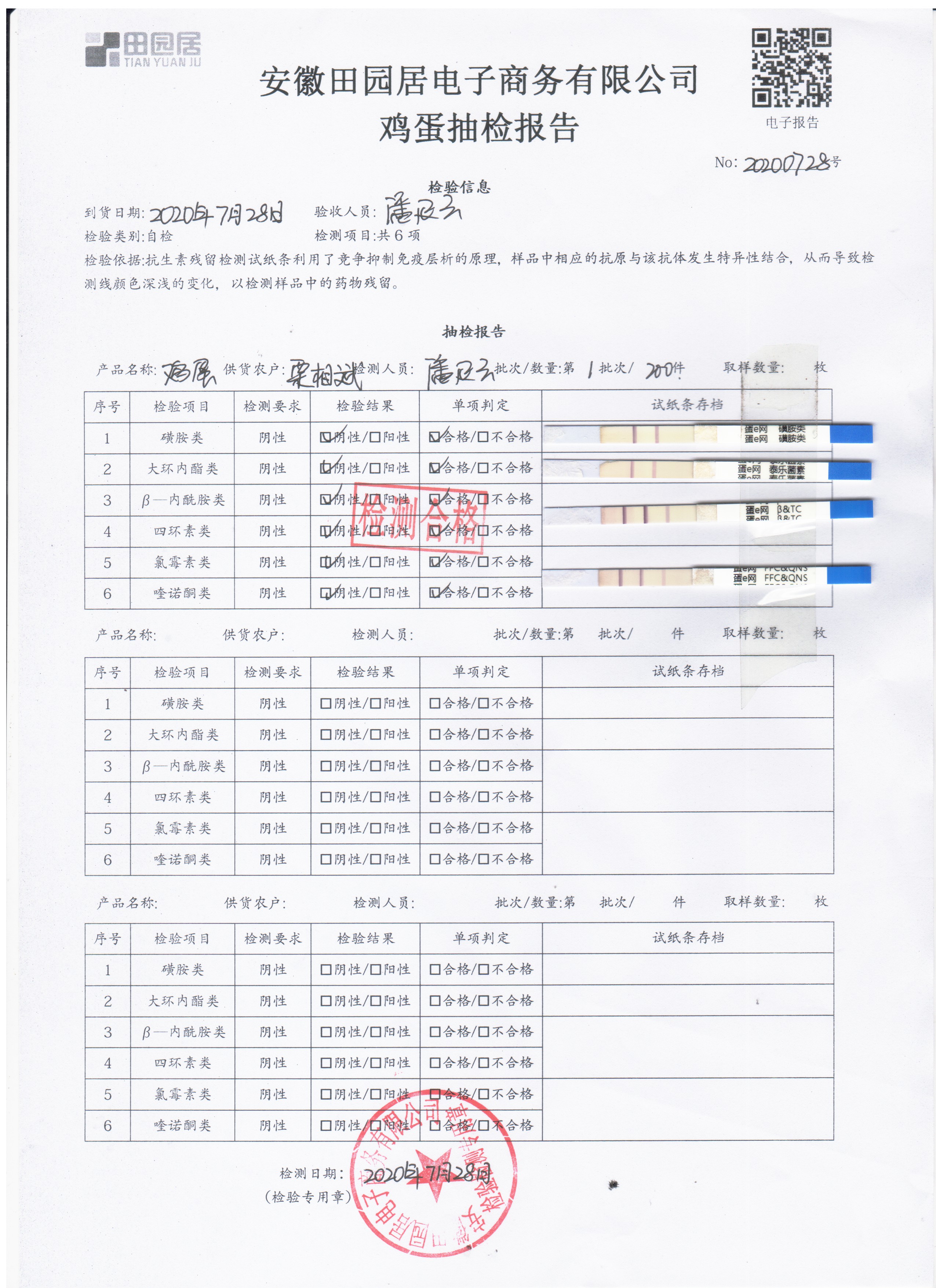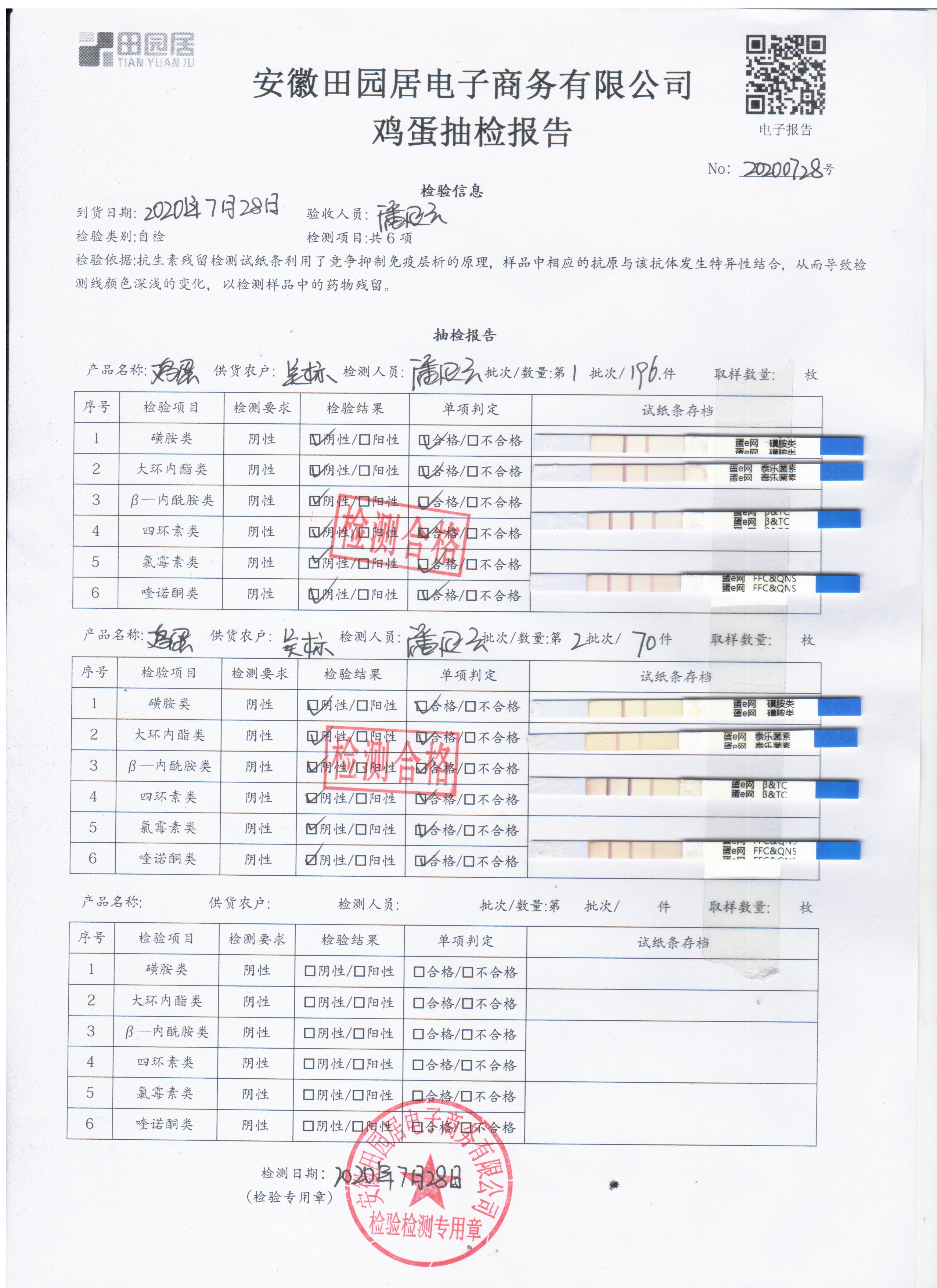 2020年7月28日鮮雞蛋無抗檢測