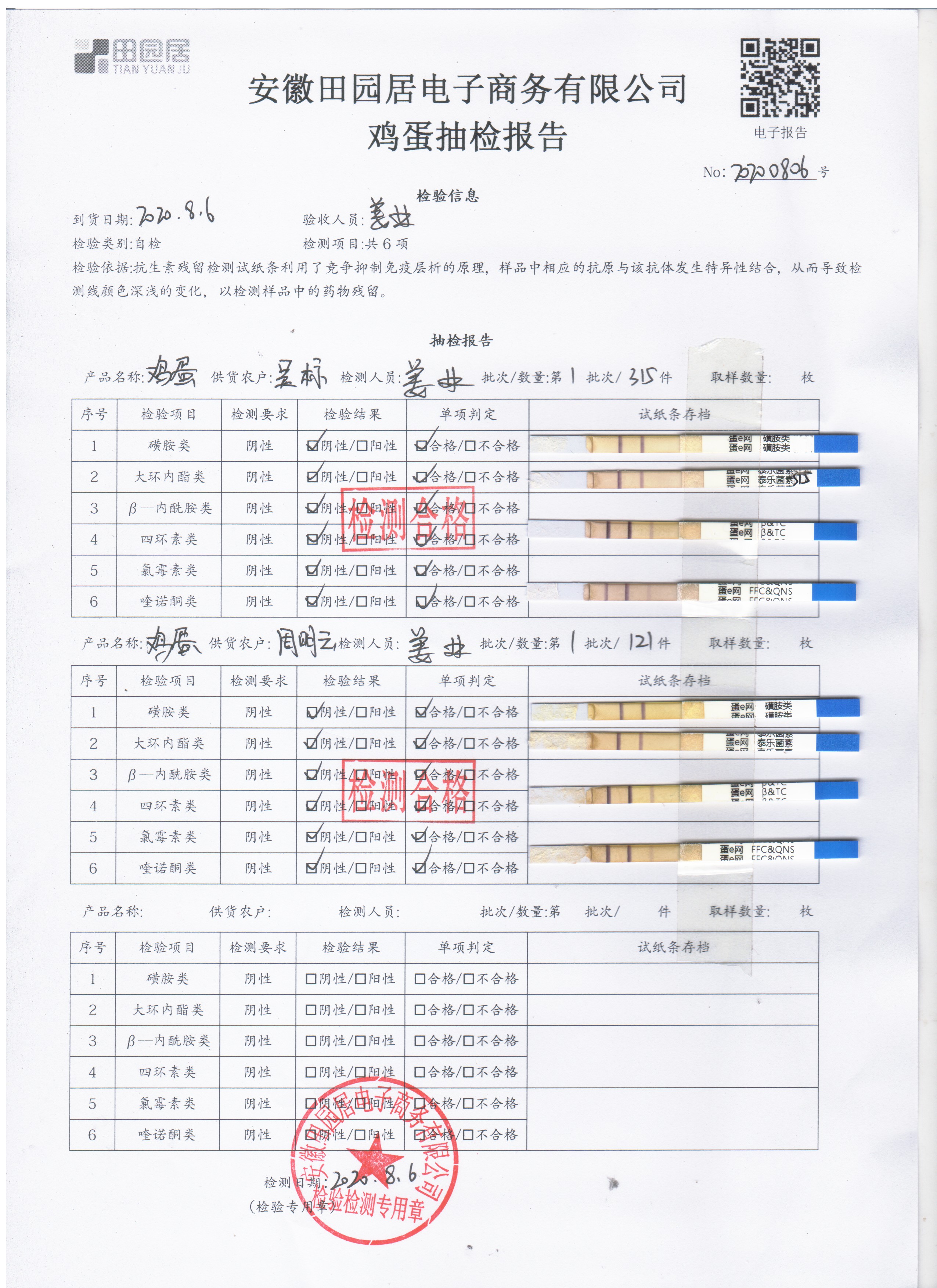 2020年8月6日鮮雞蛋無抗檢測