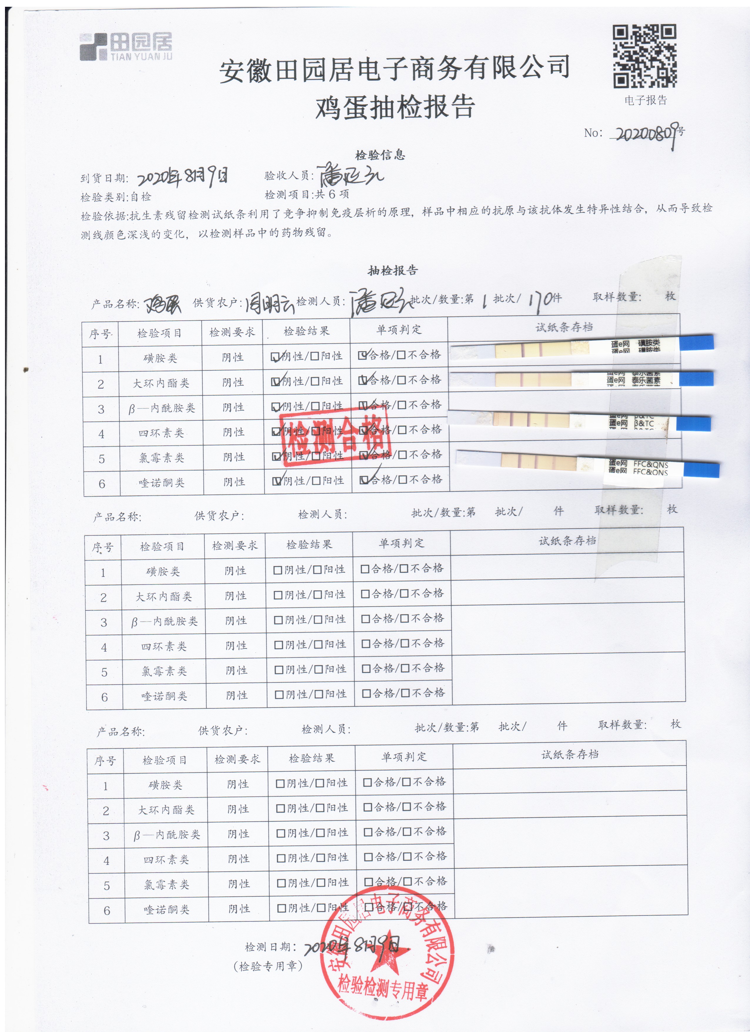 2020年8月9日鮮雞蛋無抗檢測