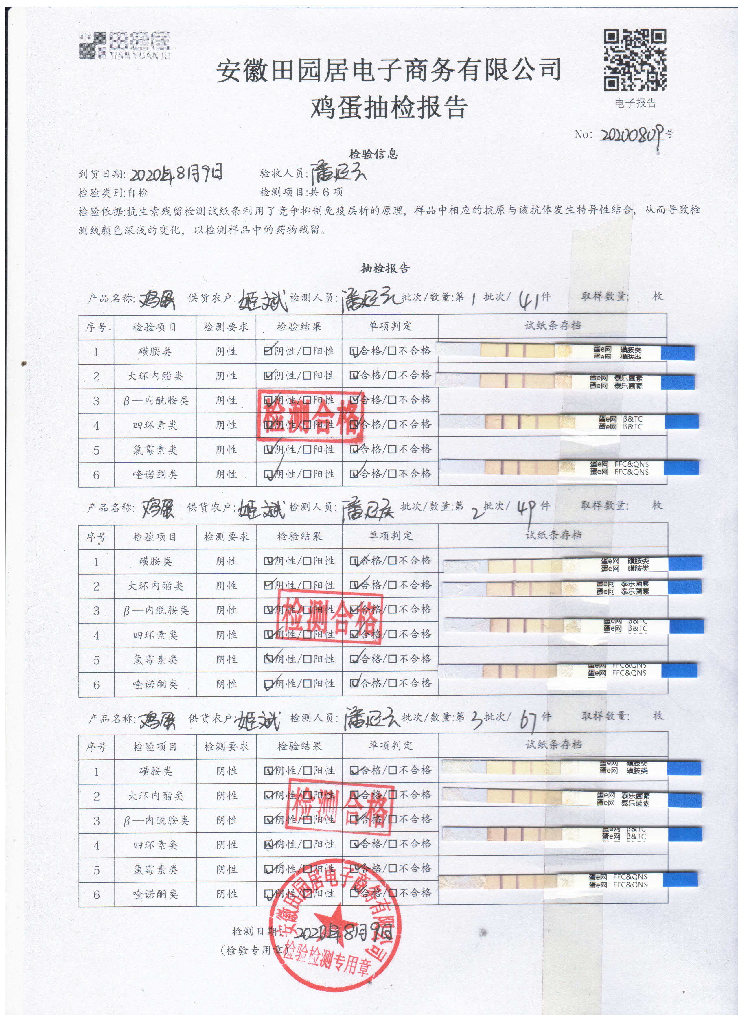 2020年8月8日鮮雞蛋無抗檢測