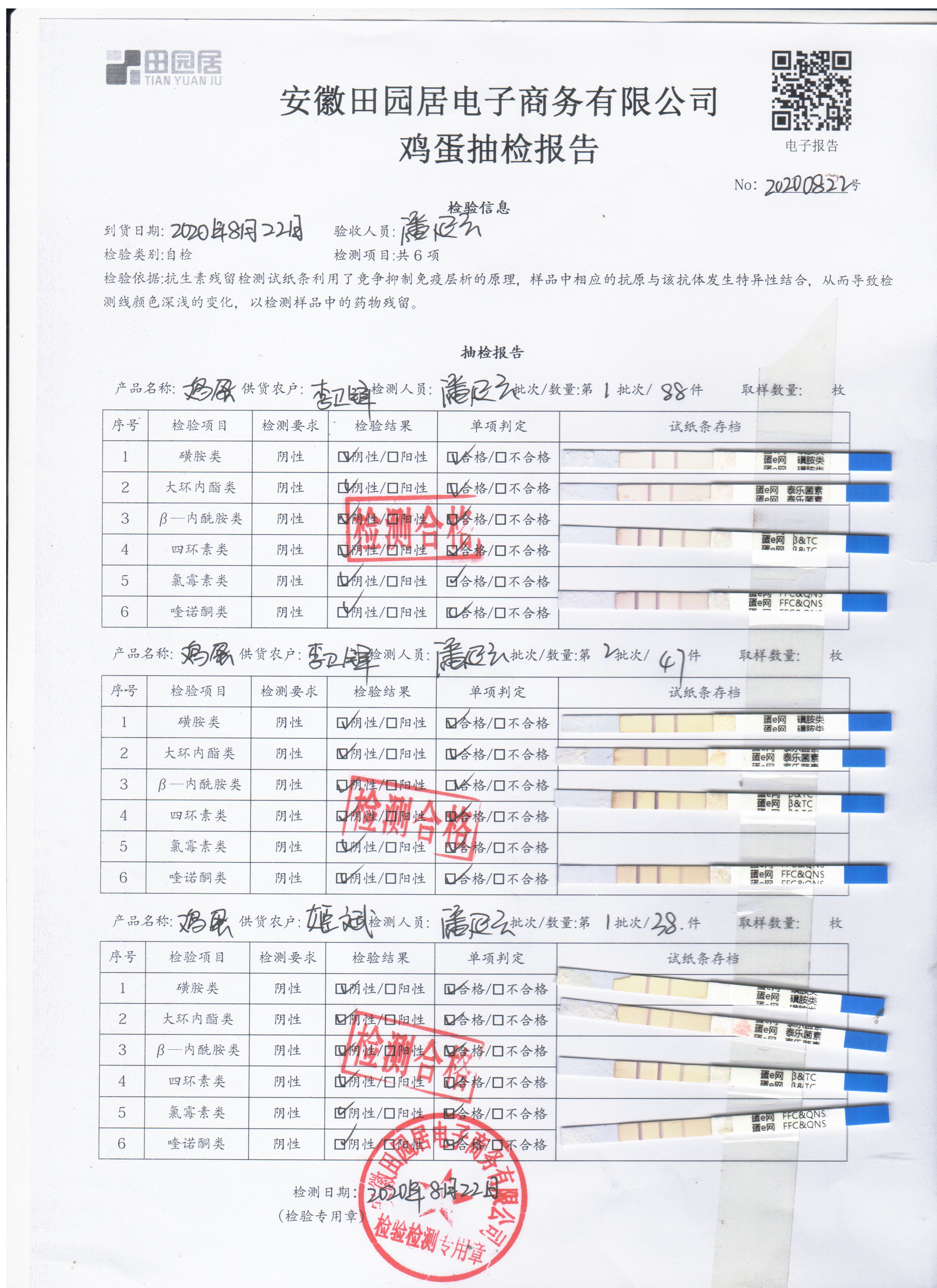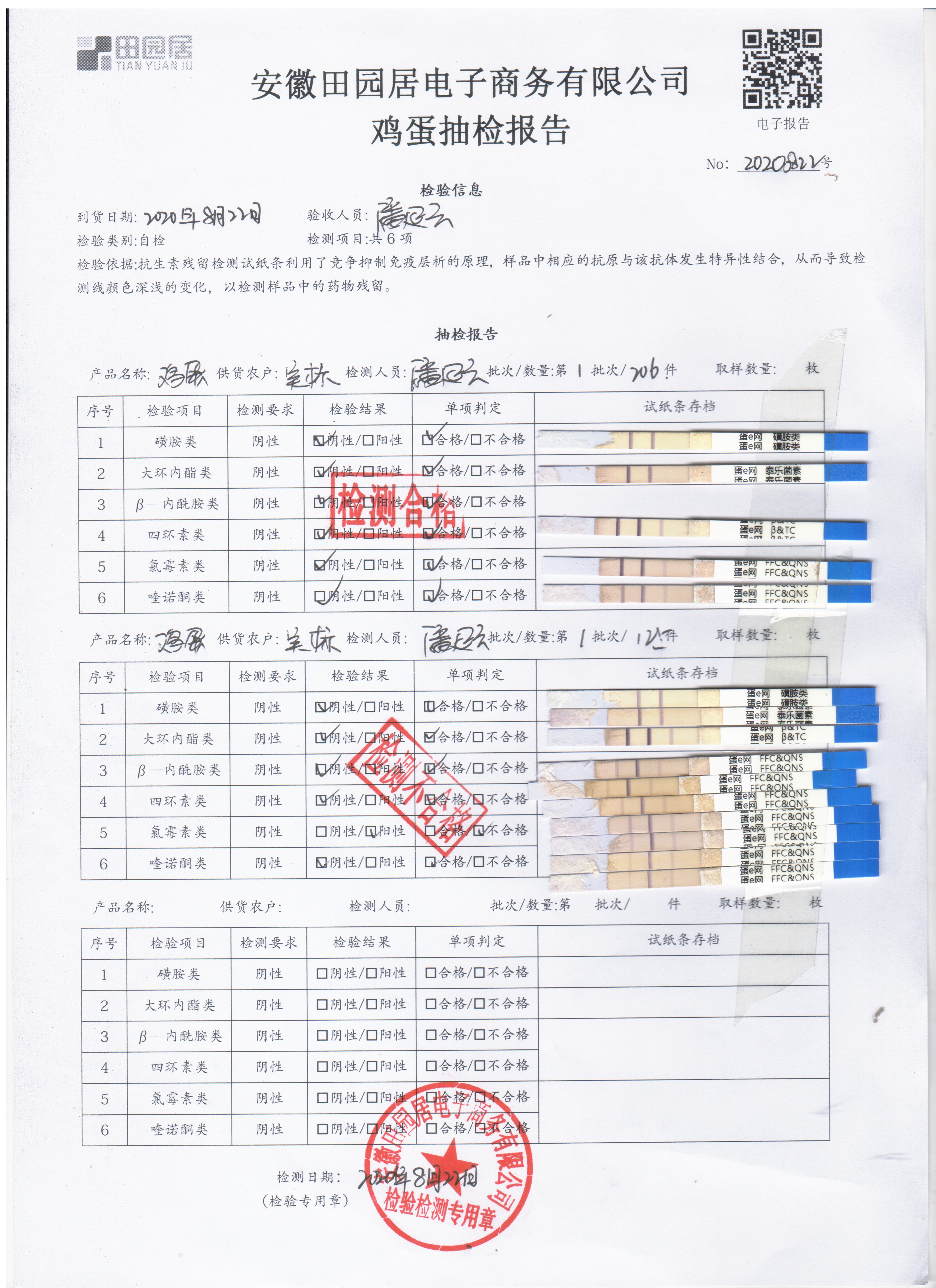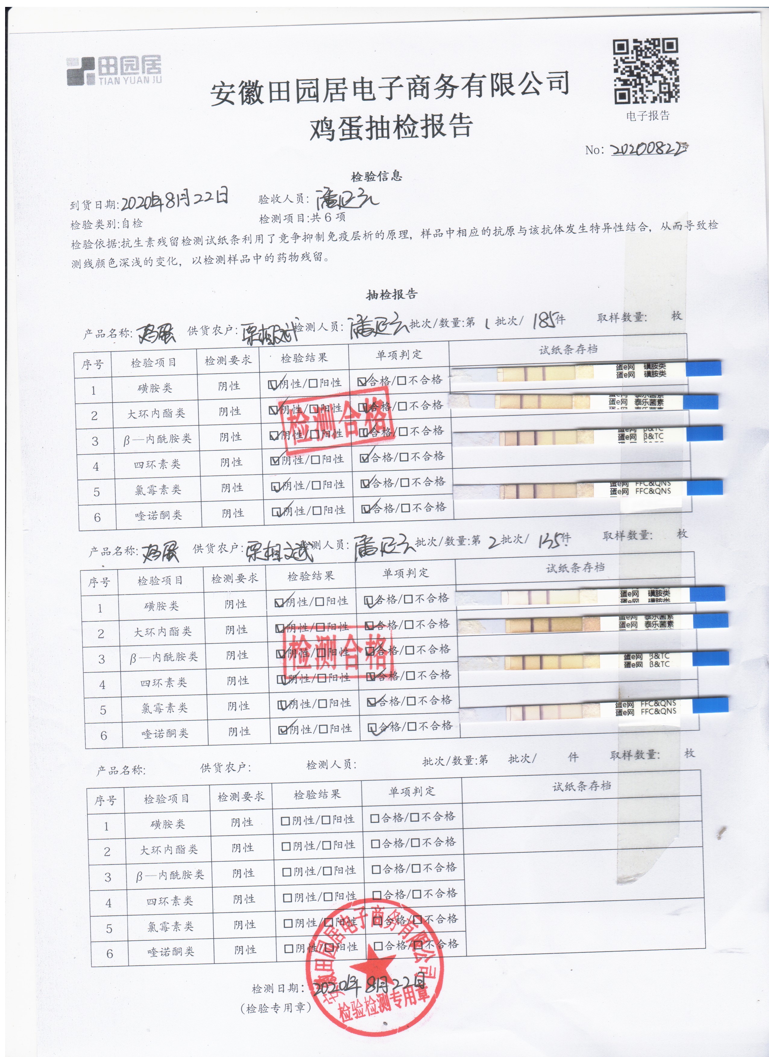 2020年8月22日鮮雞蛋無抗檢測