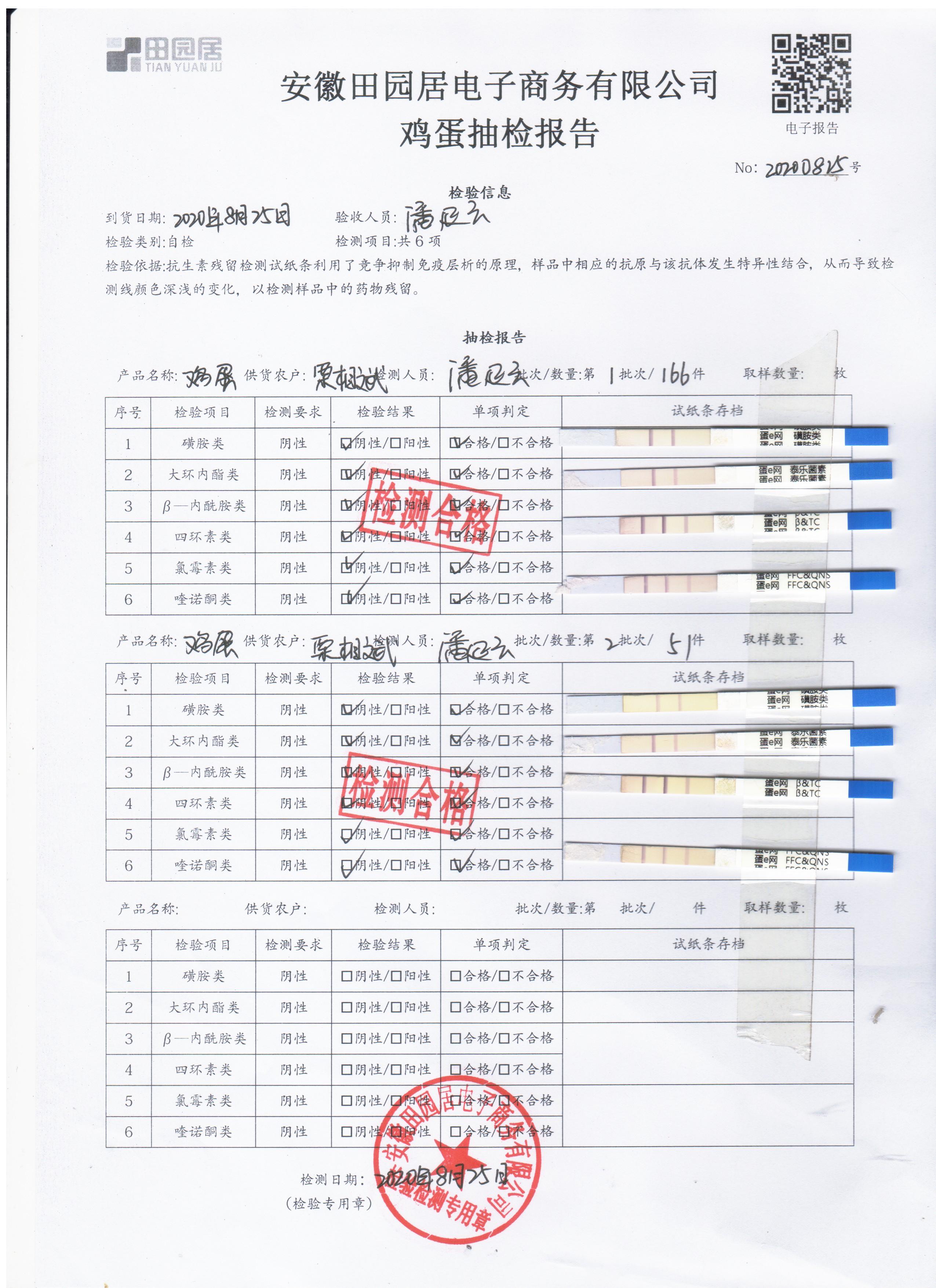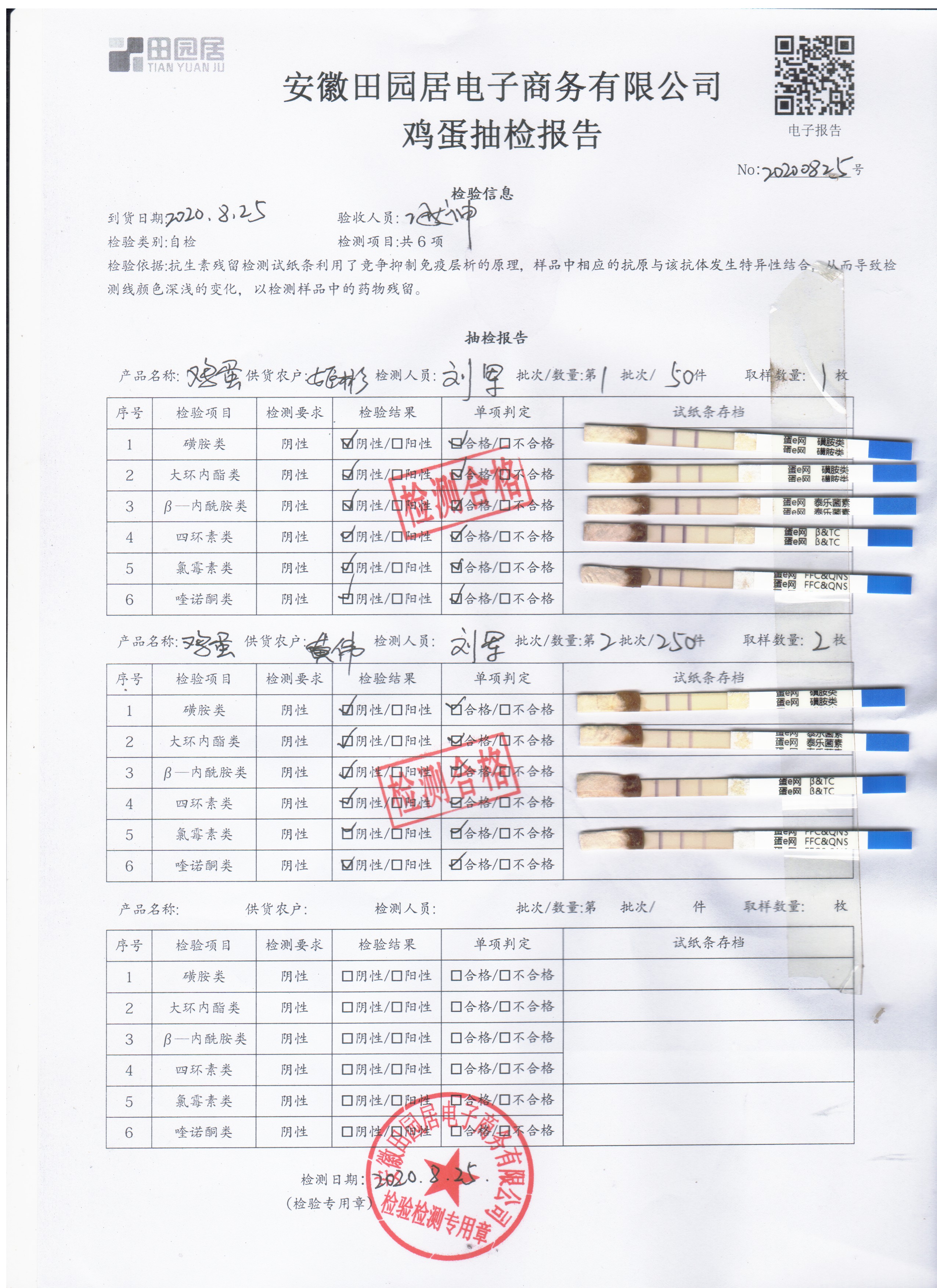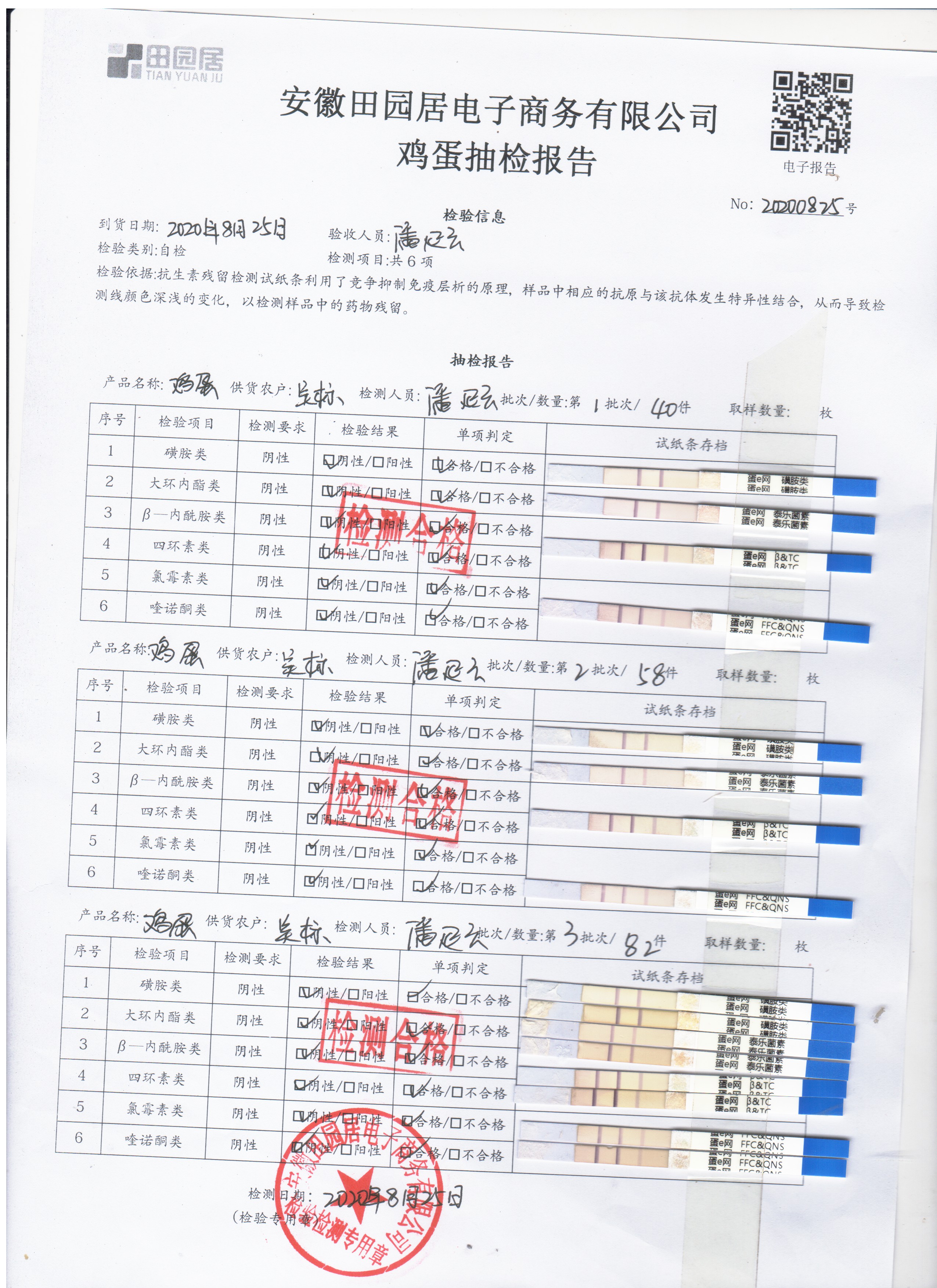 2020年8月25日鮮雞蛋無抗檢測