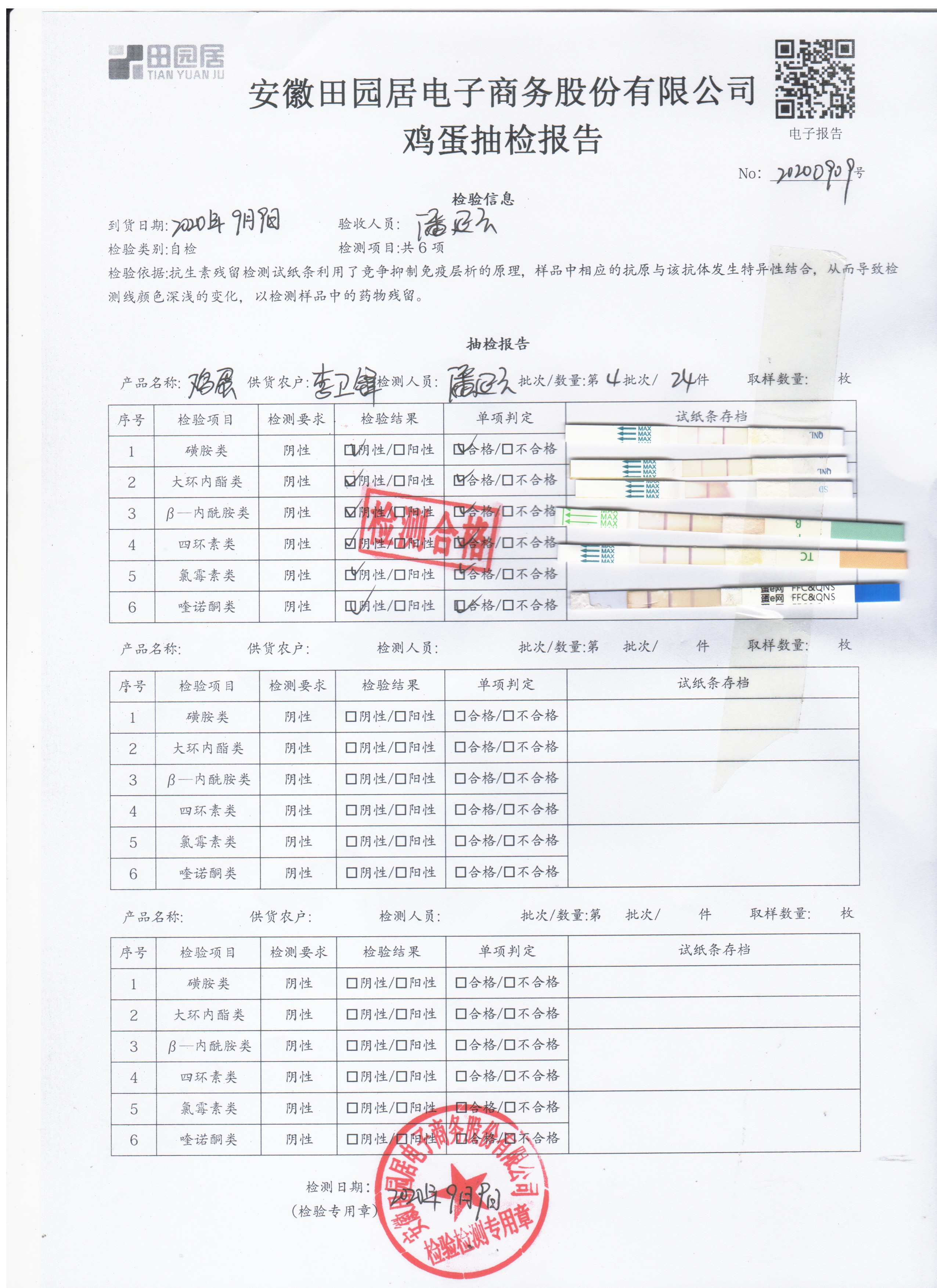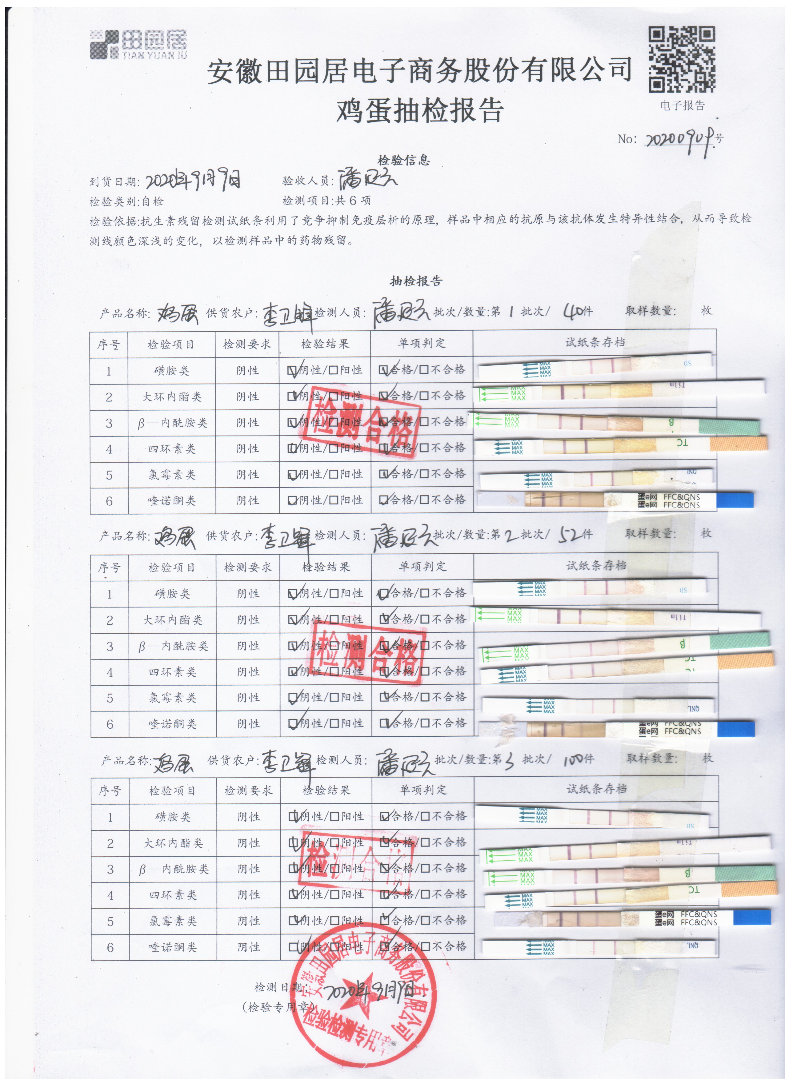 2020年9月9日鮮雞蛋無抗檢測