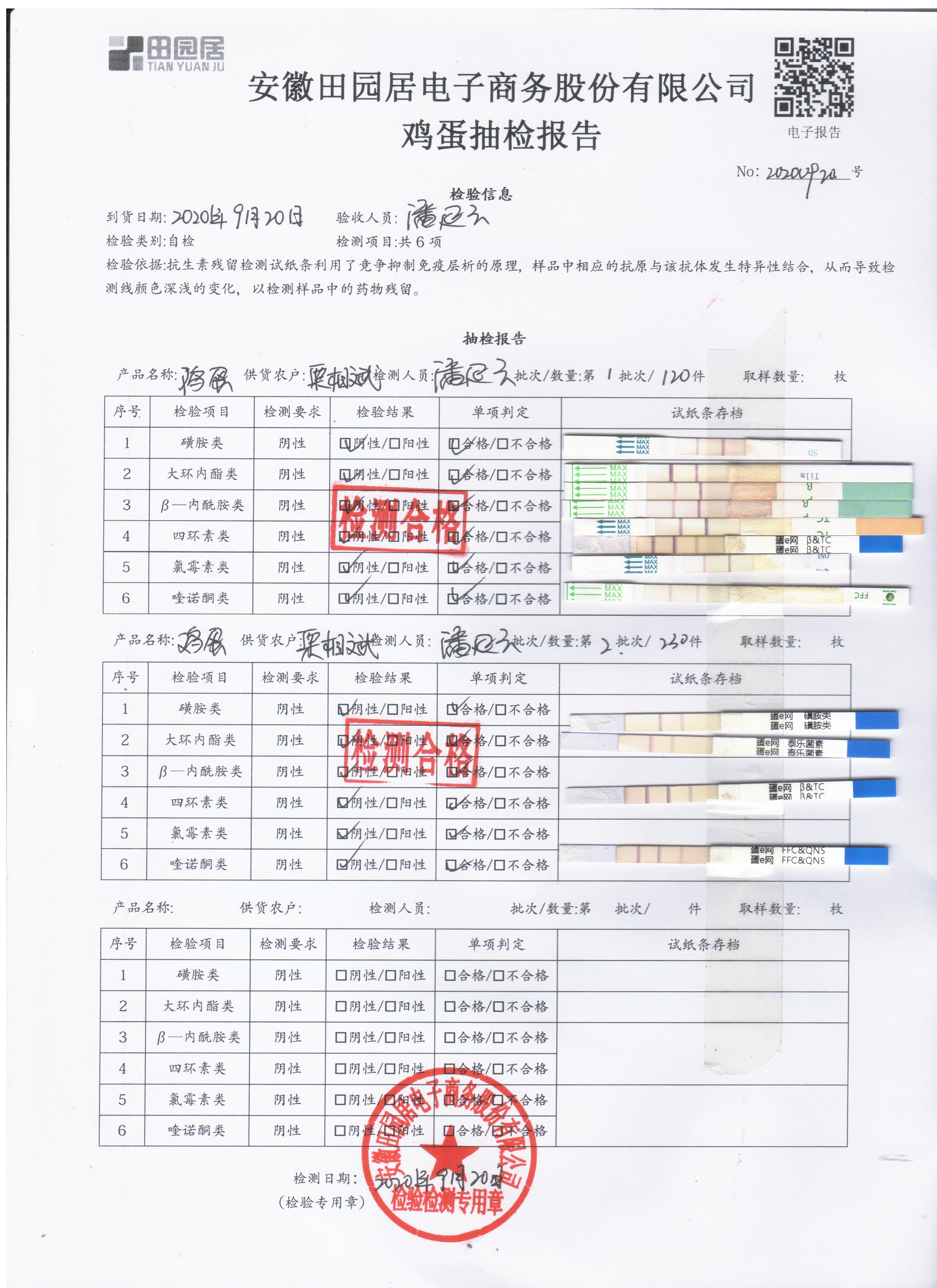 2020年9月21日鮮雞蛋無抗檢測