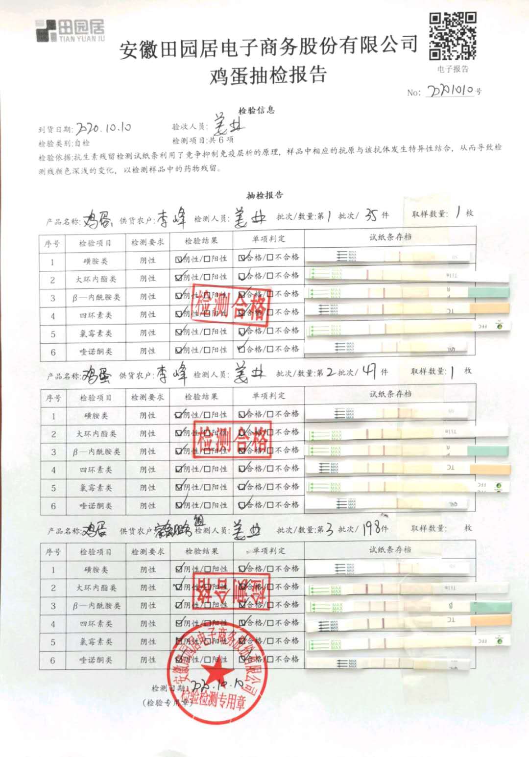 2020年10月10日鮮雞蛋無抗檢測