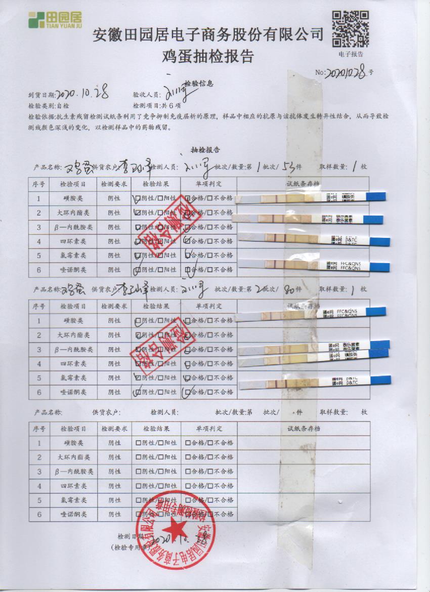 2020年10月28日鮮雞蛋無抗檢測