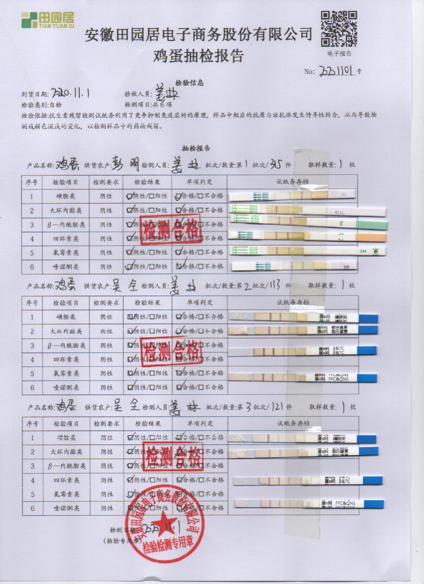 2020年11月1日鮮雞蛋無抗檢測