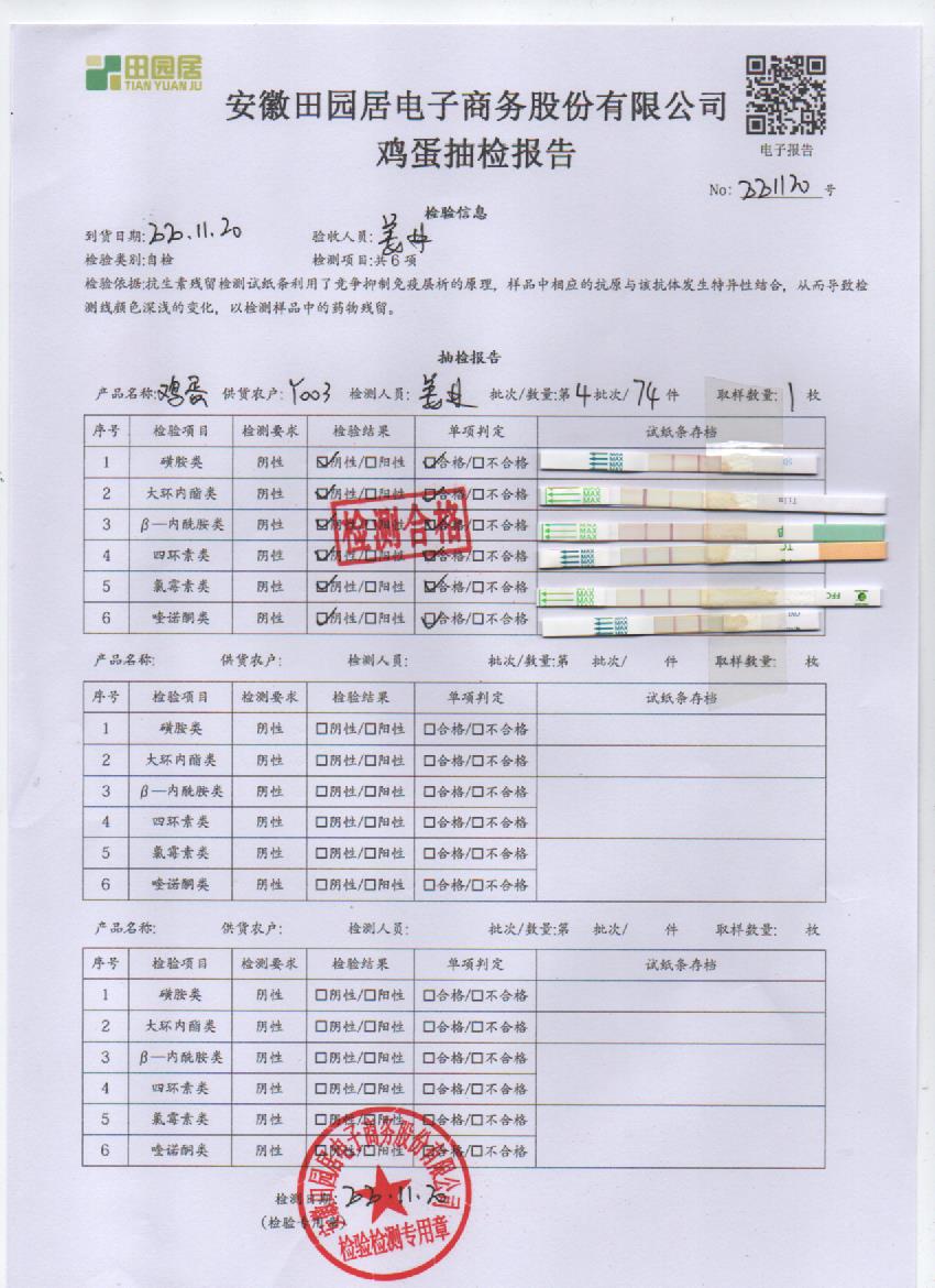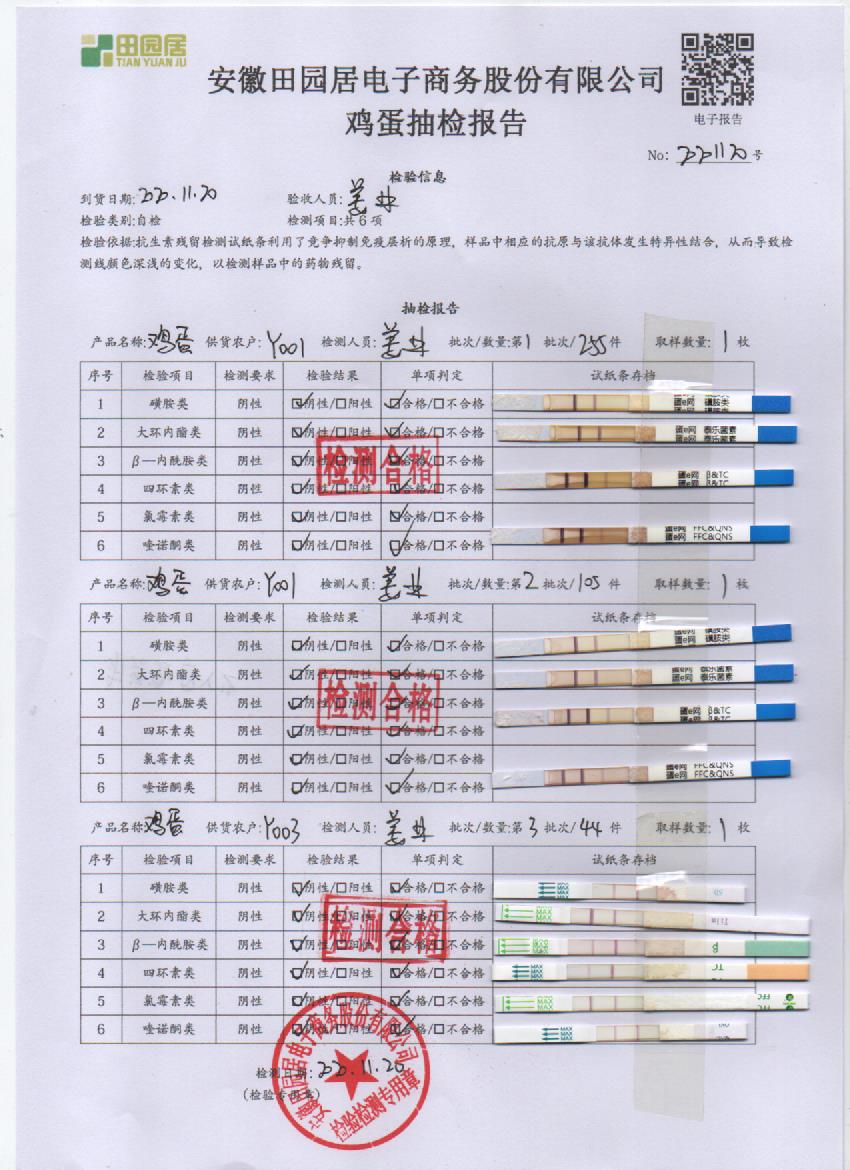 2020年11月21日鮮雞蛋檢測報告