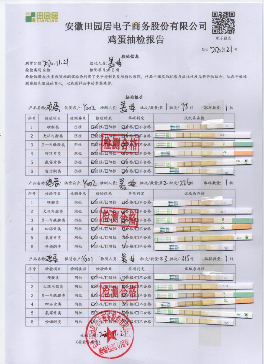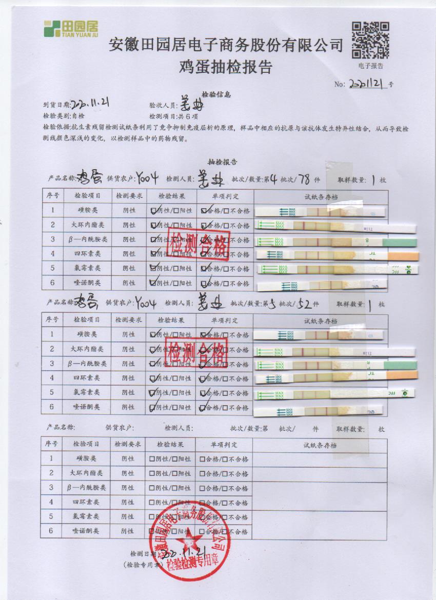 2020年11月21日鮮雞蛋檢測報告