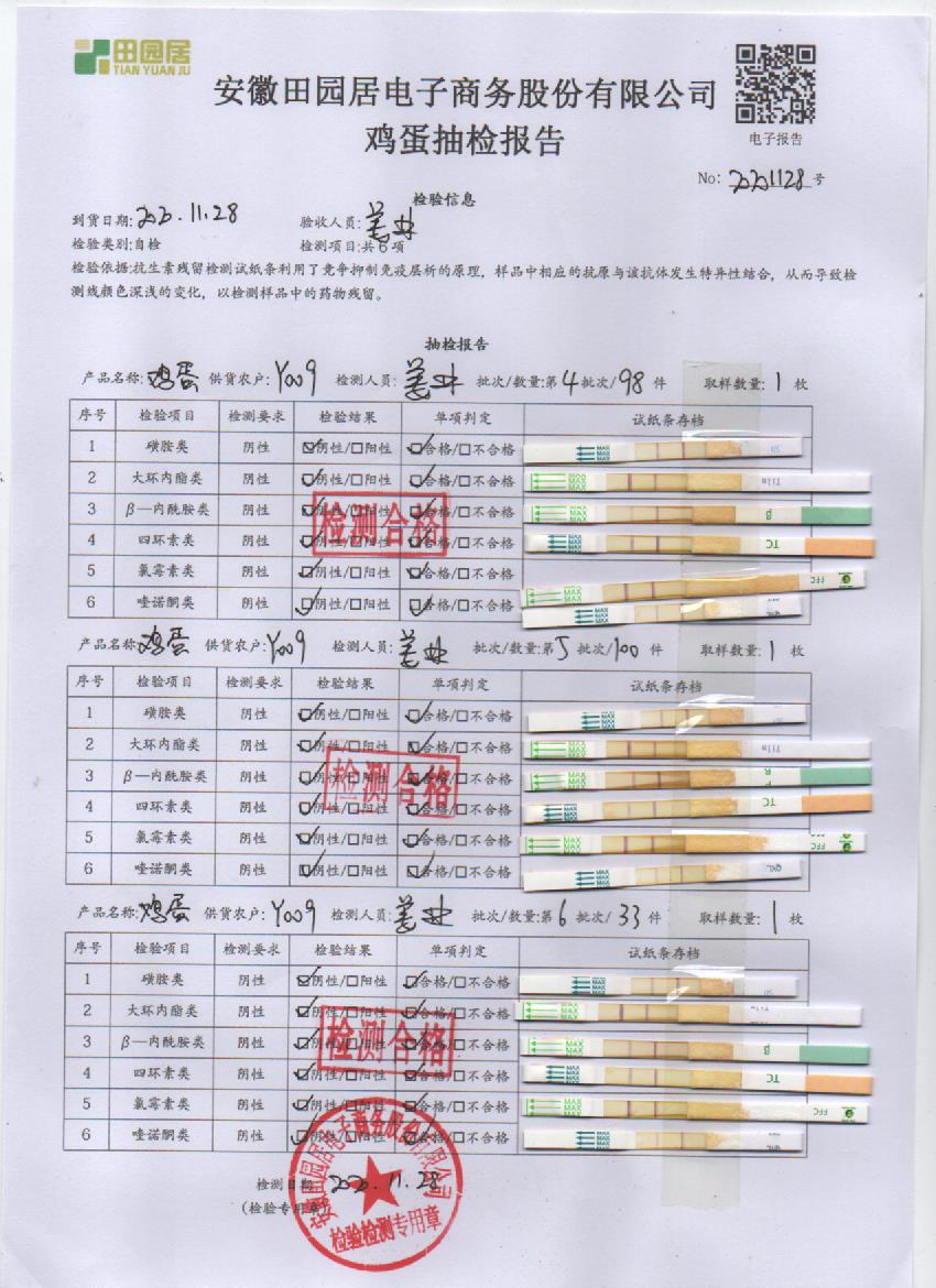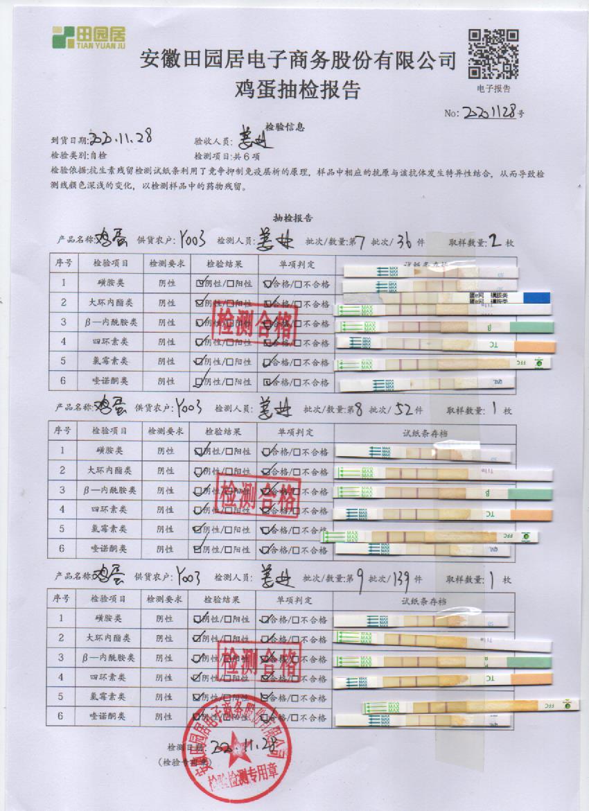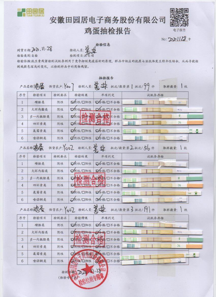 2020年11月28日鮮雞蛋檢測報告
