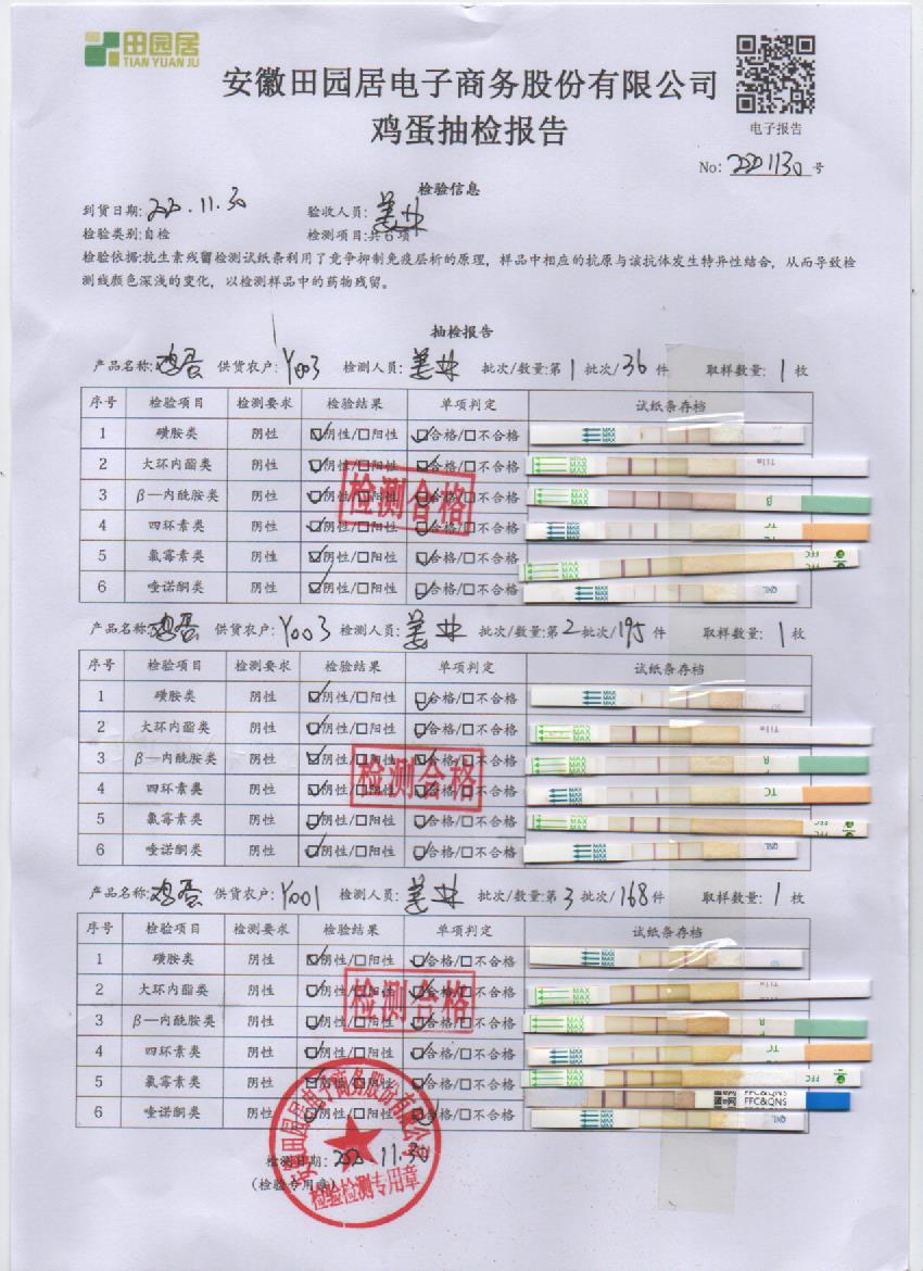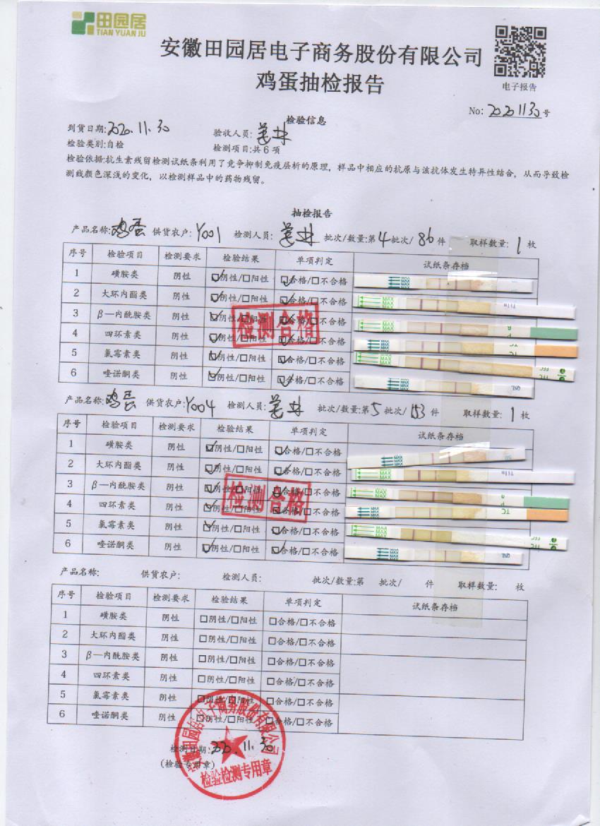 2020年11月30日鮮雞蛋檢測報告
