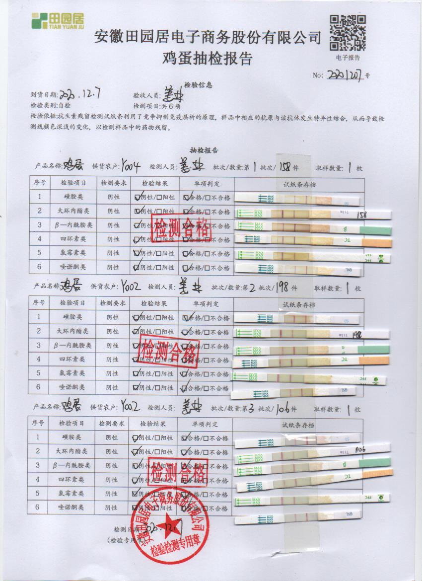 2020年12月7日鮮雞蛋檢測報告