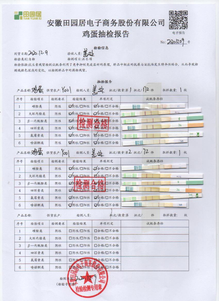 2020年12月9日鮮雞蛋檢測報告