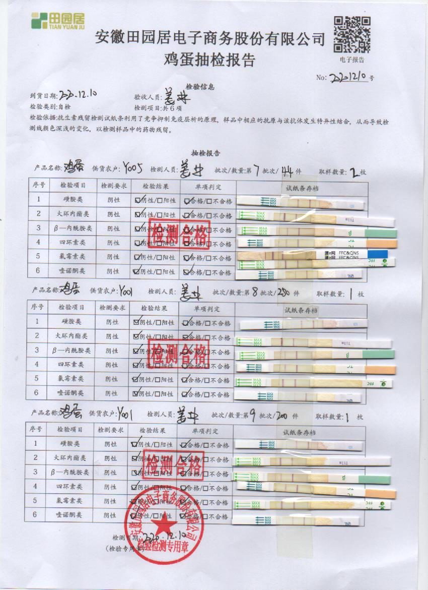 2020年12月9日鮮雞蛋檢測報告