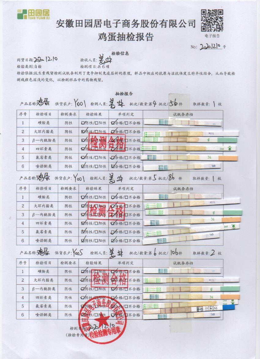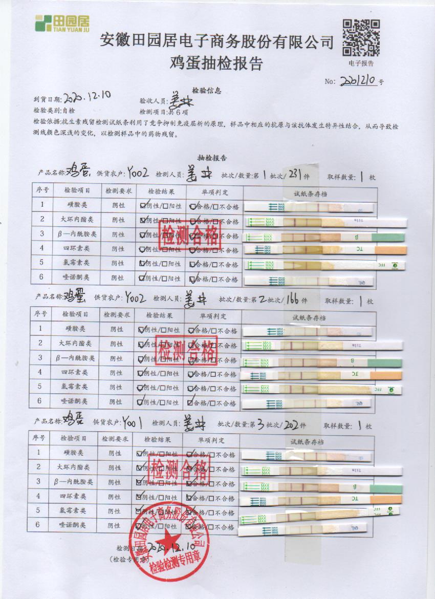 2020年12月10日鮮雞蛋檢測報告