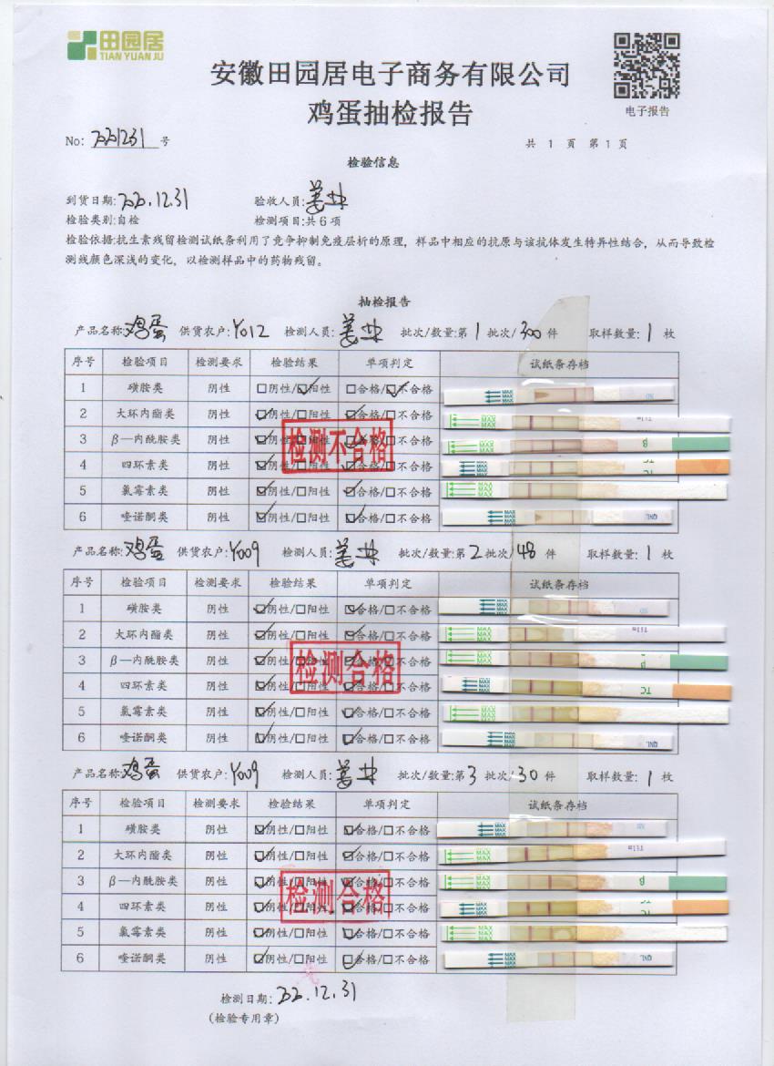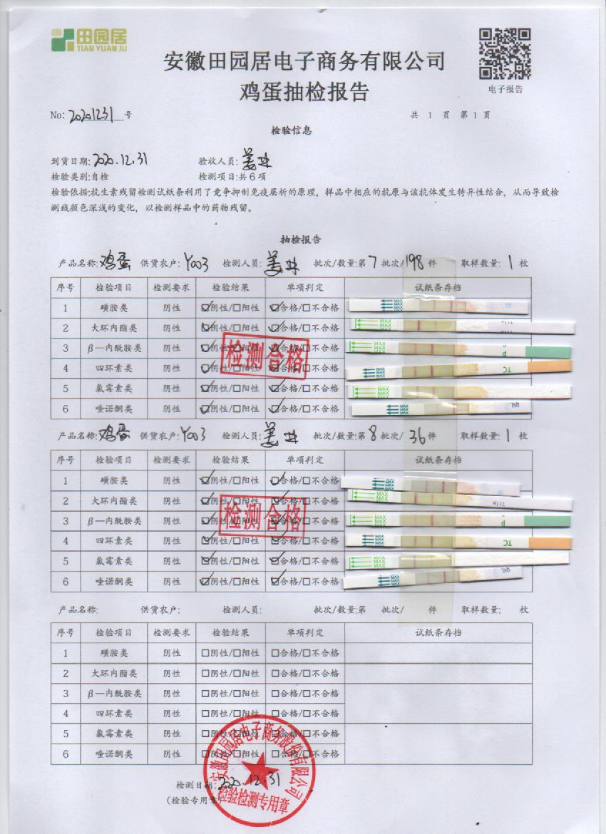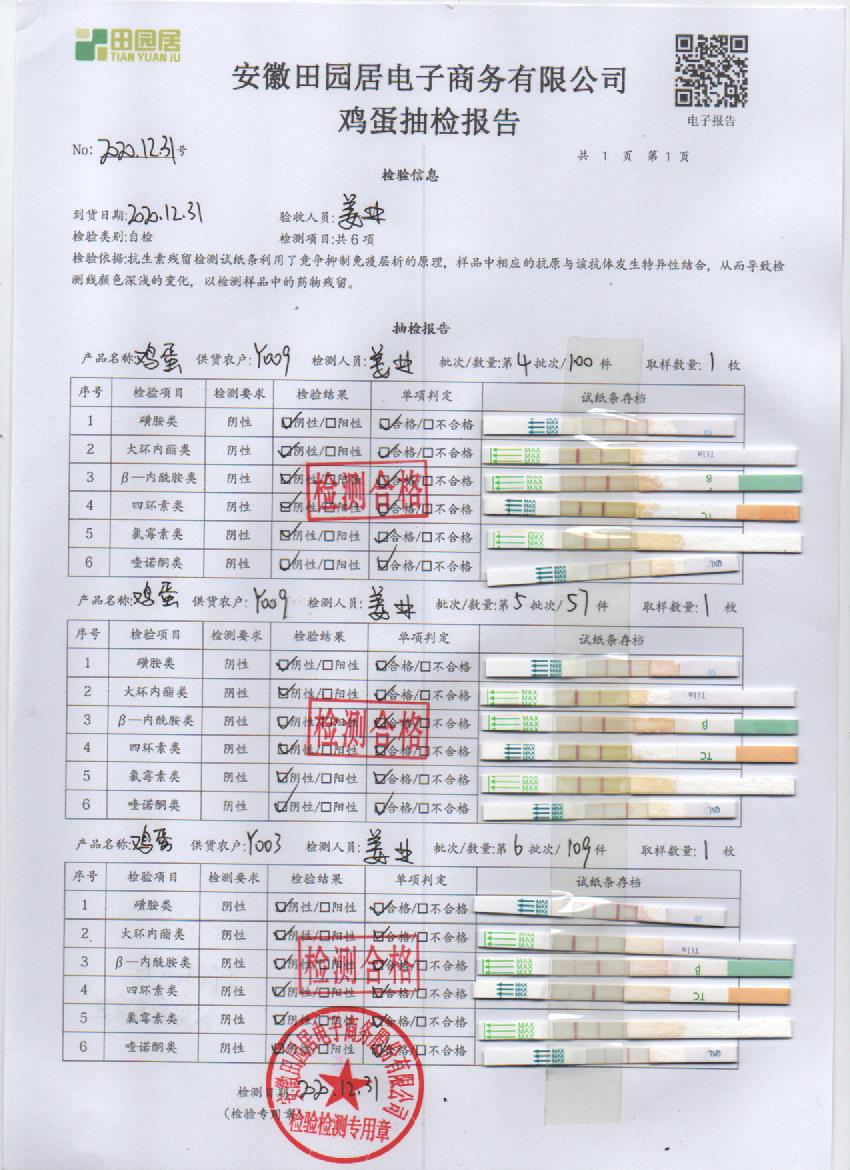 2020年12月31日鮮雞蛋檢測報告