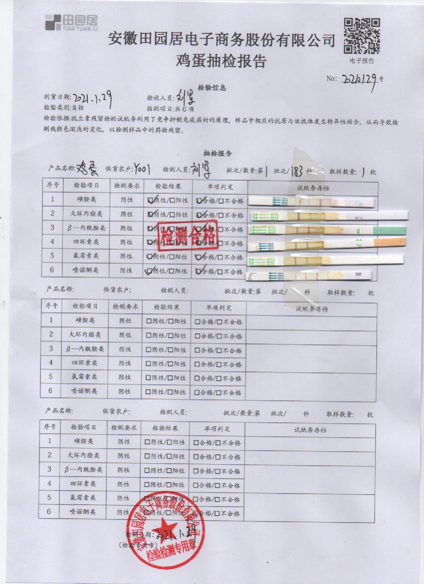 2021年1月29日鮮雞蛋檢測報告