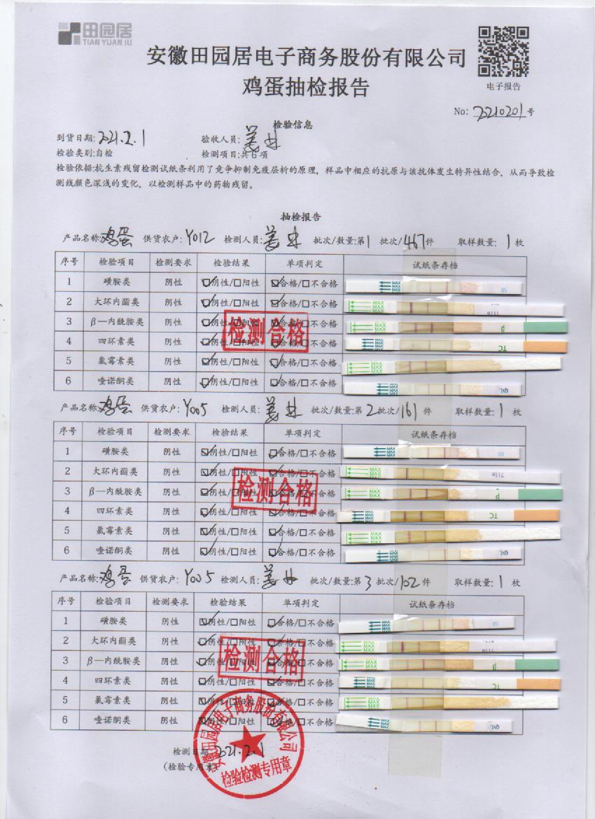 2021年2月1日鮮雞蛋檢測報告
