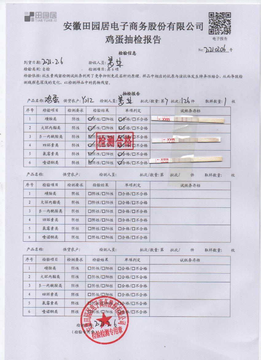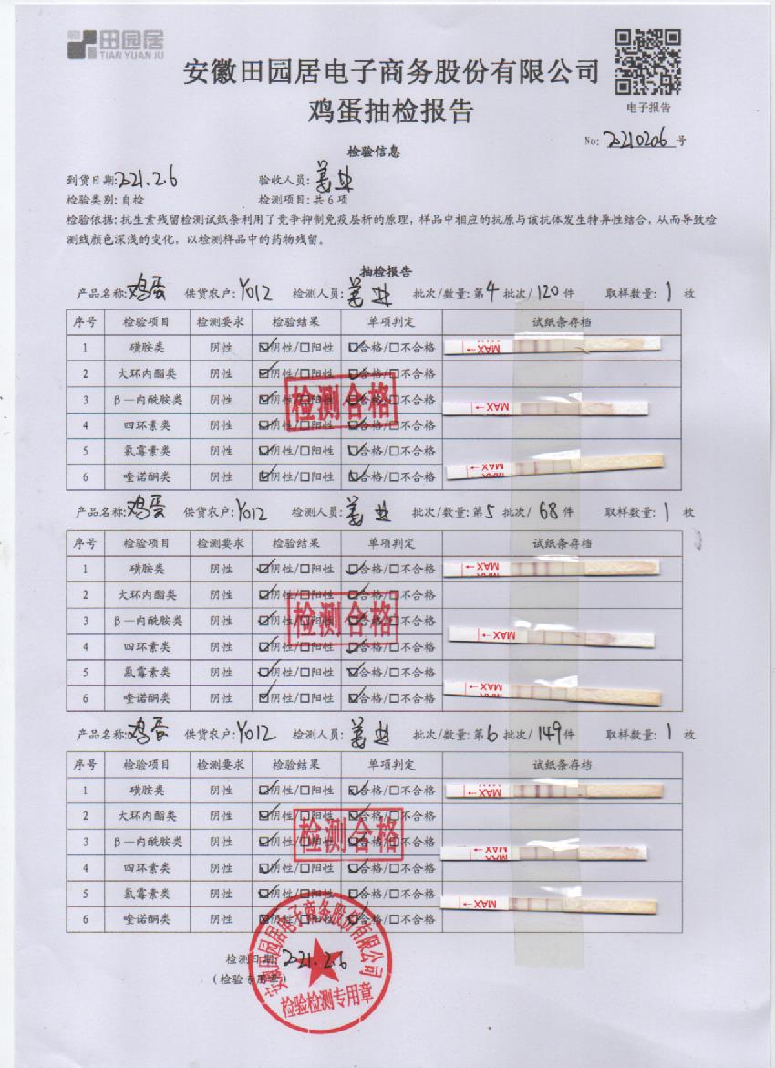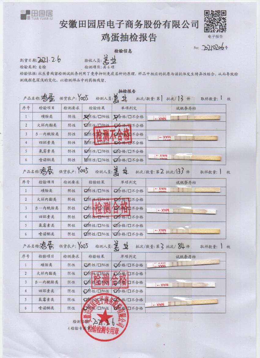 2021年2月6日鮮雞蛋檢測報告